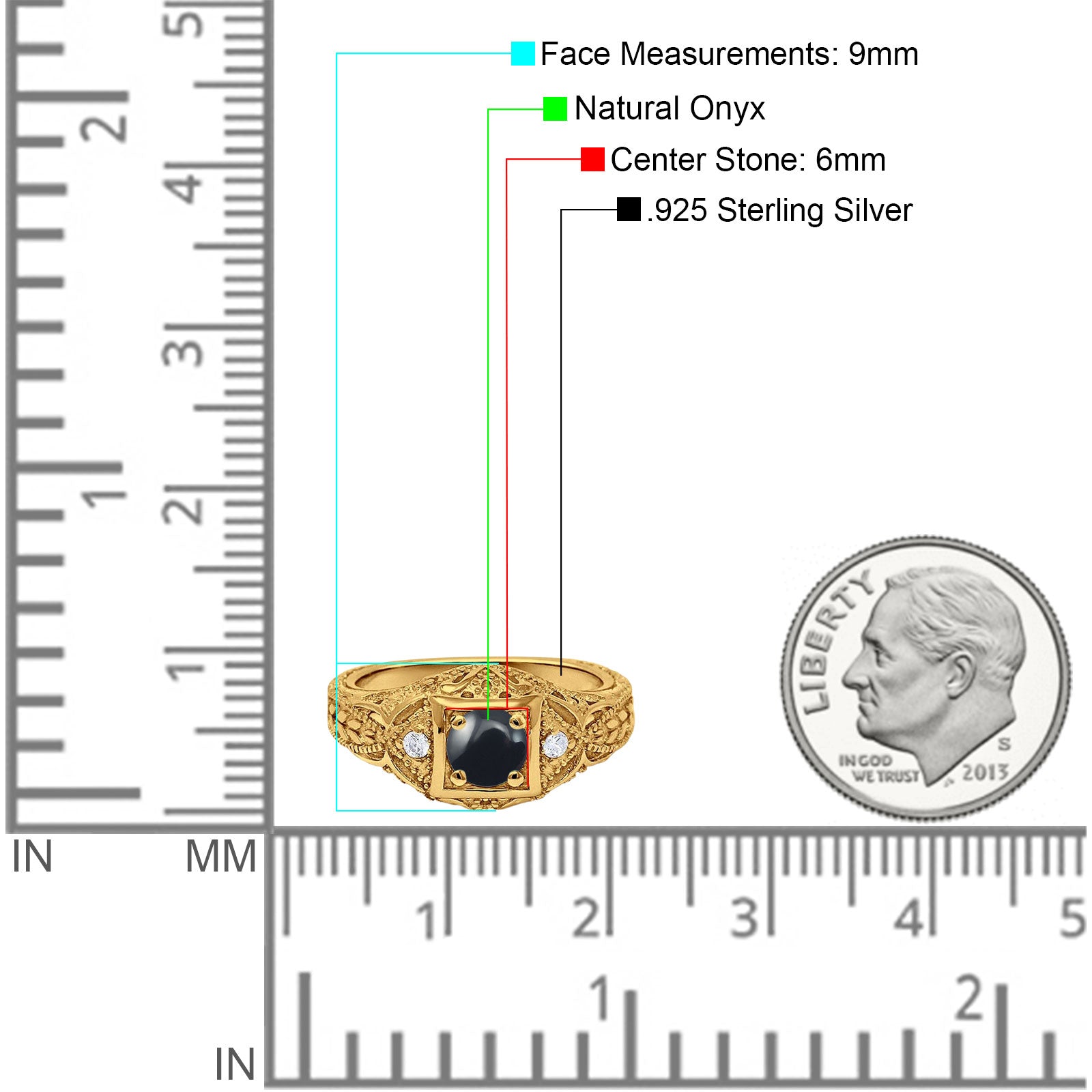 Art Deco Round Natural Black Onyx Filigree Ring 925 Sterling Silver
