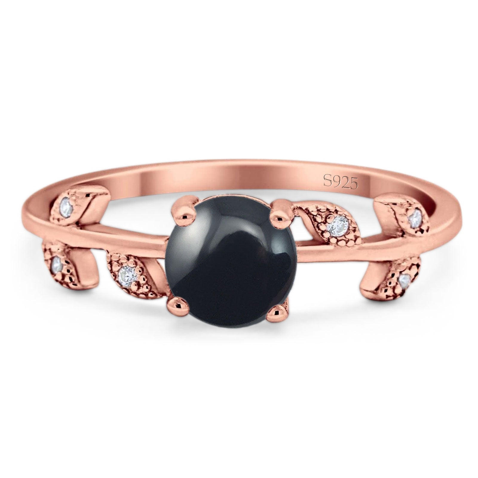 Natural Black Onyx Rose Tone Silver