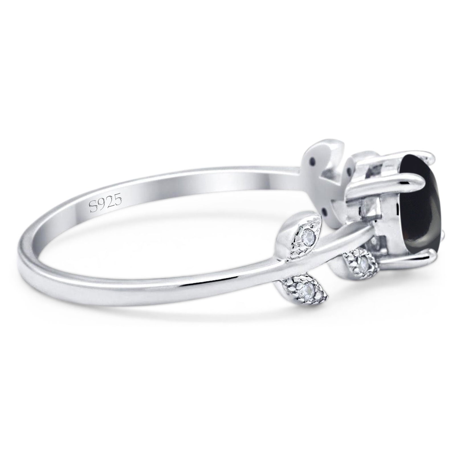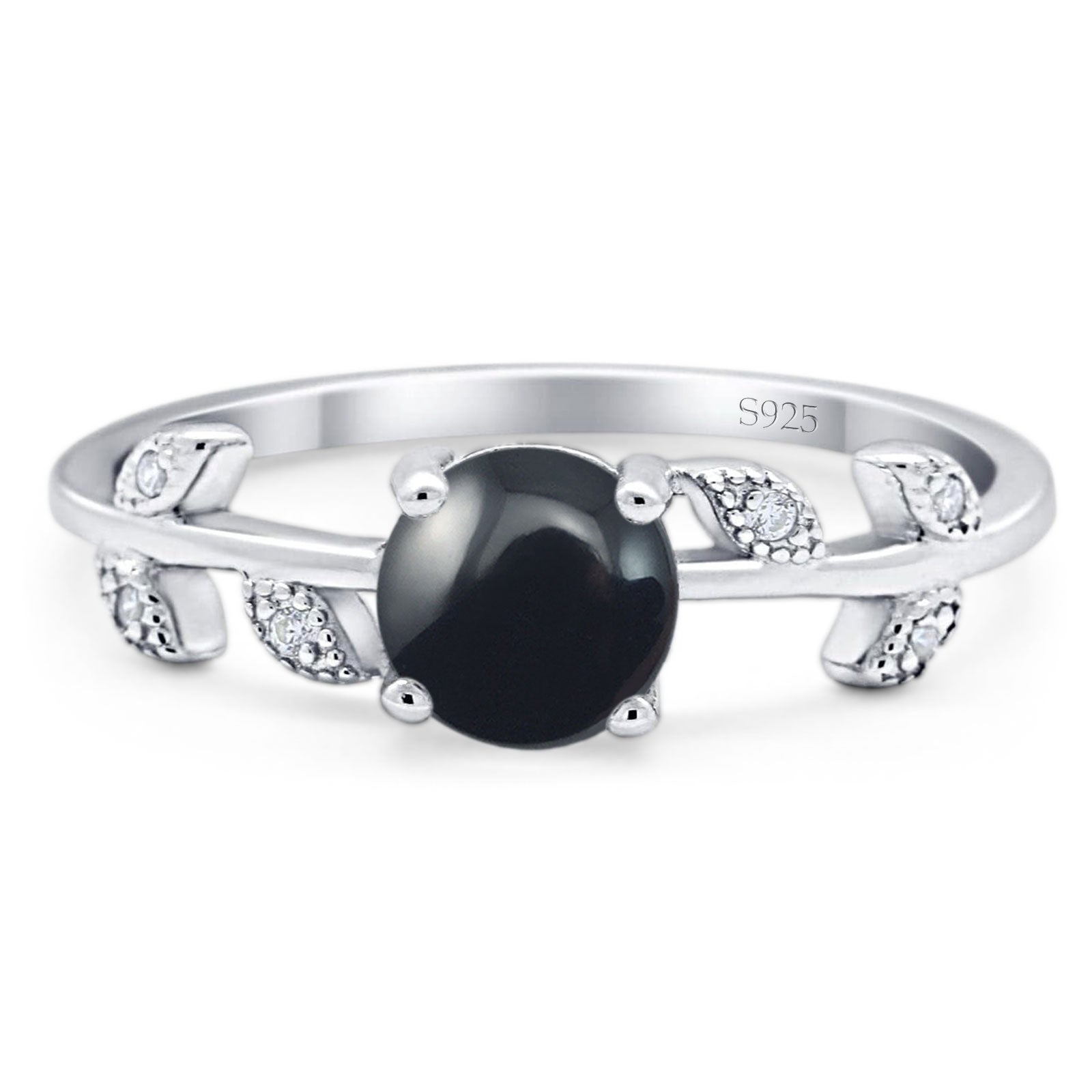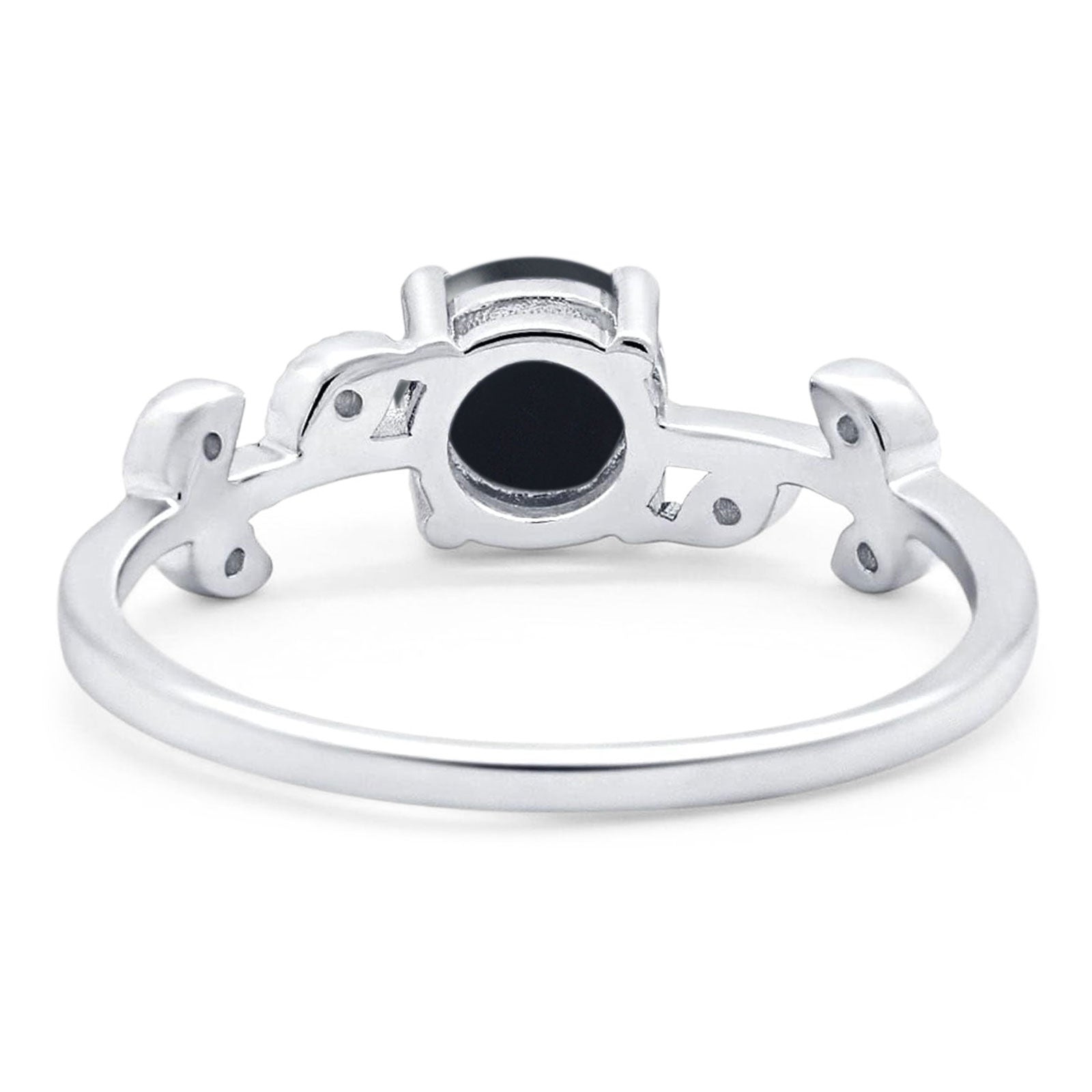 Art Deco Round Natural Black Onyx Floral Leaf Style Ring 925 Sterling Silver