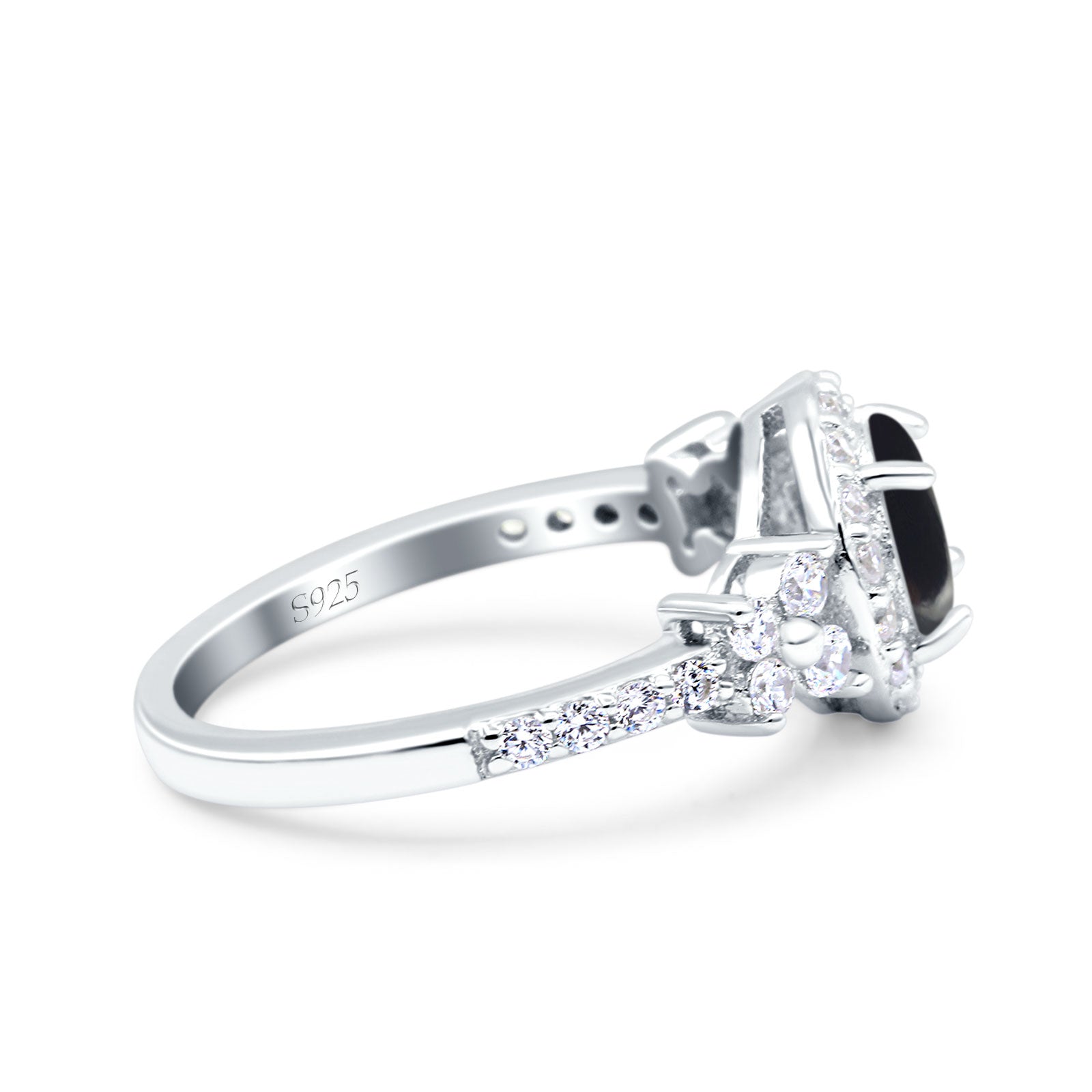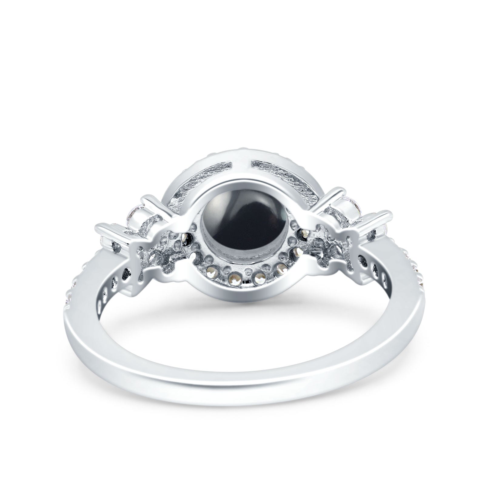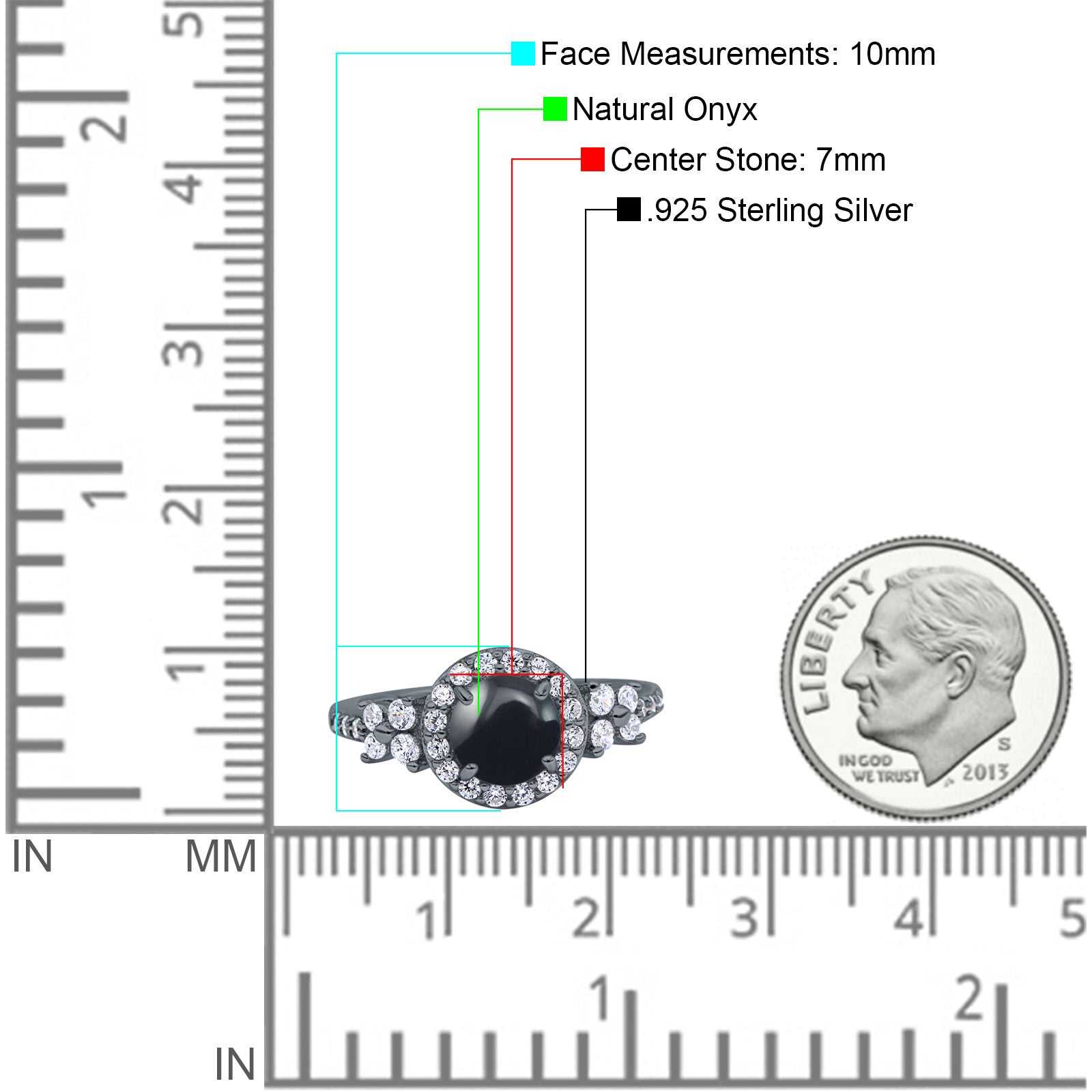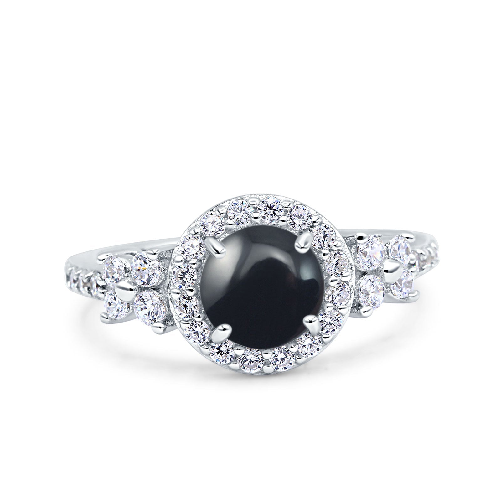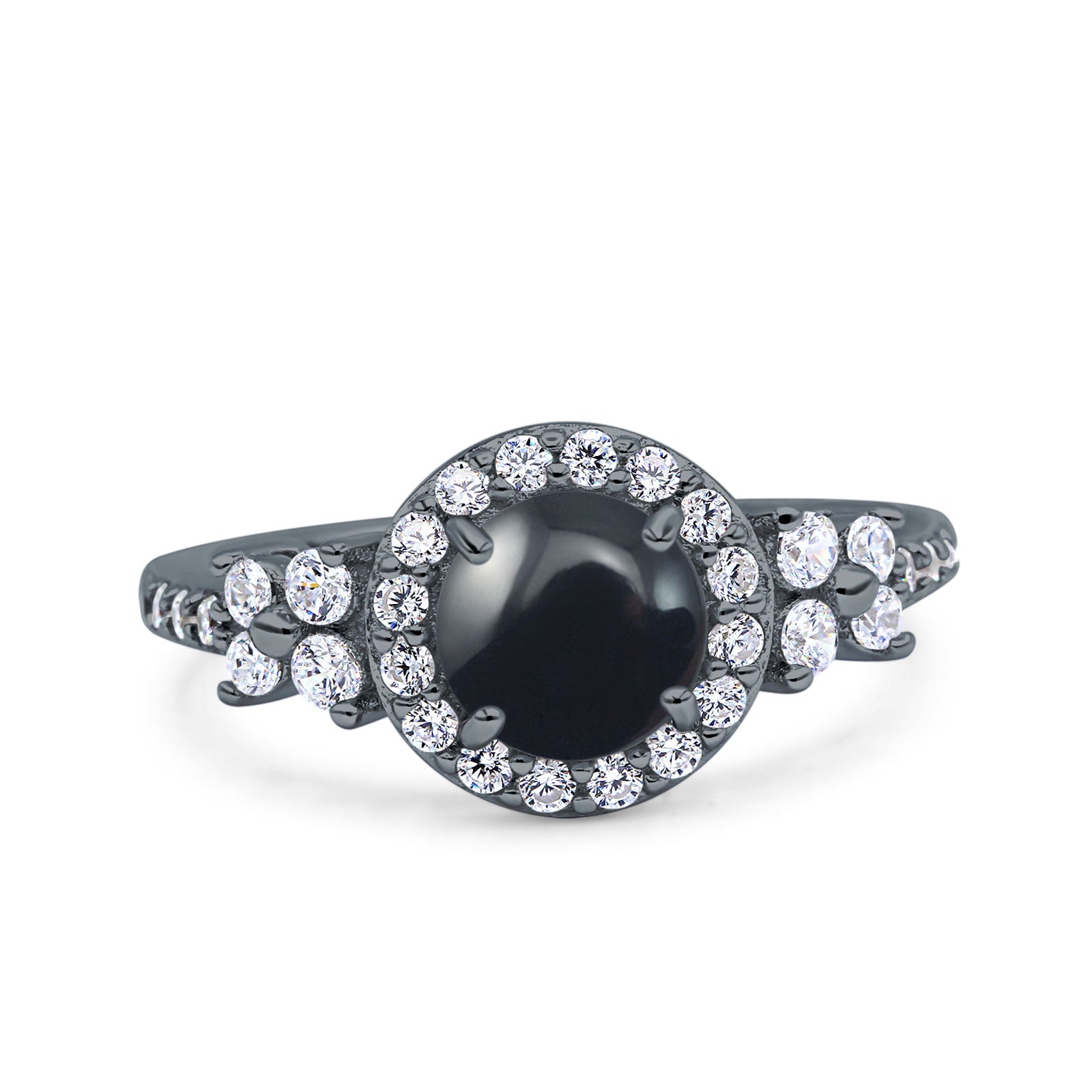 Art Deco Round Natural Black Onyx Floral Ring 925 Sterling Silver