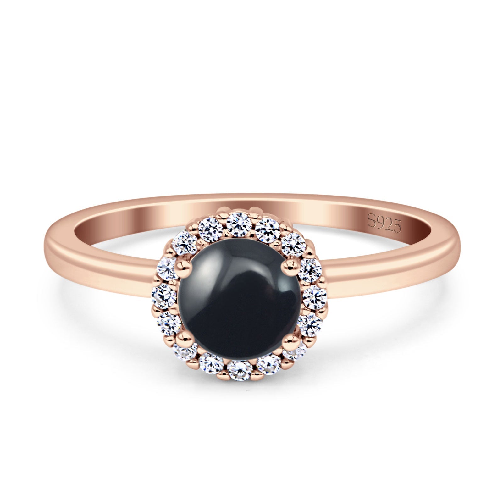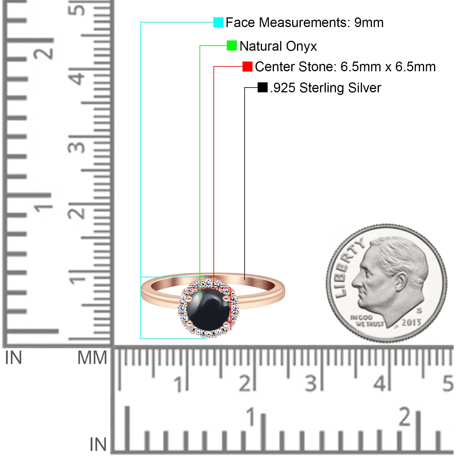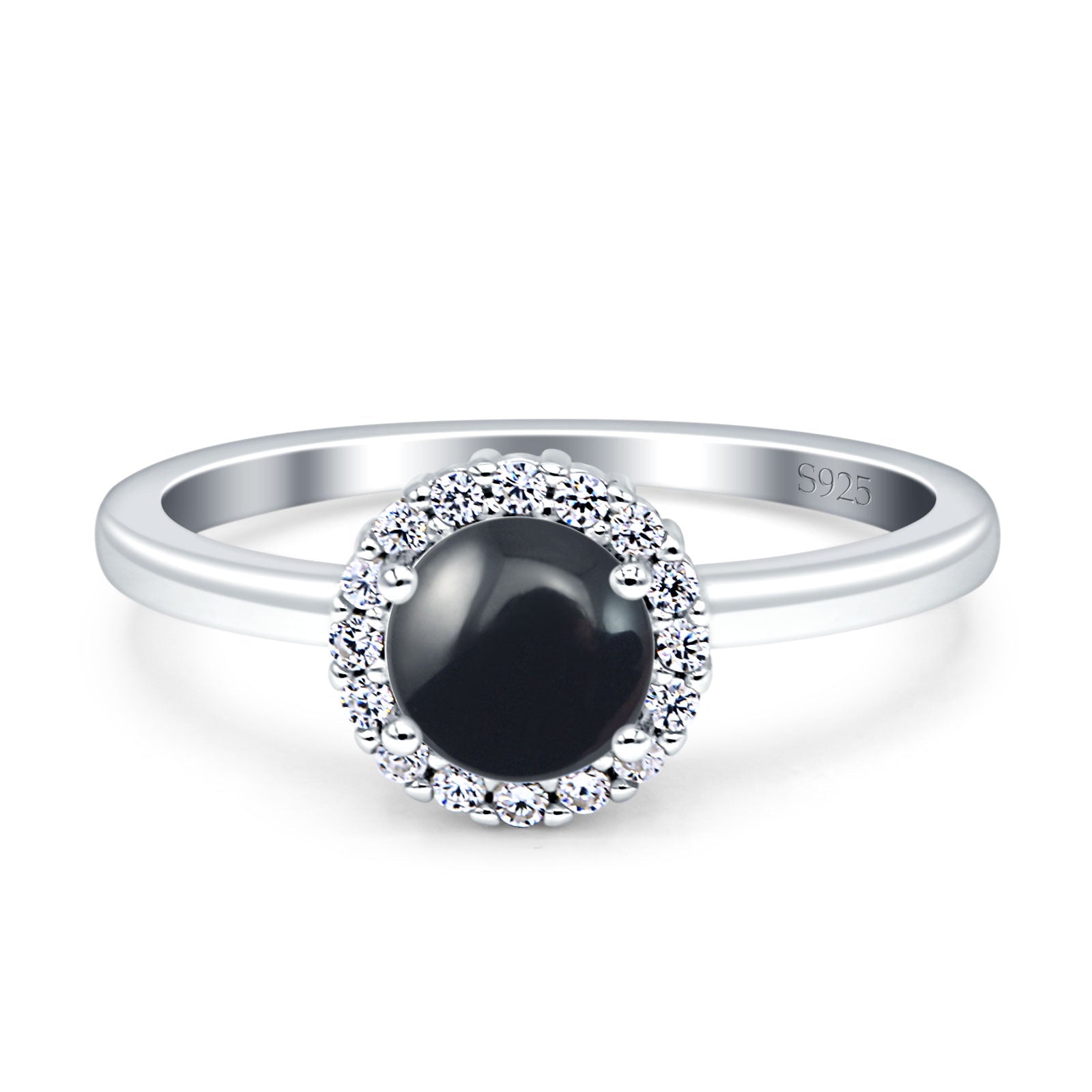 Art Deco Round Natural Black Onyx Halo Cubic Zirconia Ring 925 Sterling Silver