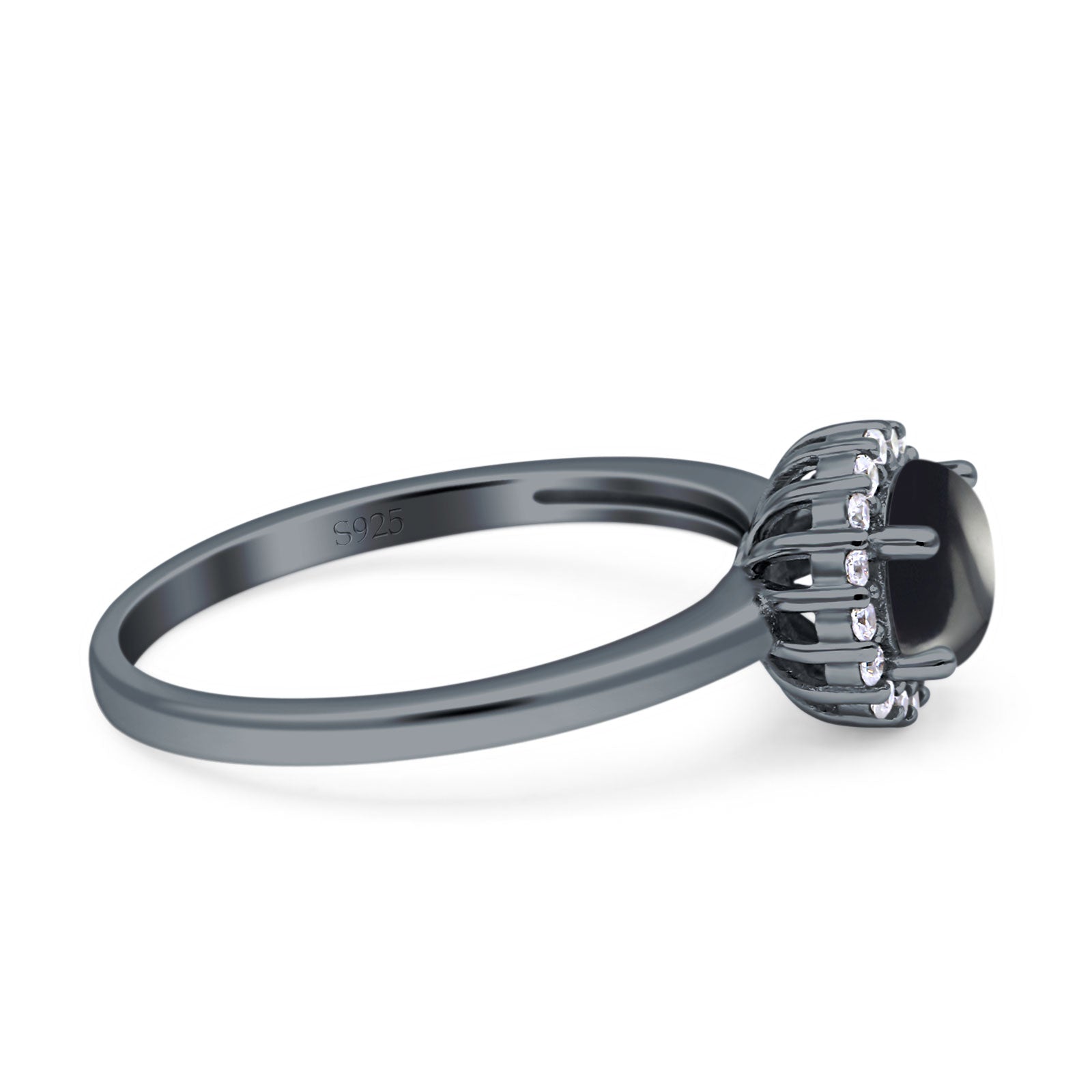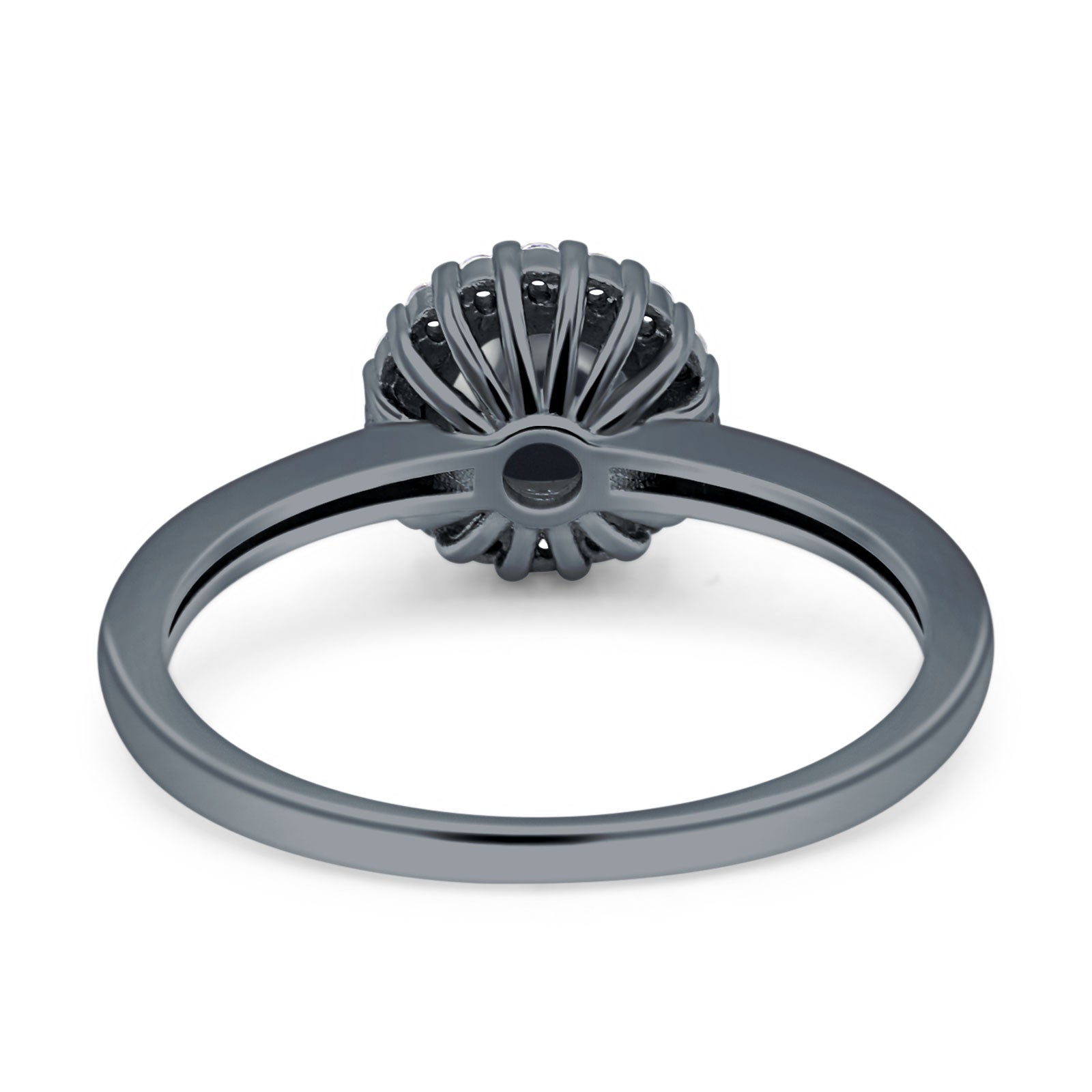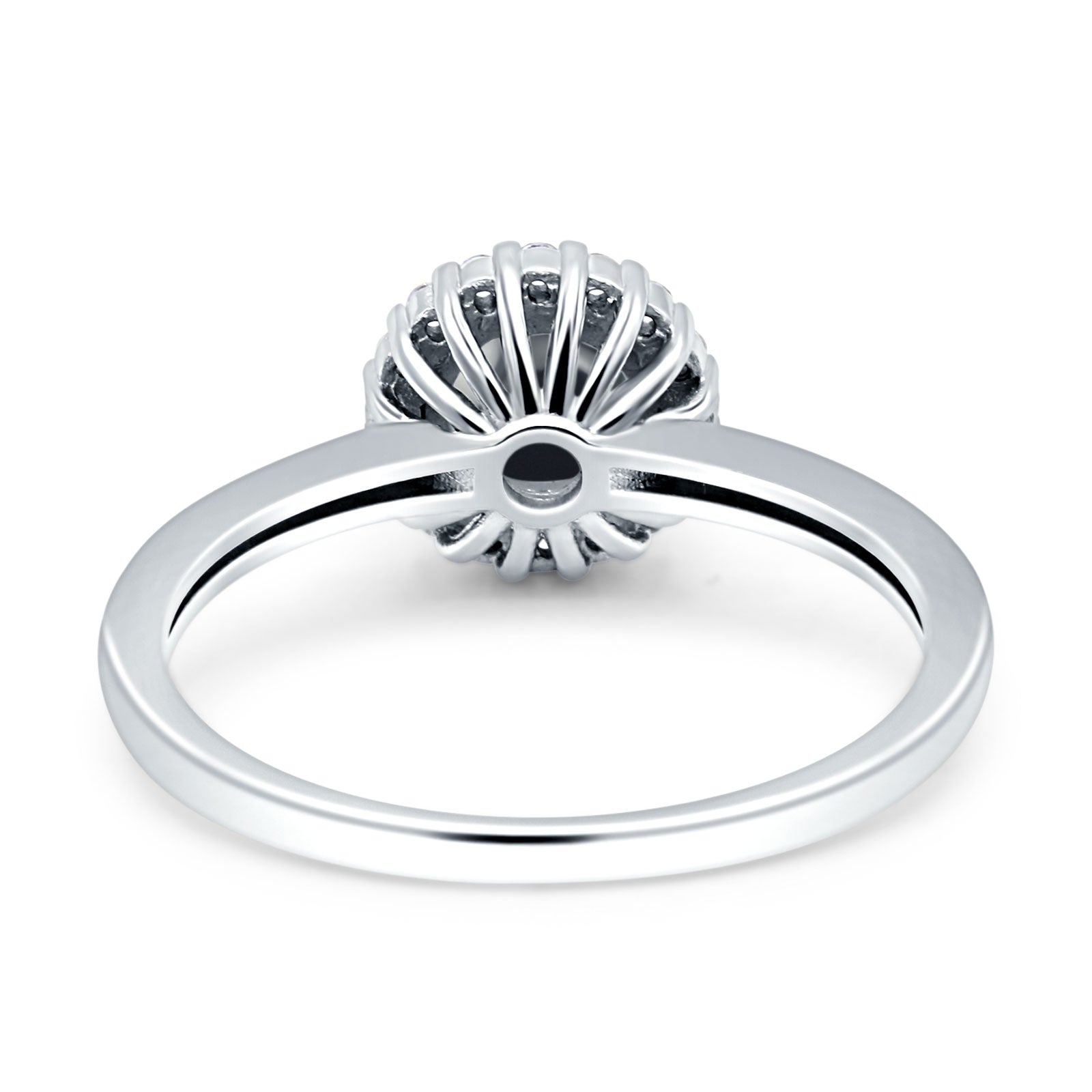 Art Deco Round Natural Black Onyx Halo Cubic Zirconia Ring 925 Sterling Silver