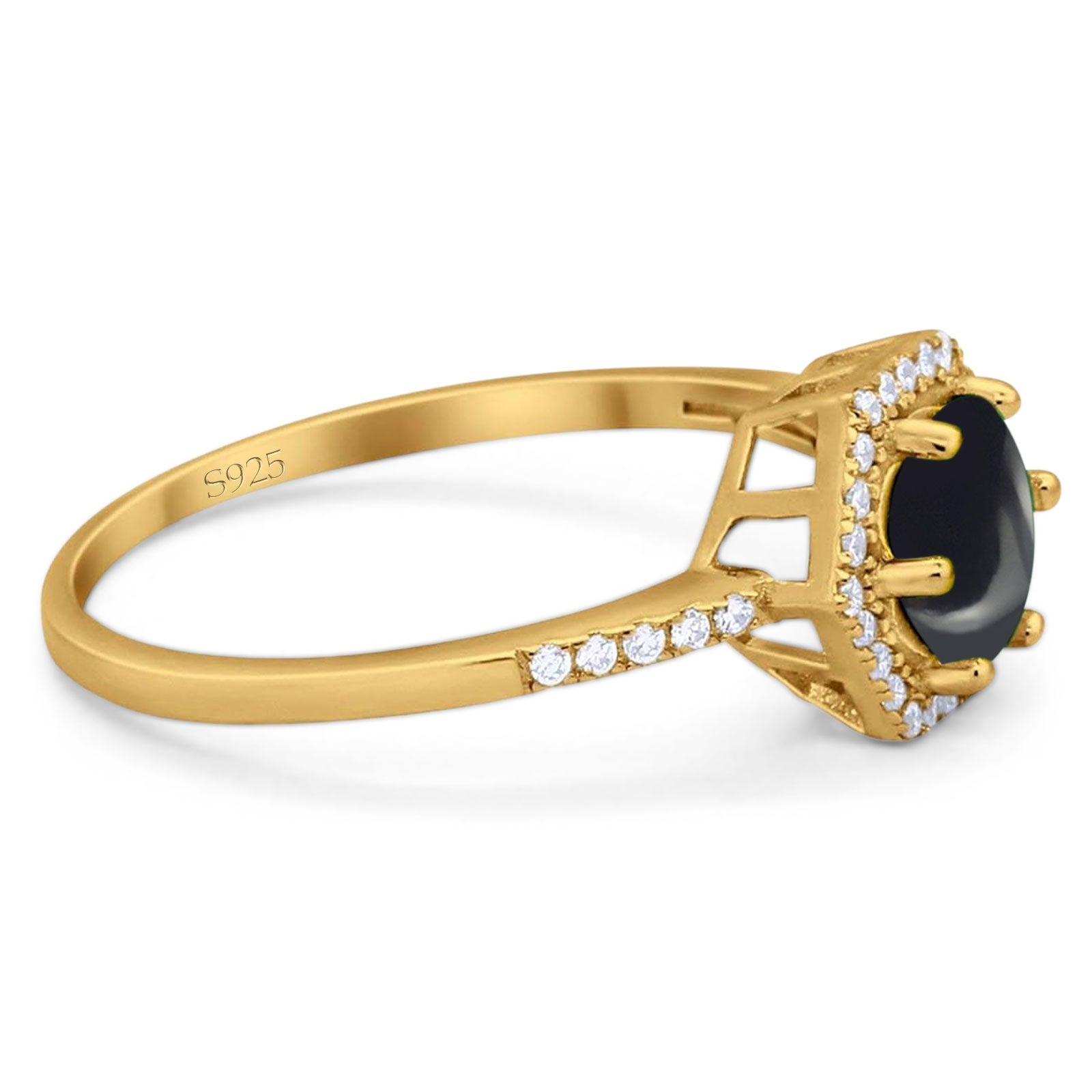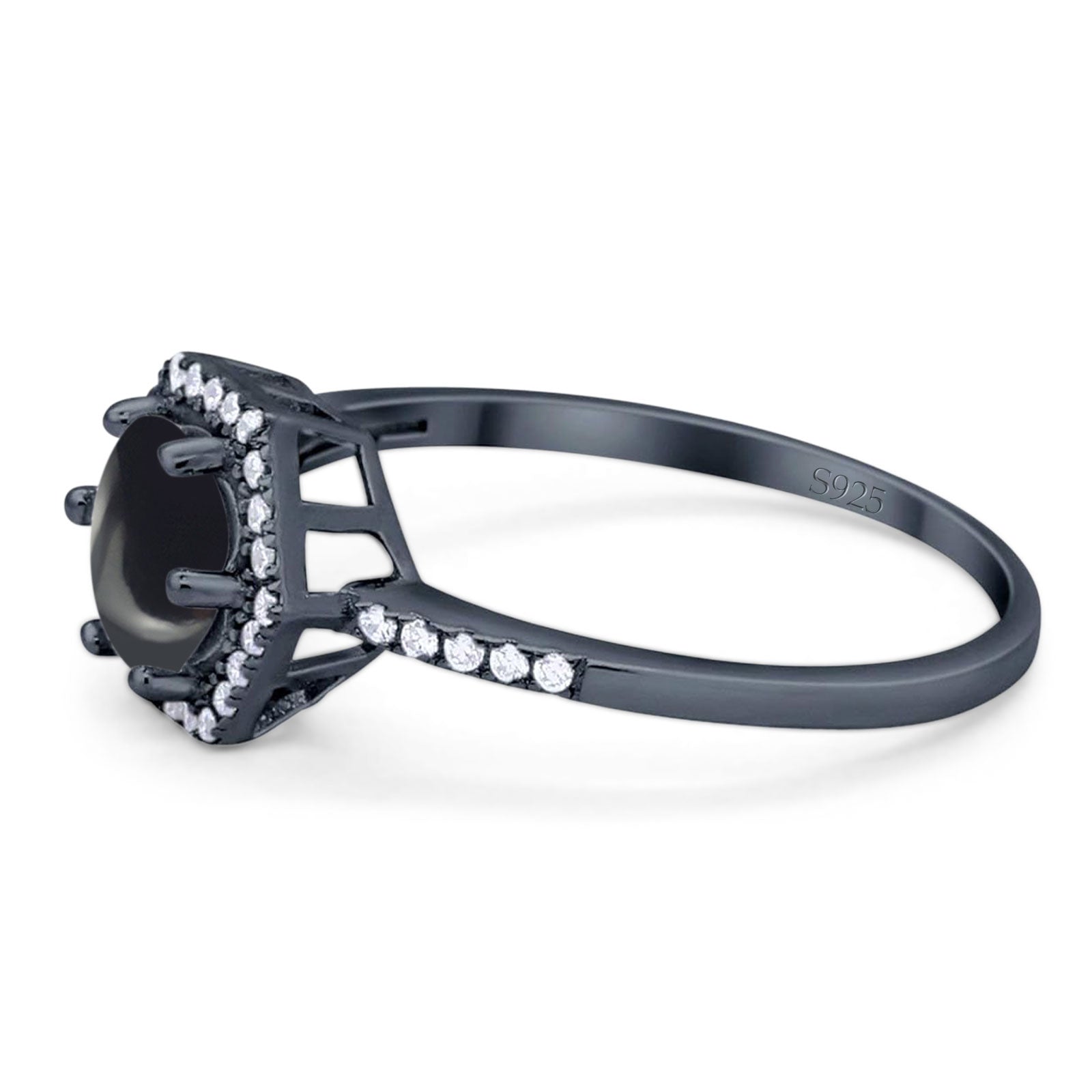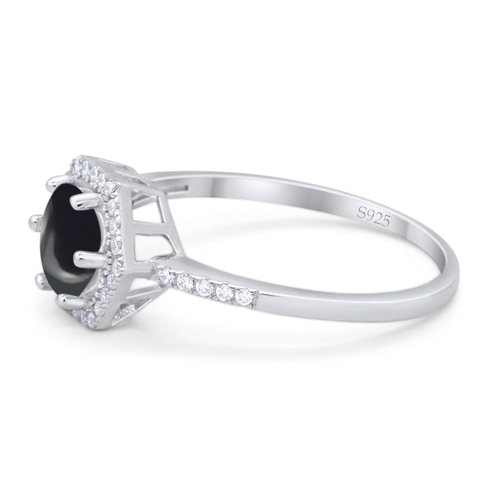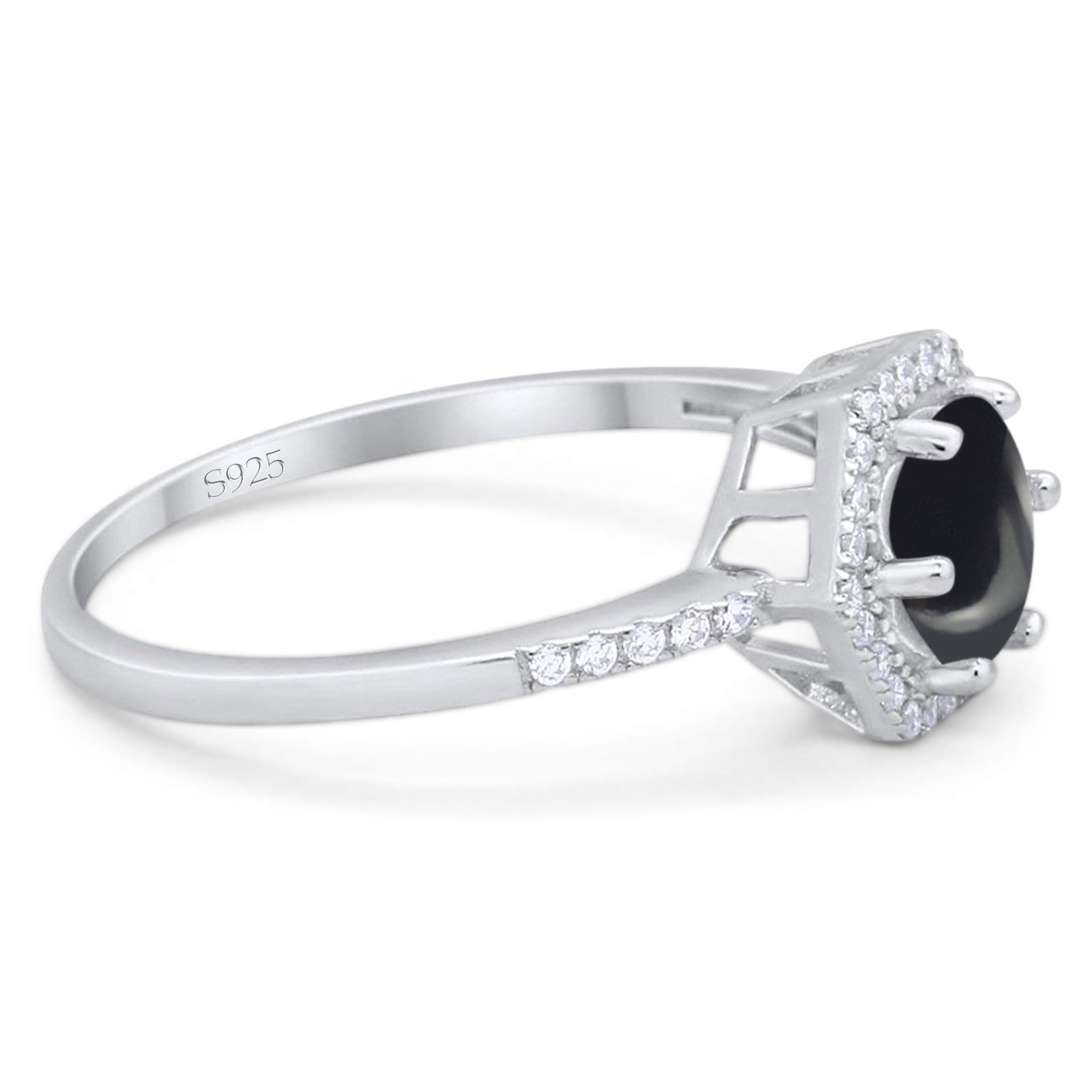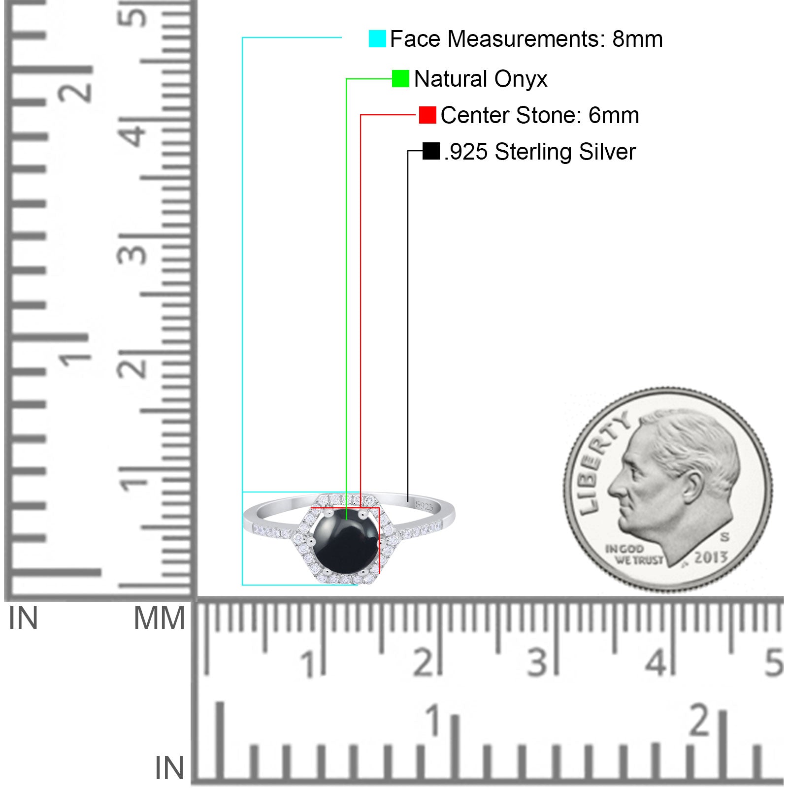 Art Deco Round Natural Black Onyx Hexagonal Ring 925 Sterling Silver