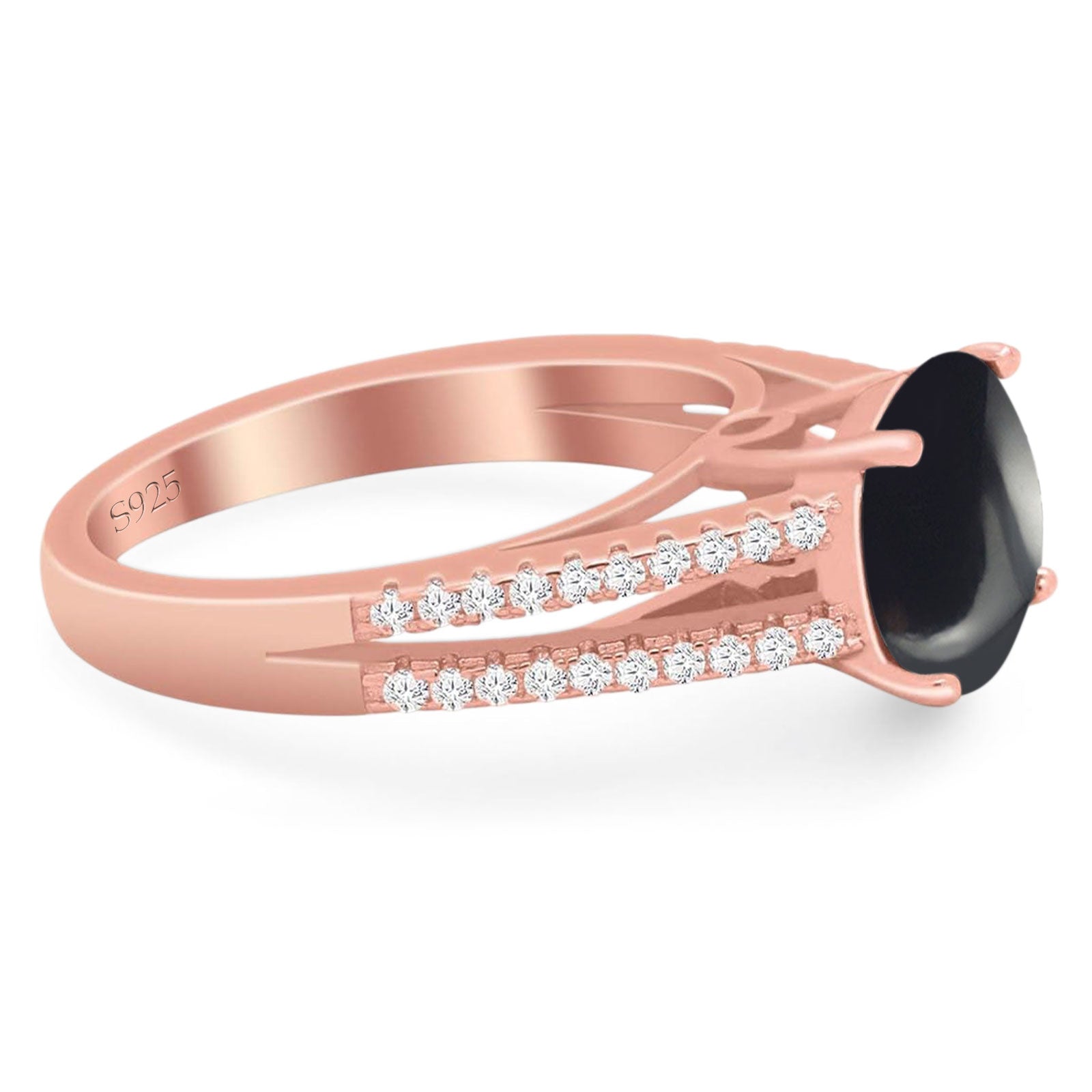 Natural Black Onyx Rose Tone Silver
