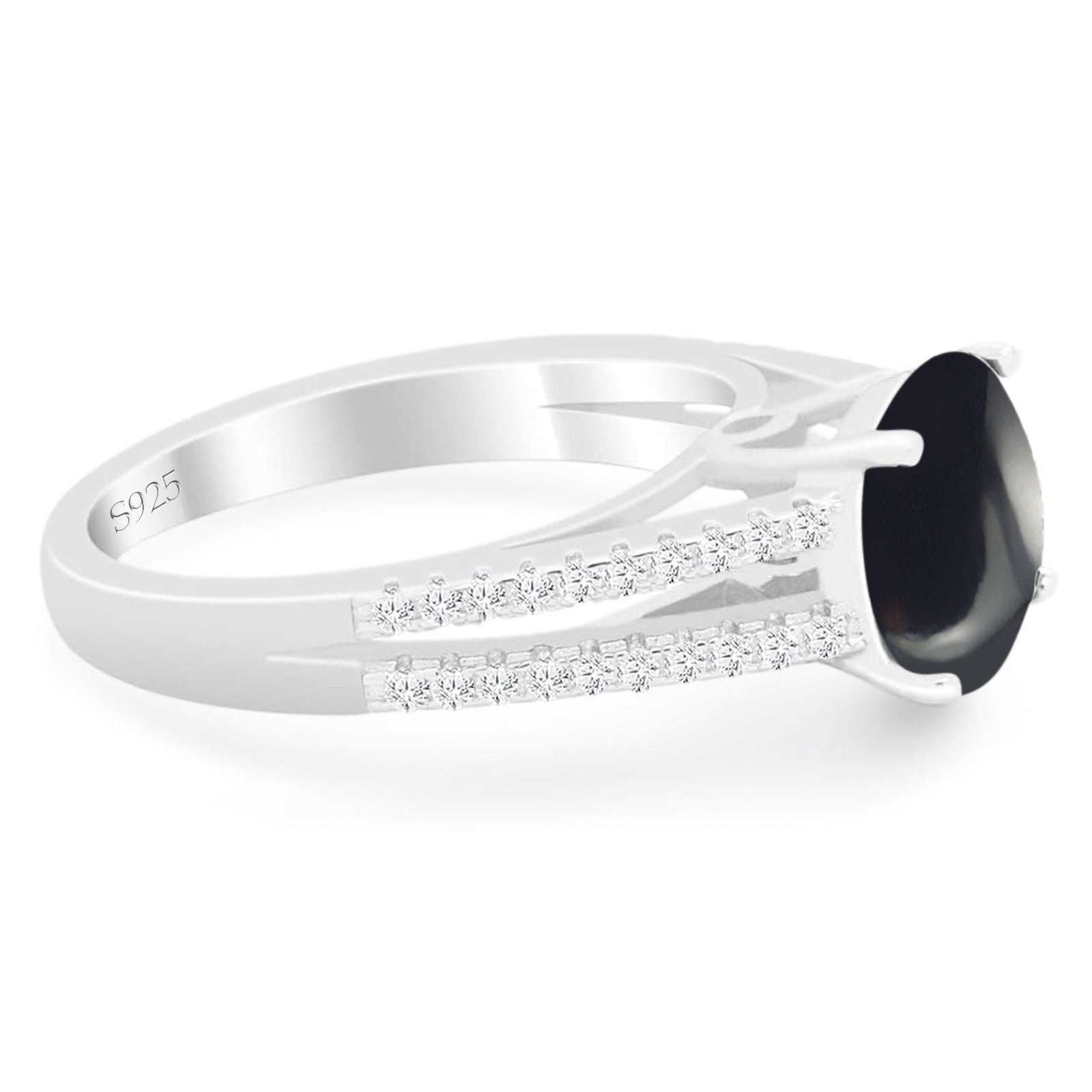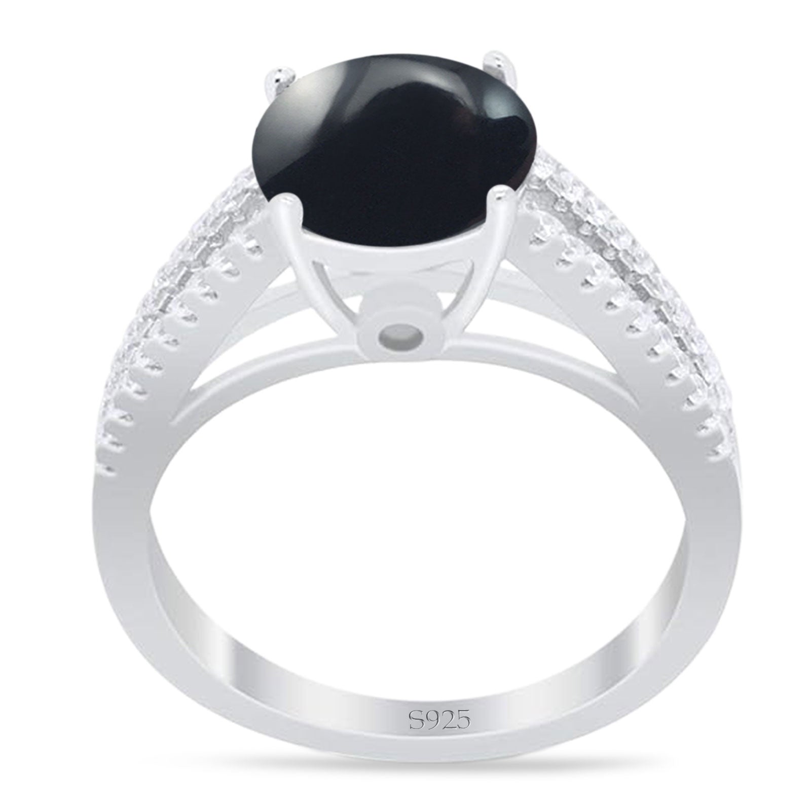 Art Deco Round Natural Black Onyx Split Shank Ring 925 Sterling Silver