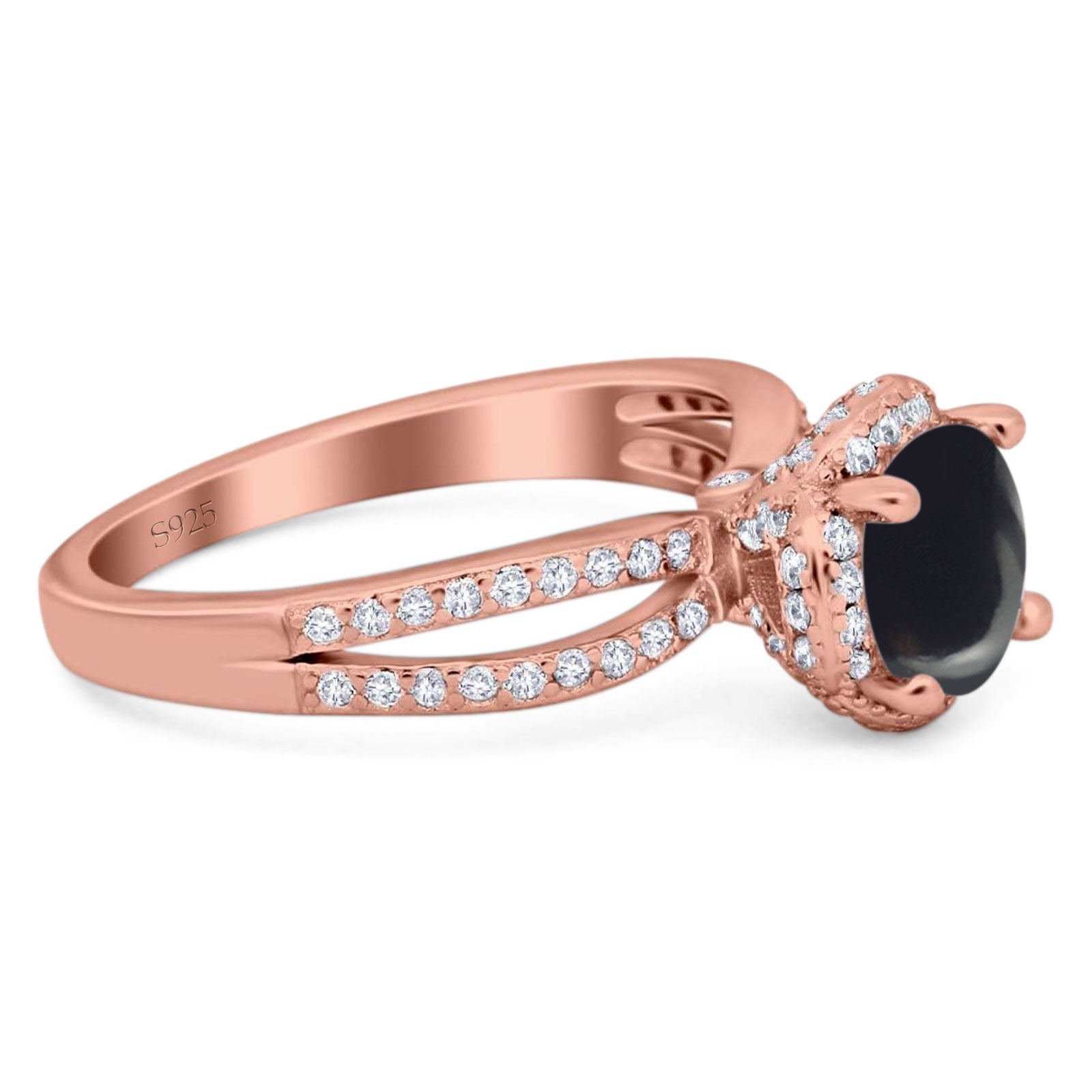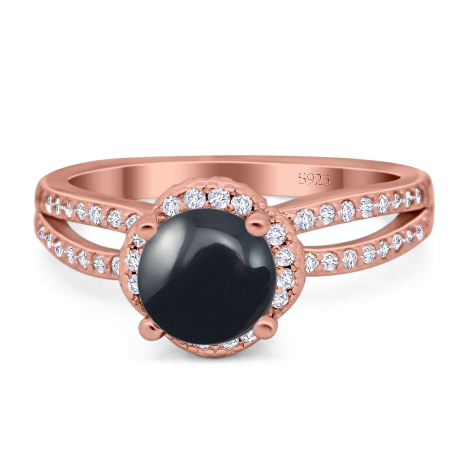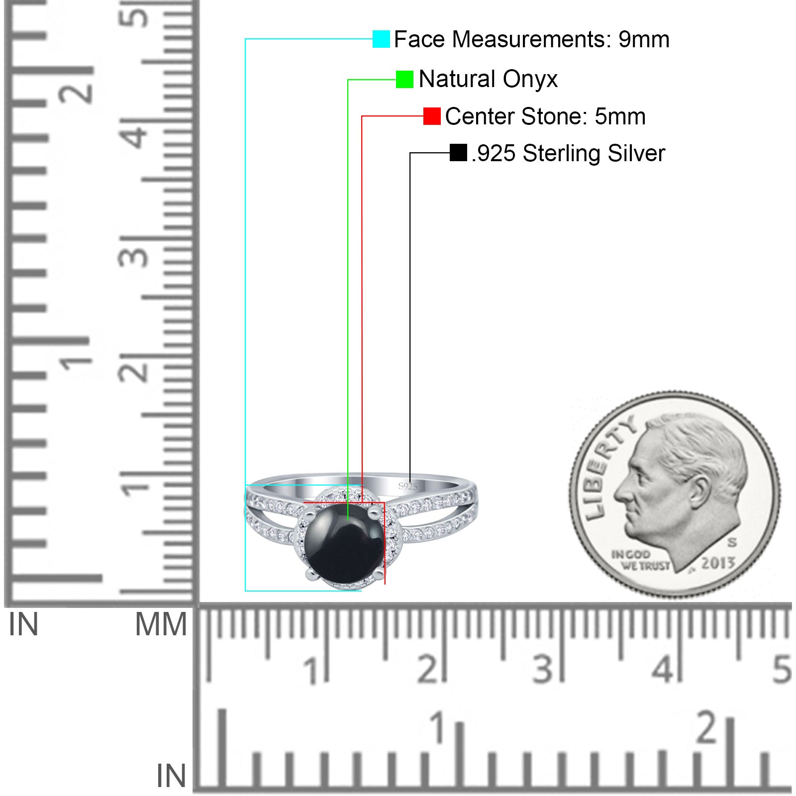 Art Deco Round Natural Black Onyx Split Shank Ring 925 Sterling Silver