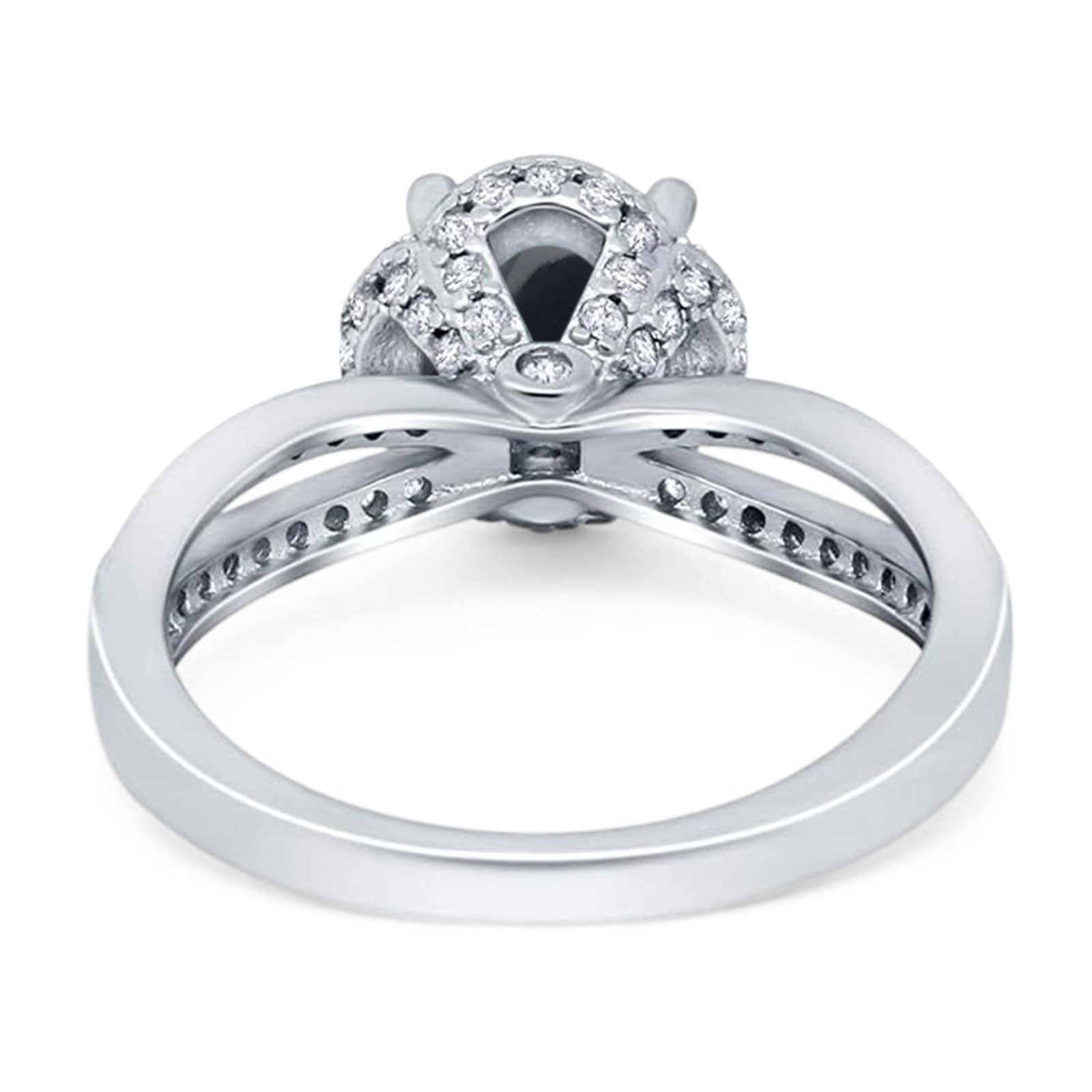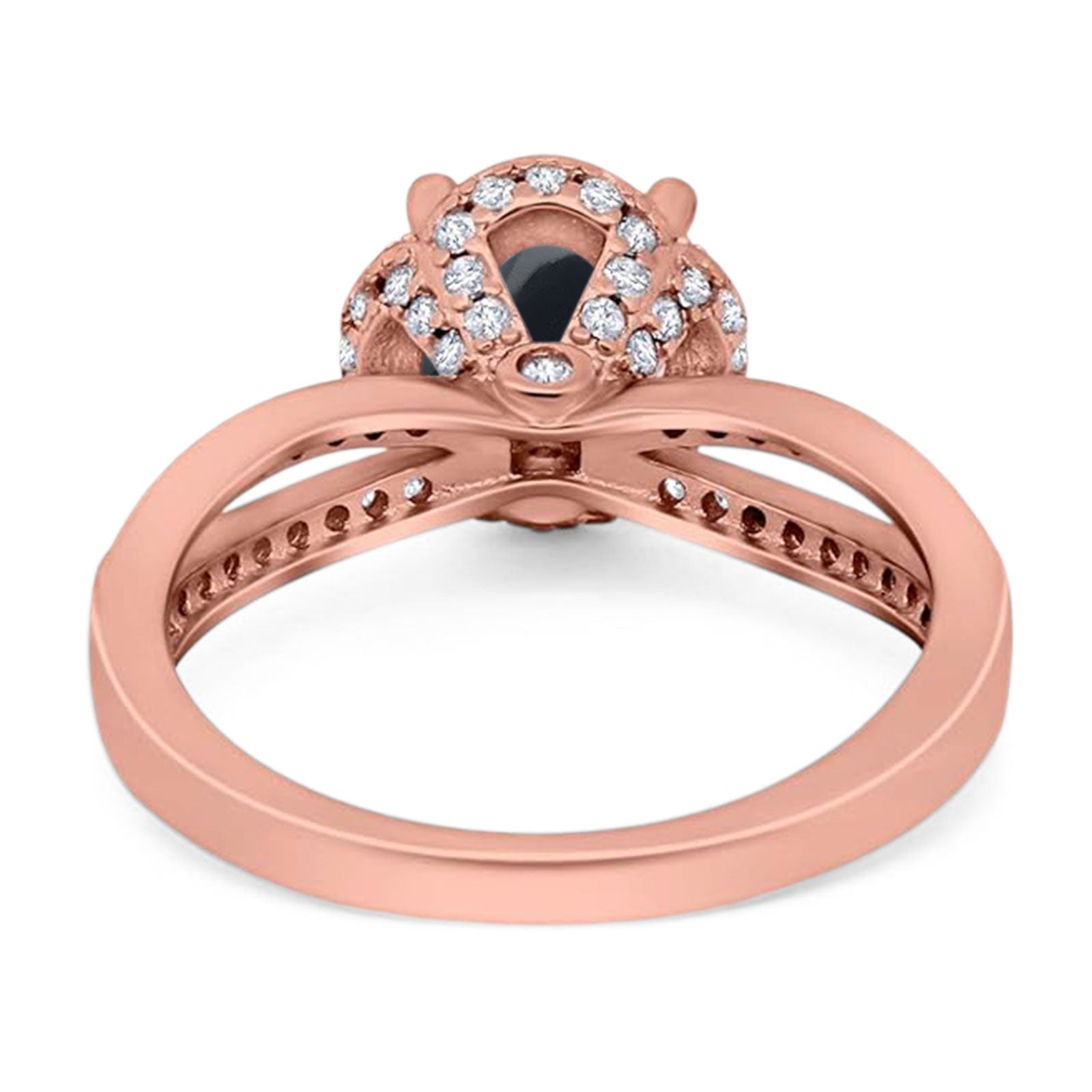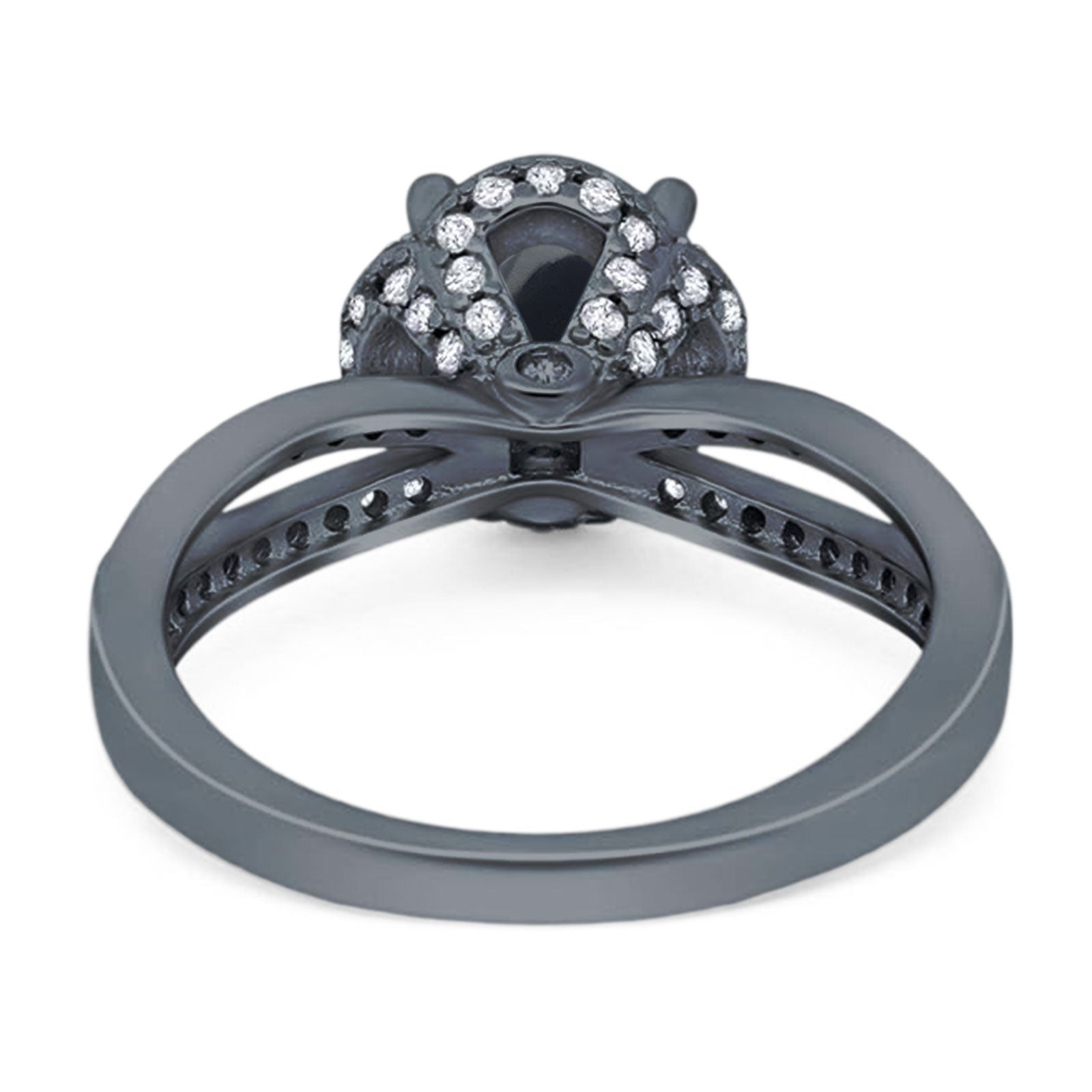 Art Deco Round Natural Black Onyx Split Shank Ring 925 Sterling Silver