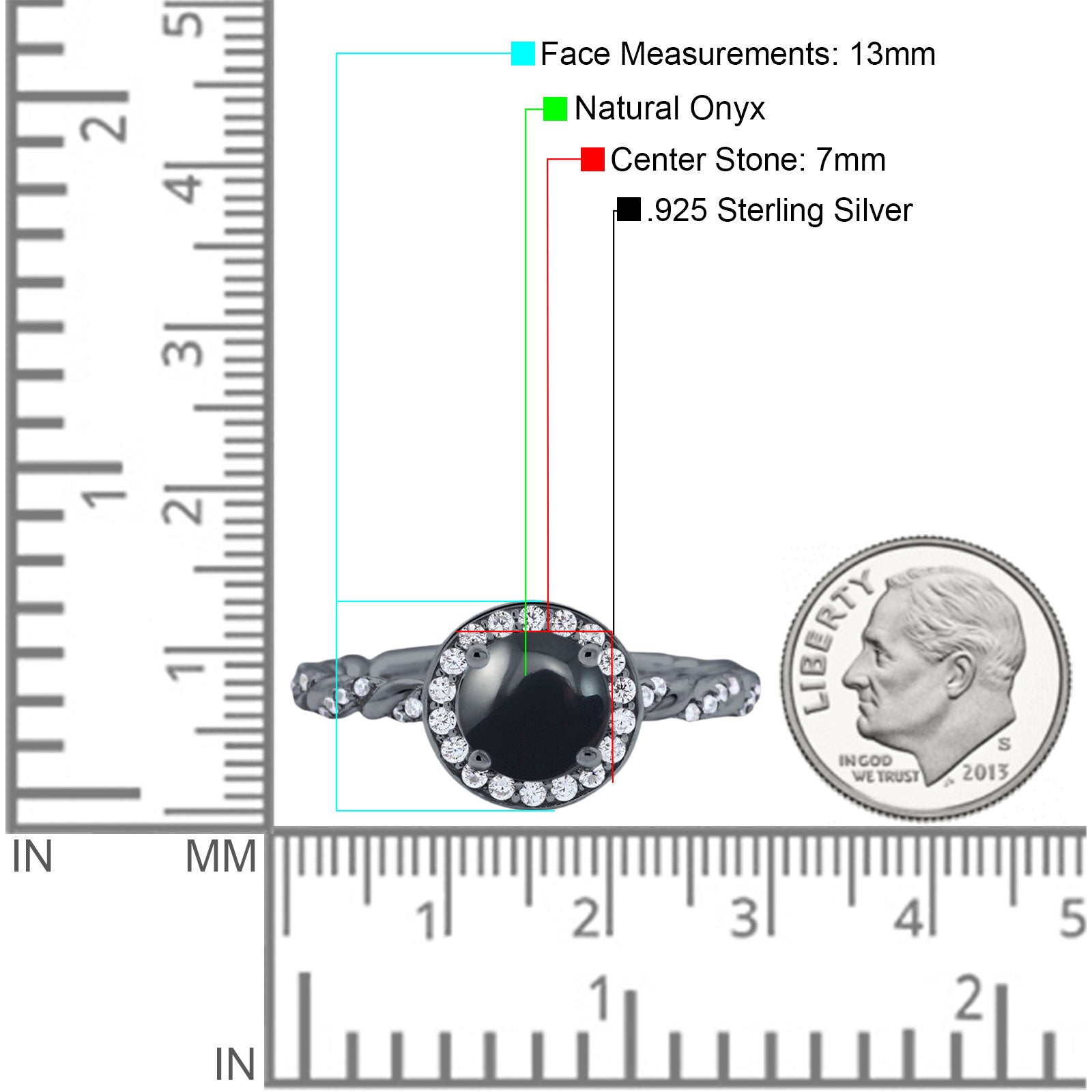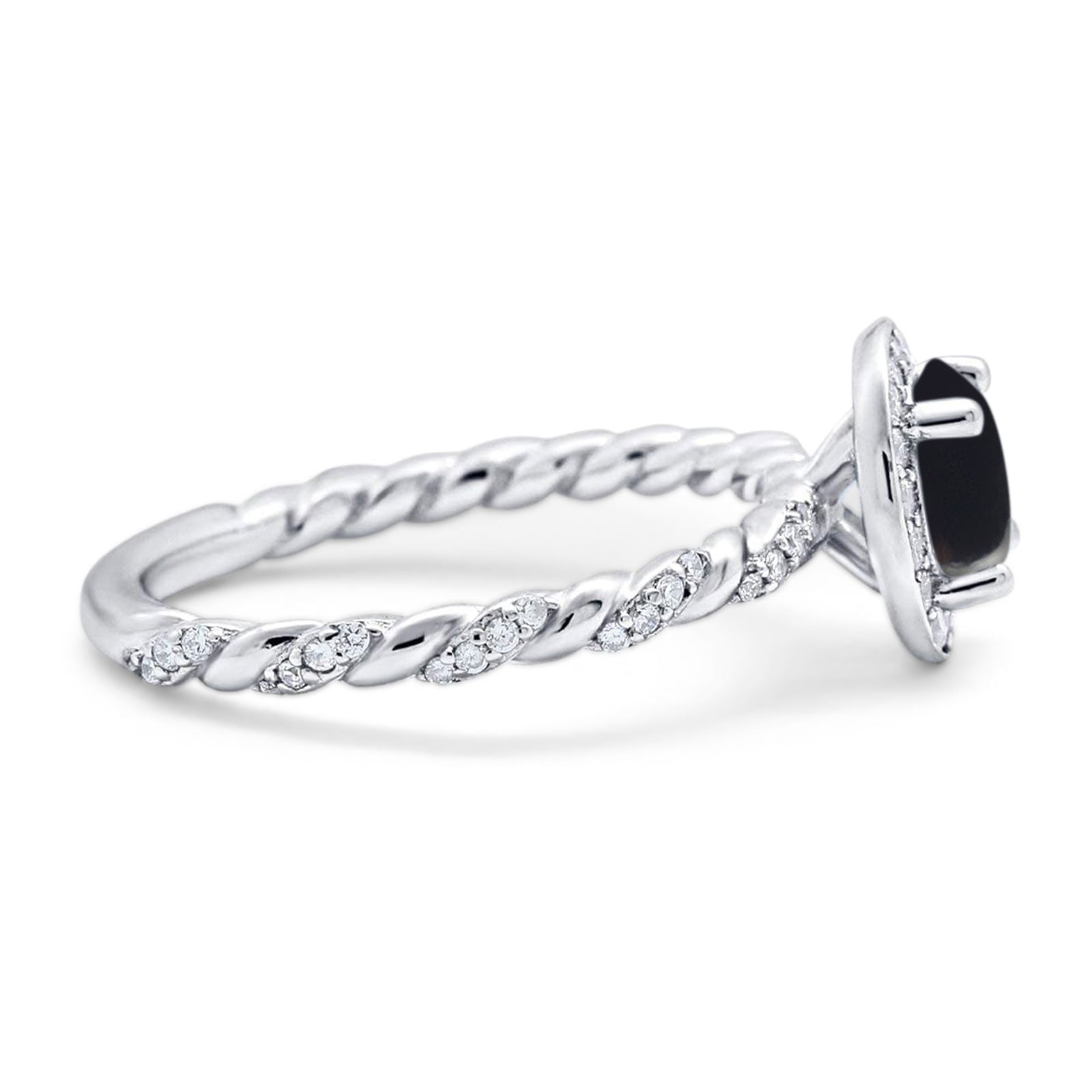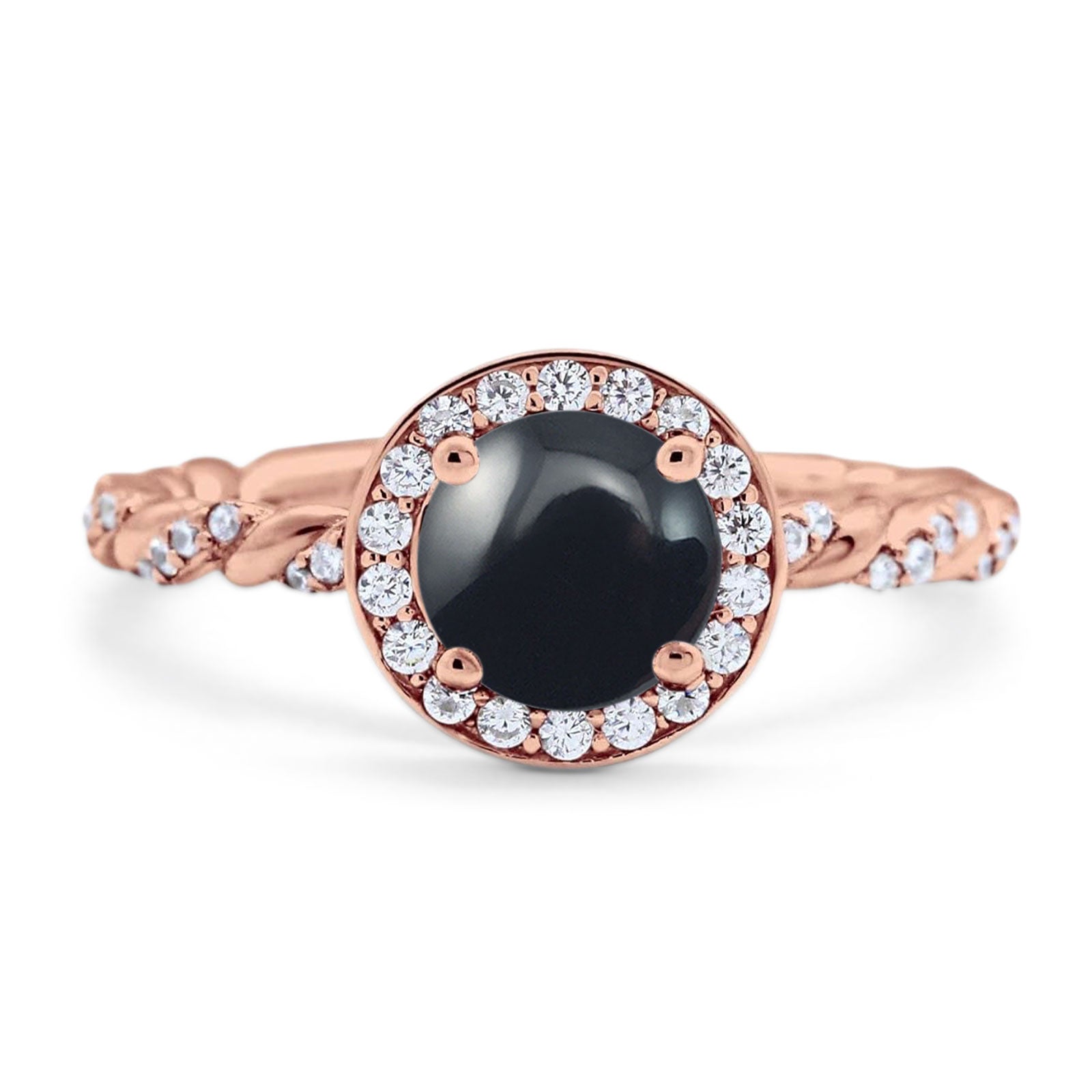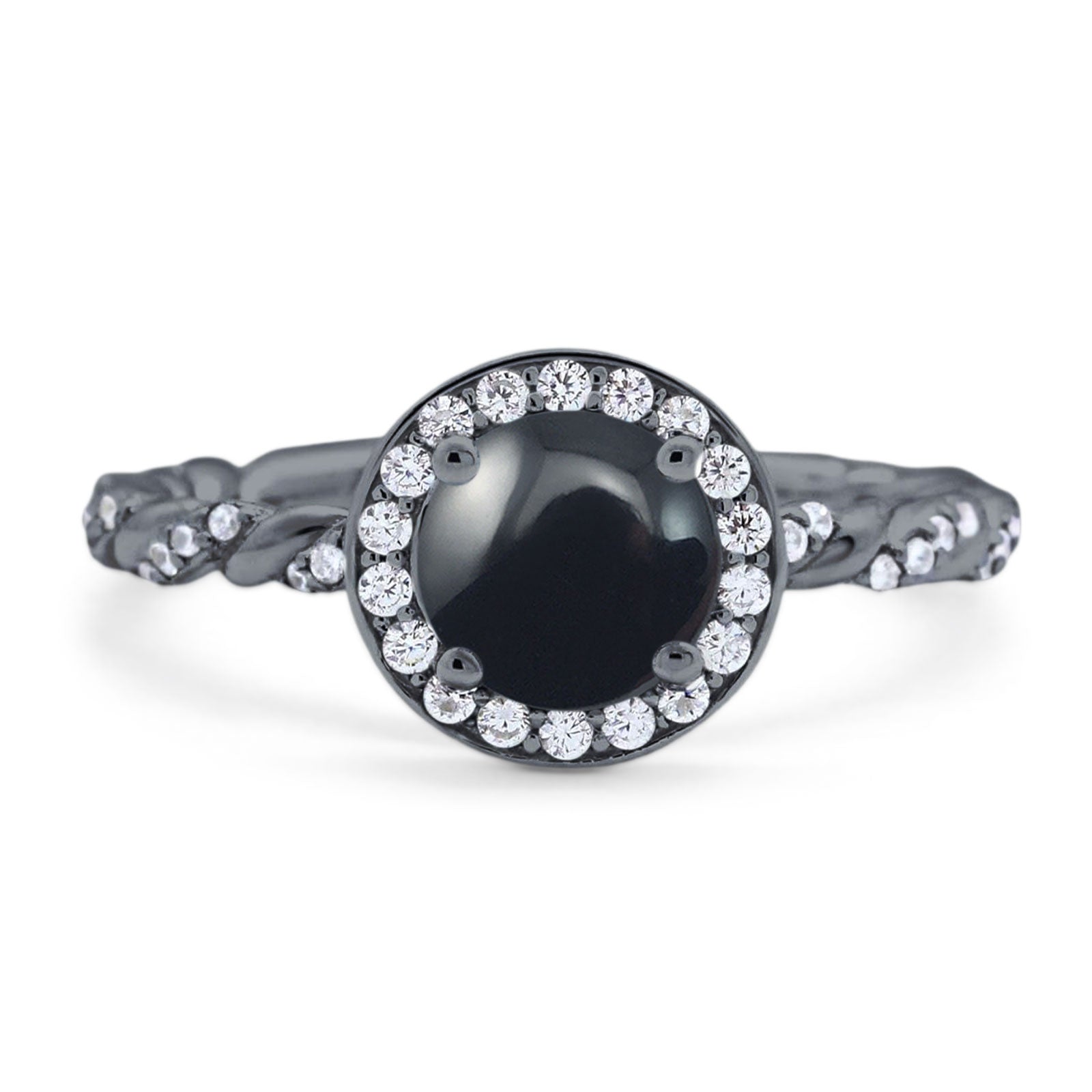 Art Deco Round Natural Black Onyx Twisted Halo Ring 925 Sterling Silver