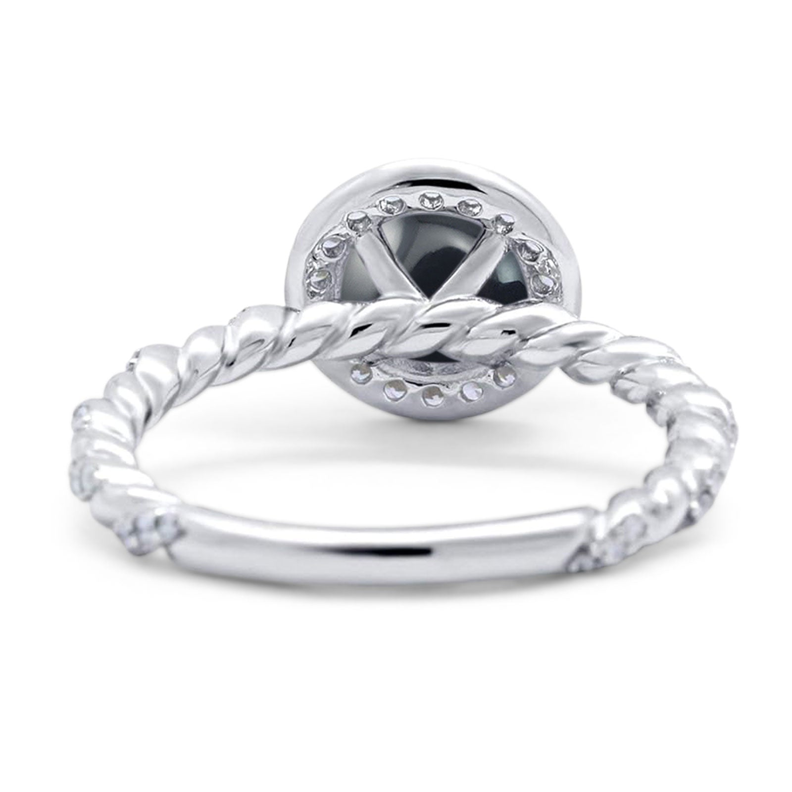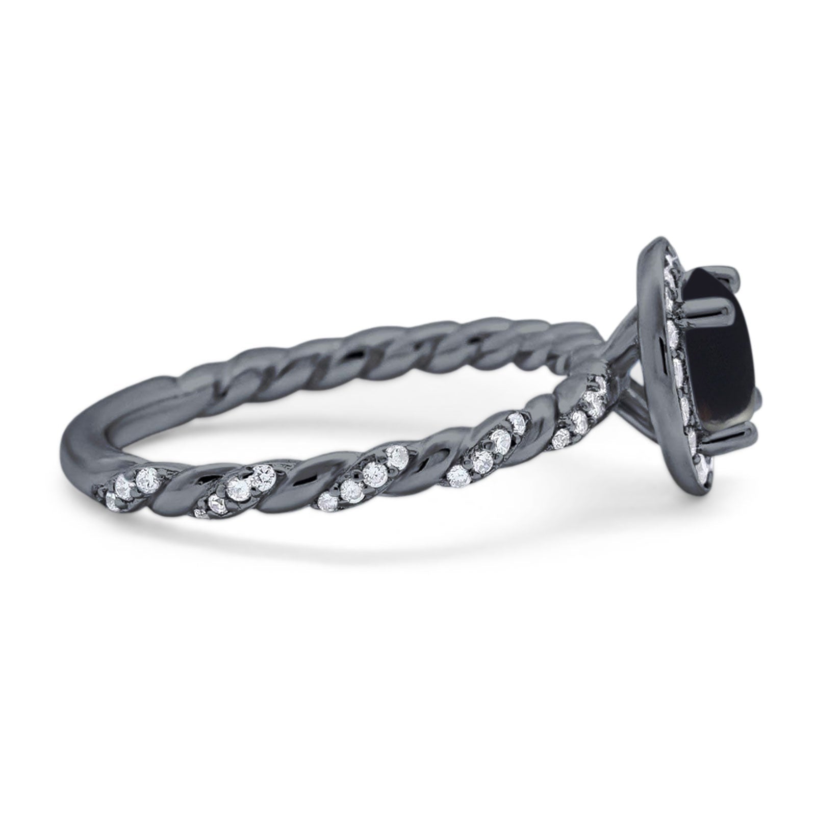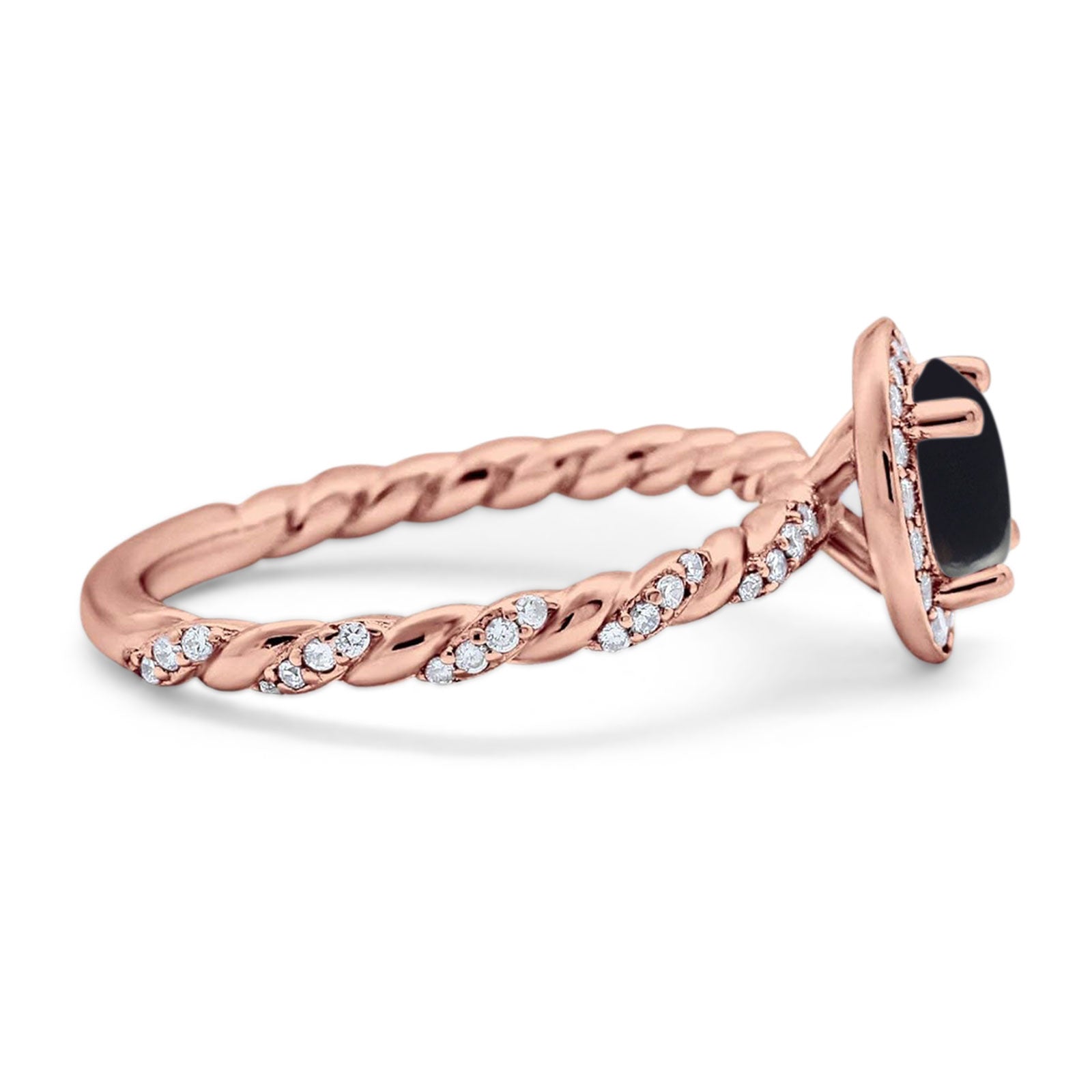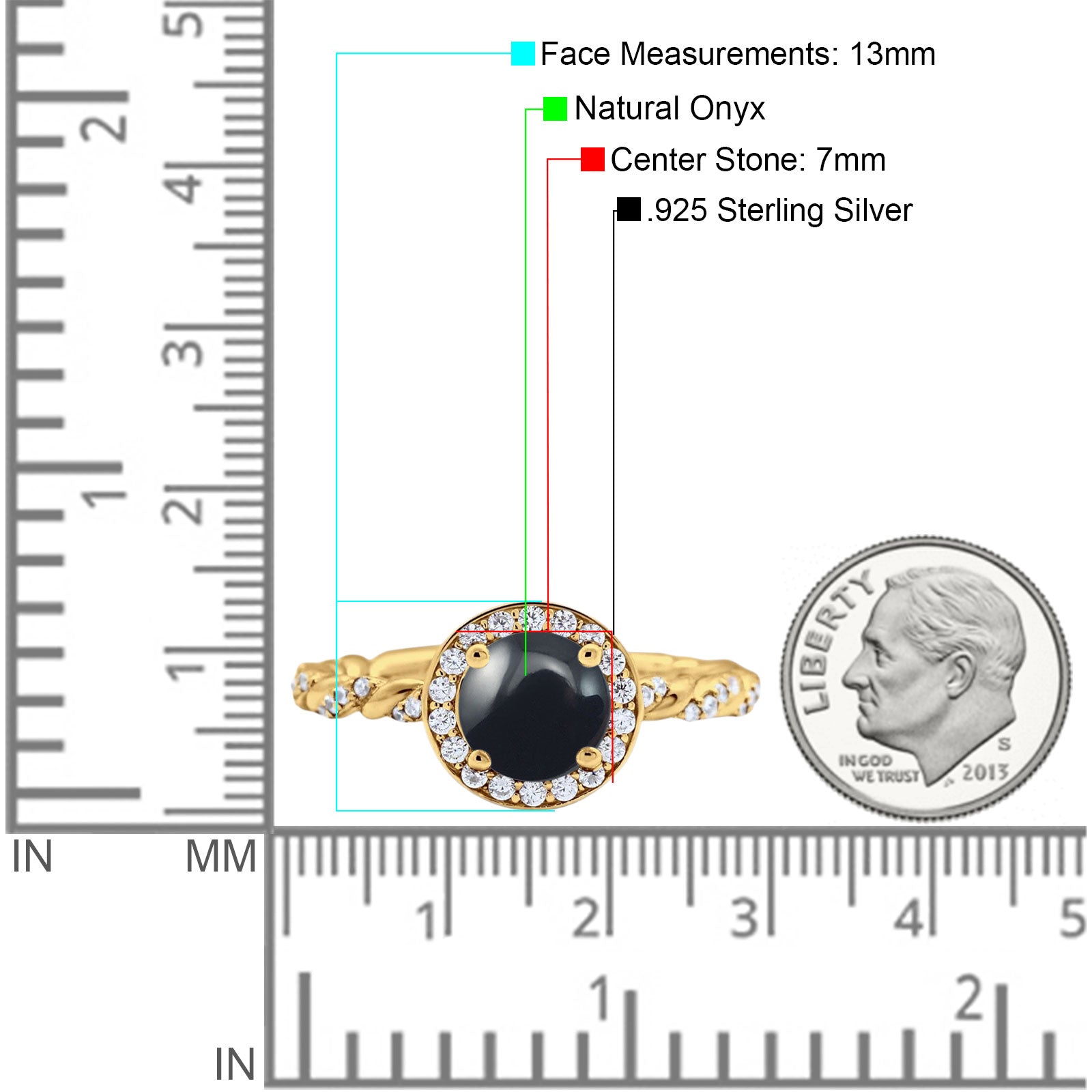 Art Deco Round Natural Black Onyx Twisted Halo Ring 925 Sterling Silver