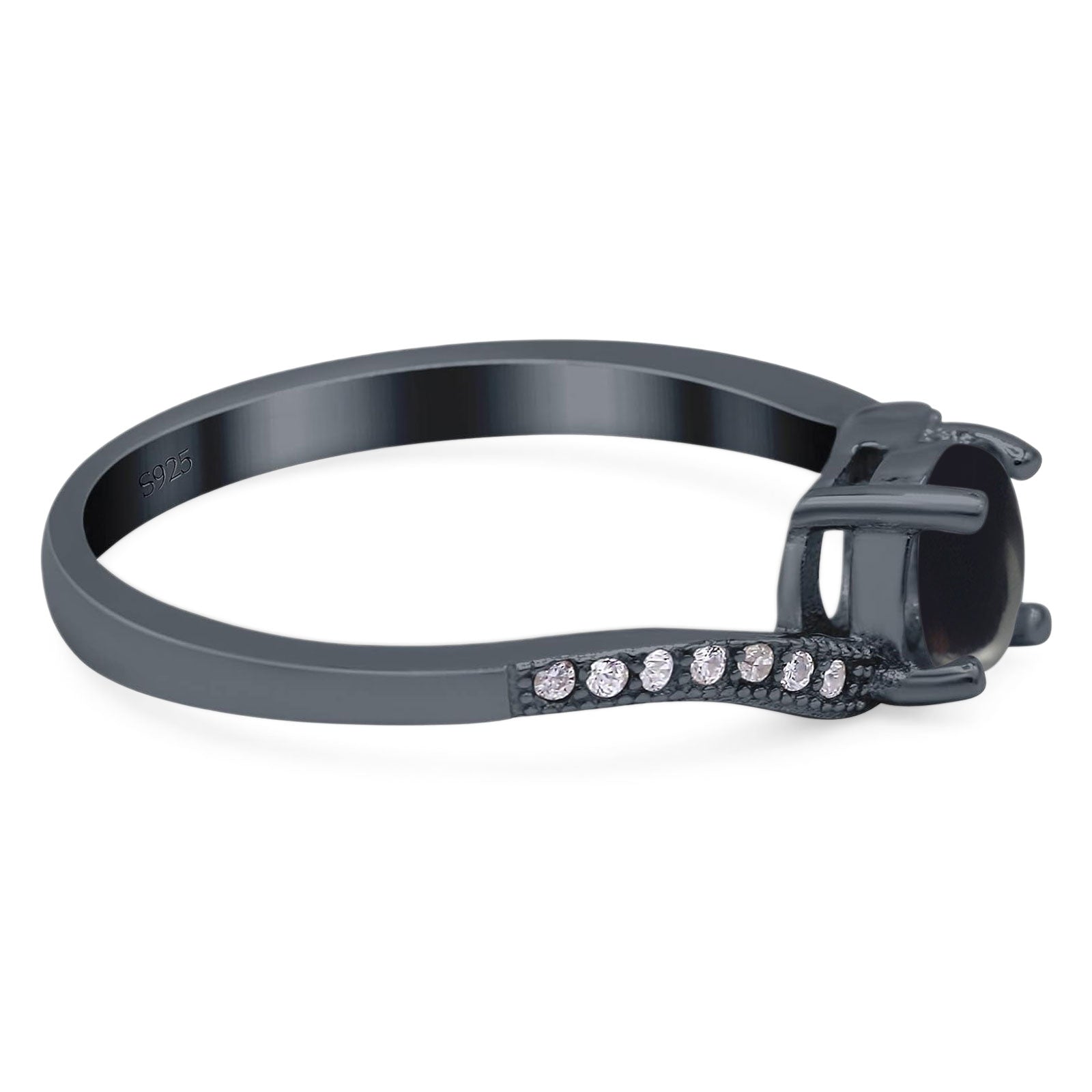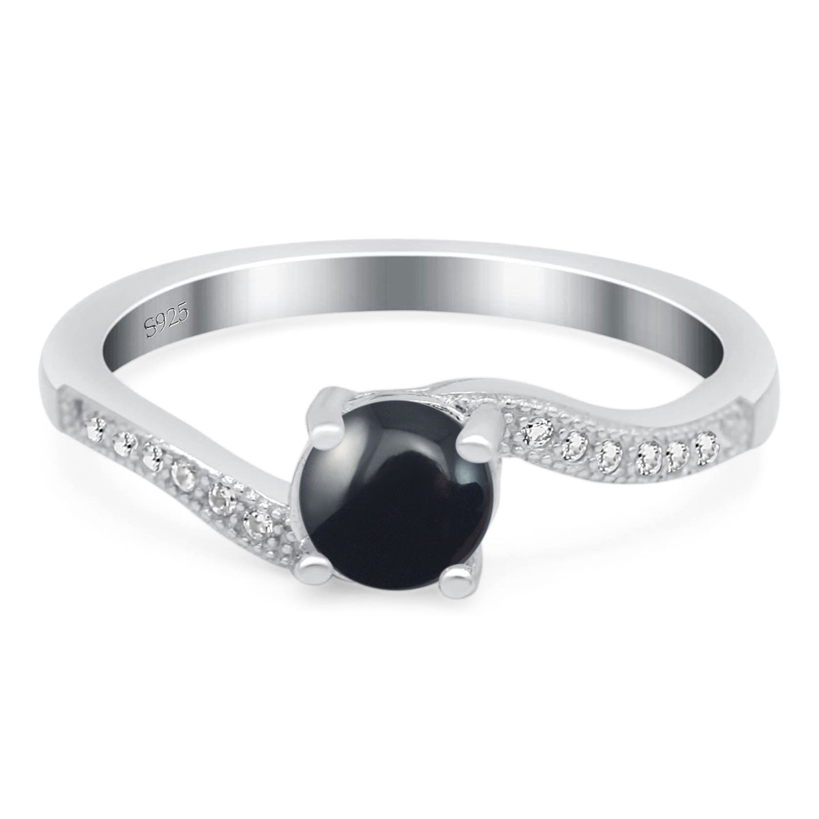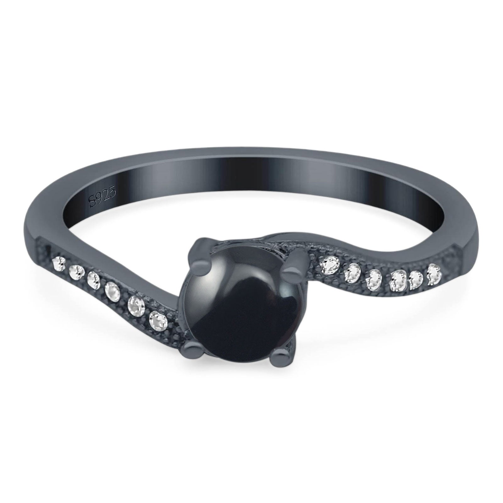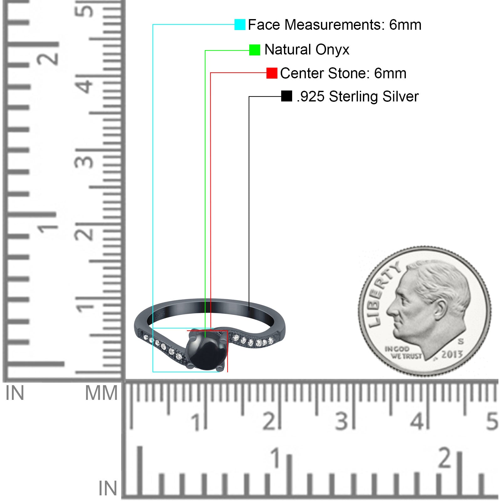 Art Deco Round Natural Black Onyx Wedding Ring 925 Sterling Silver