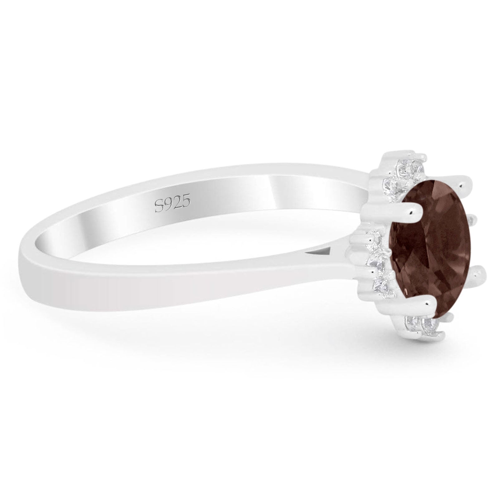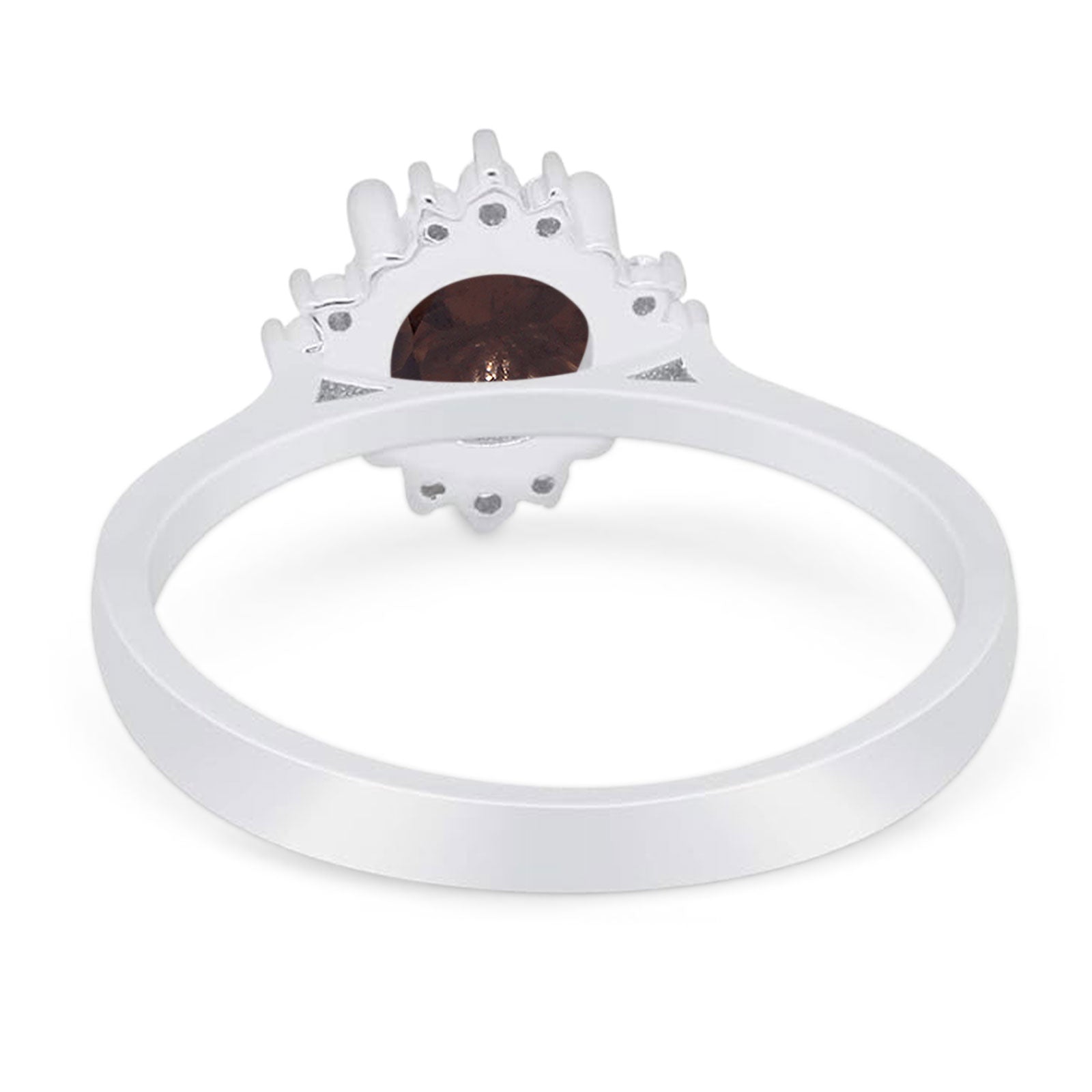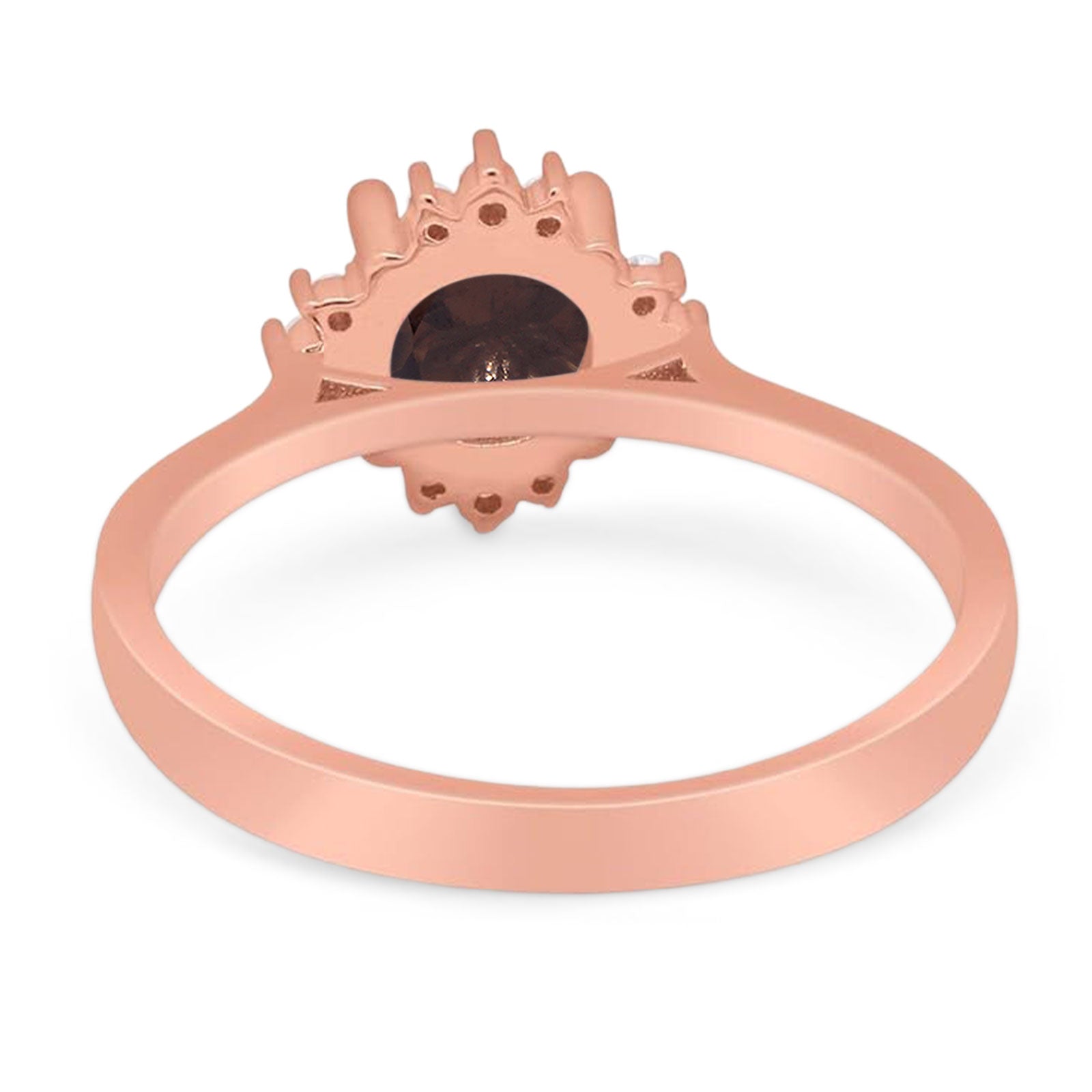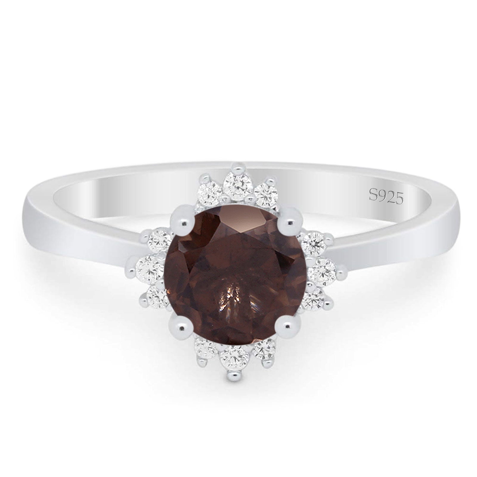 Art Deco Round Natural Chocolate Smoky Quartz Floral Ring 925 Sterling Silver