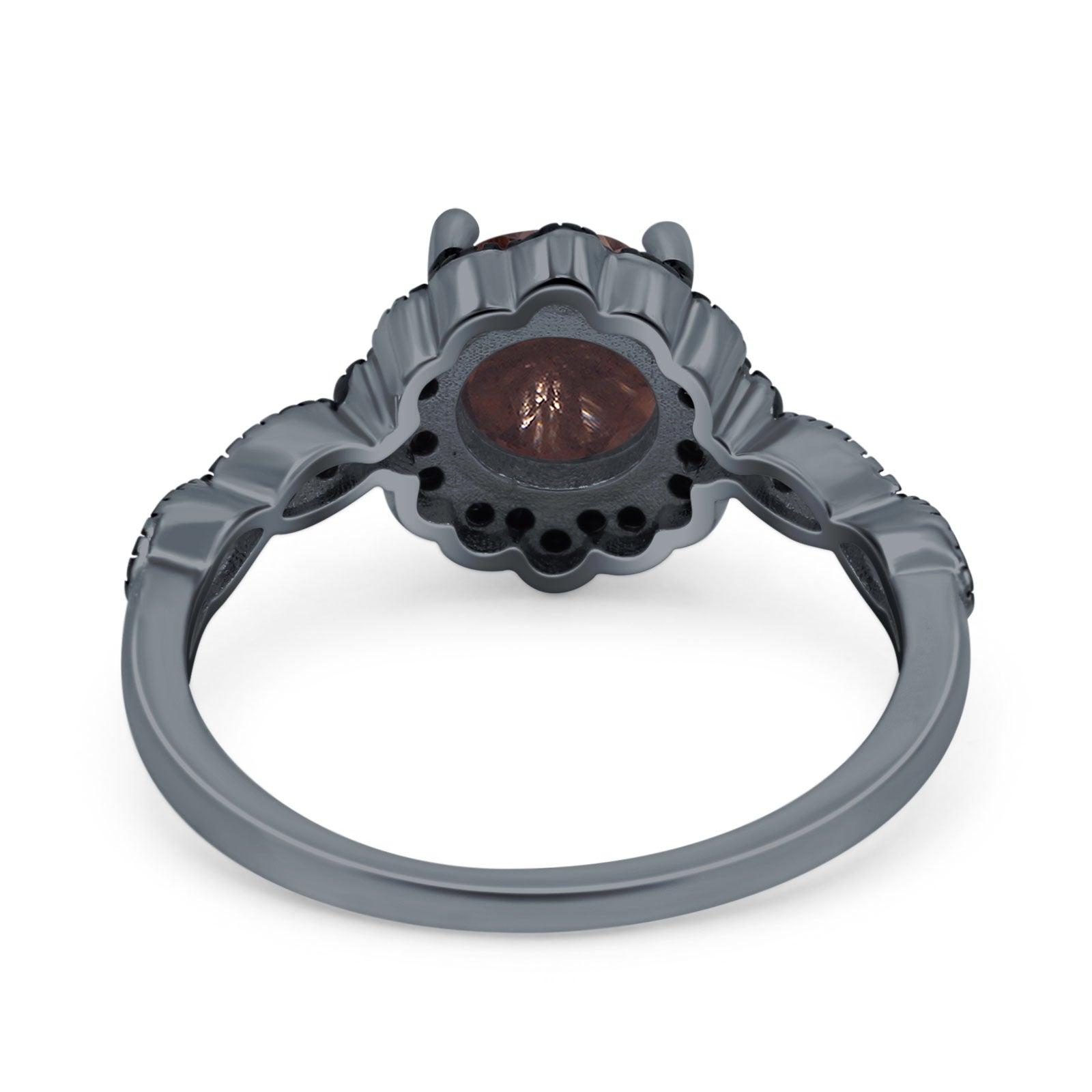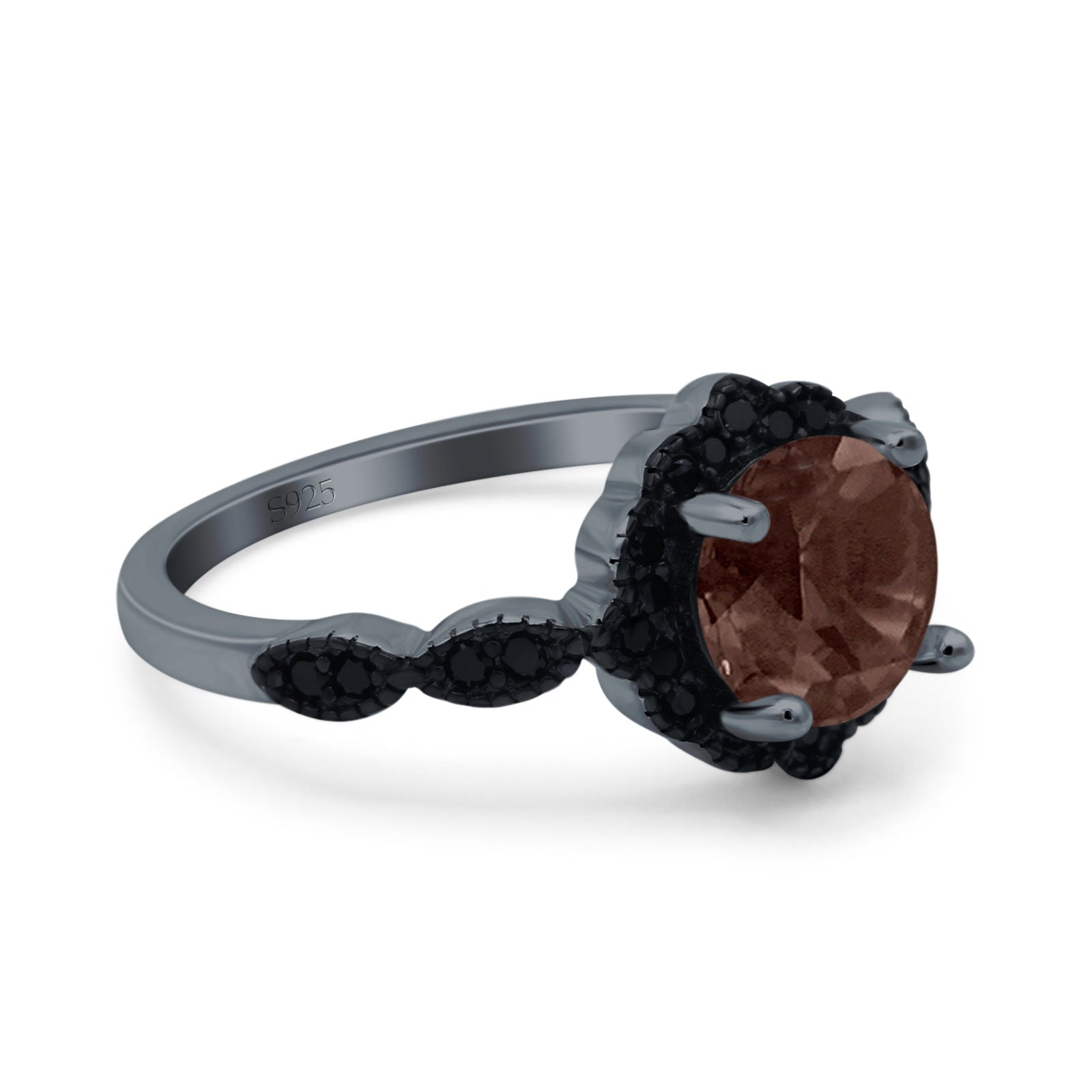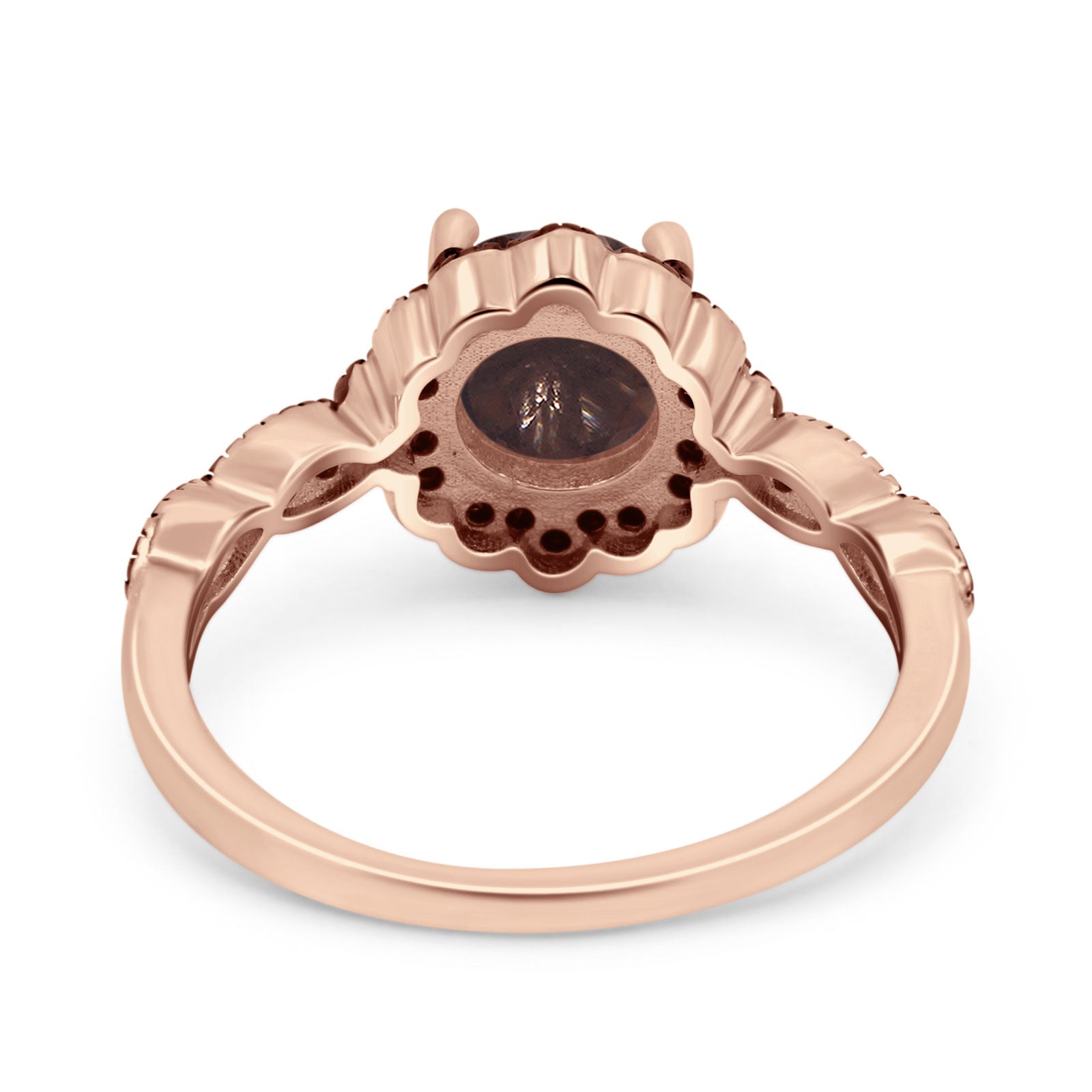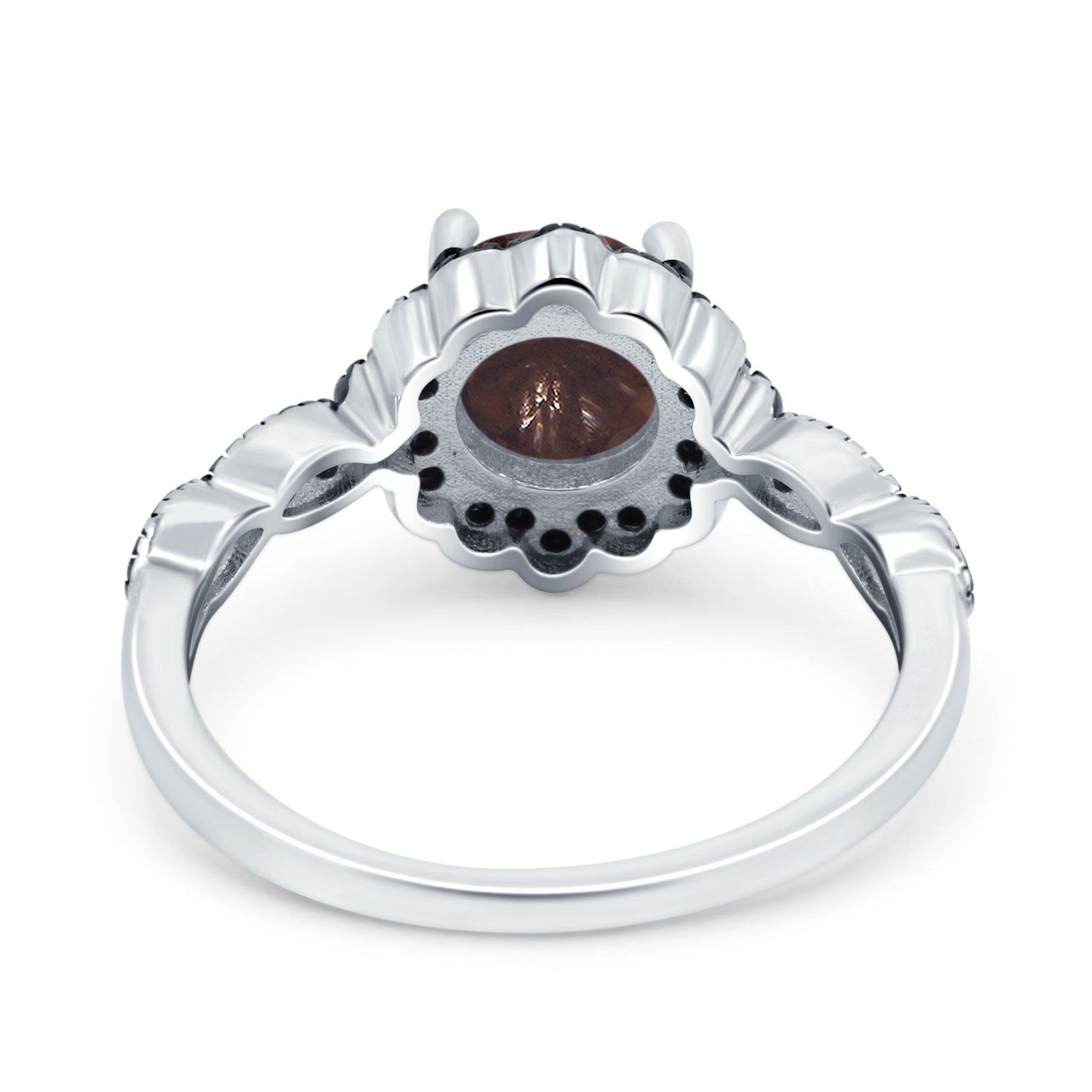 Art Deco Round Natural Chocolate Smoky Quartz Flower Ring 925 Sterling Silver