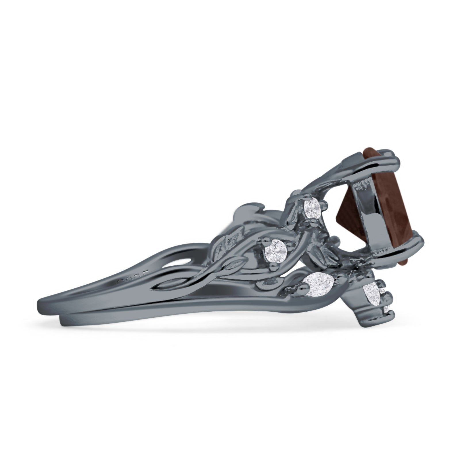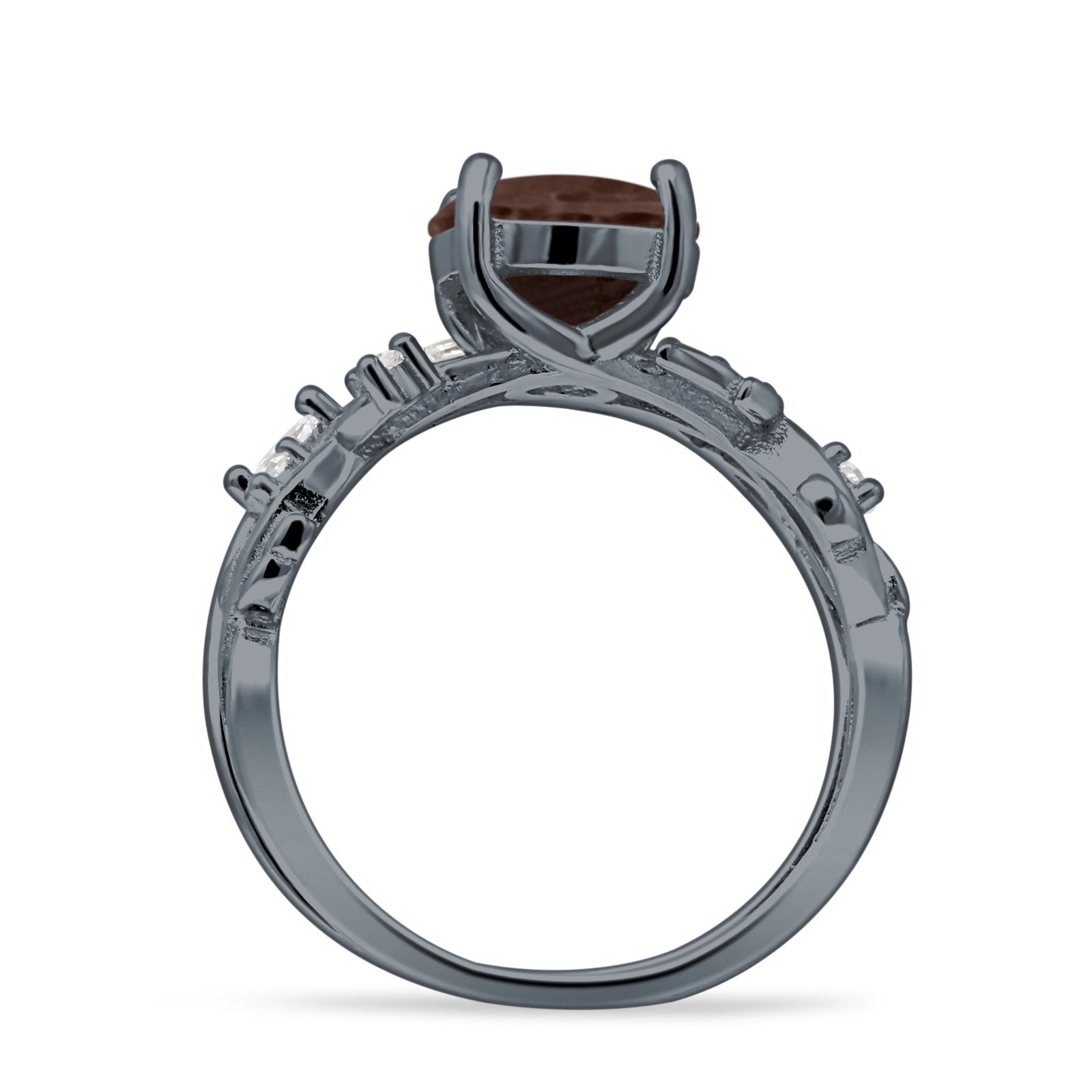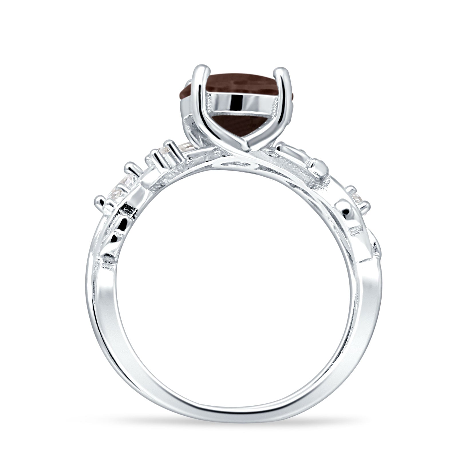 Art Deco Round Natural Chocolate Smoky Quartz Infinity Leaf Design Bridal Ring 925 Sterling Silver