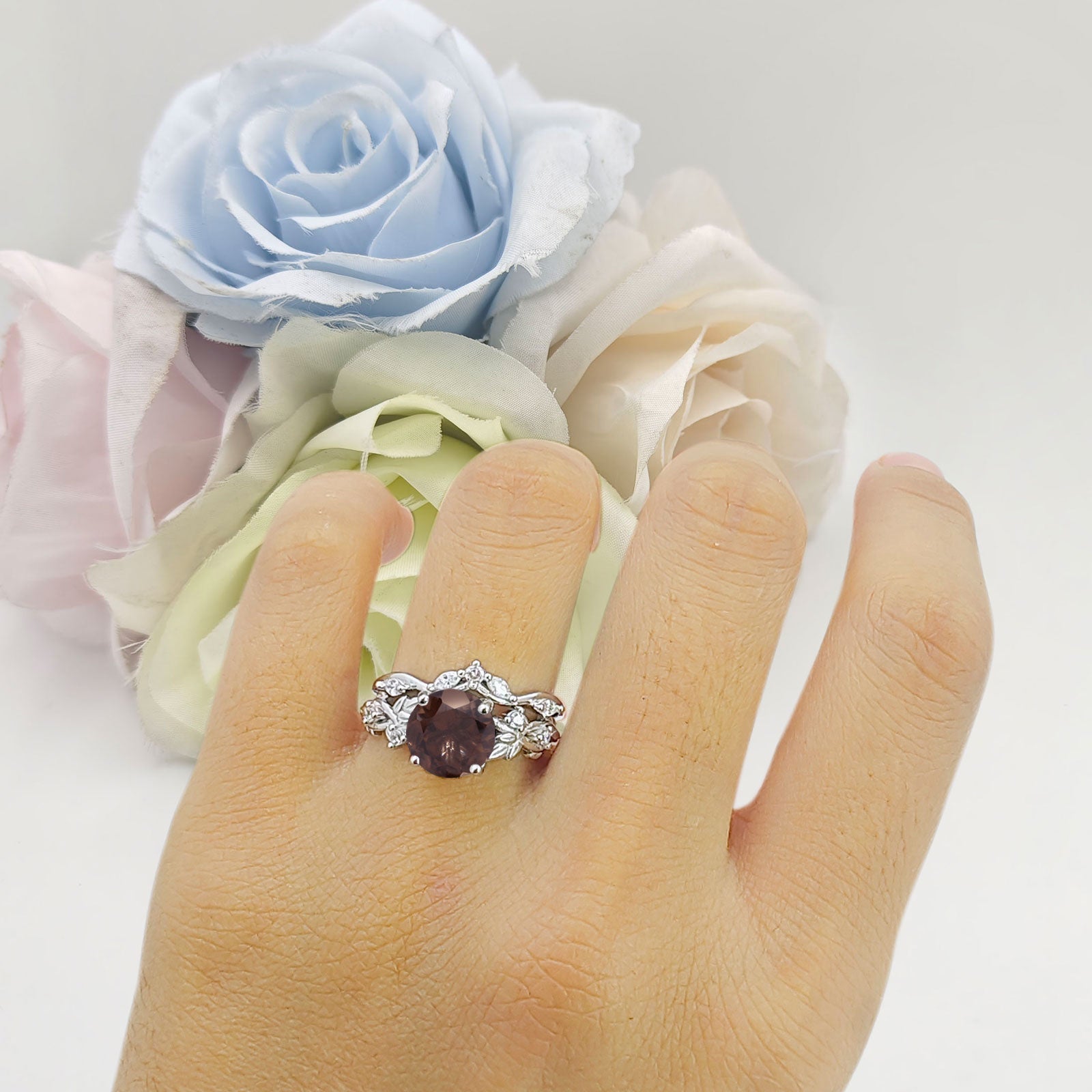 Product Description:Elegantly crafted in 925 sterling silver, this art deco-inspired bridal ring features a captivating round natural Chocolate Smoky Quartz gemstone. Adorned with intricate infinity and leaf designs, it symbolizes eternal love and growth. With its timeless charm, this ring is a stunning choice for engagements or special occasions.