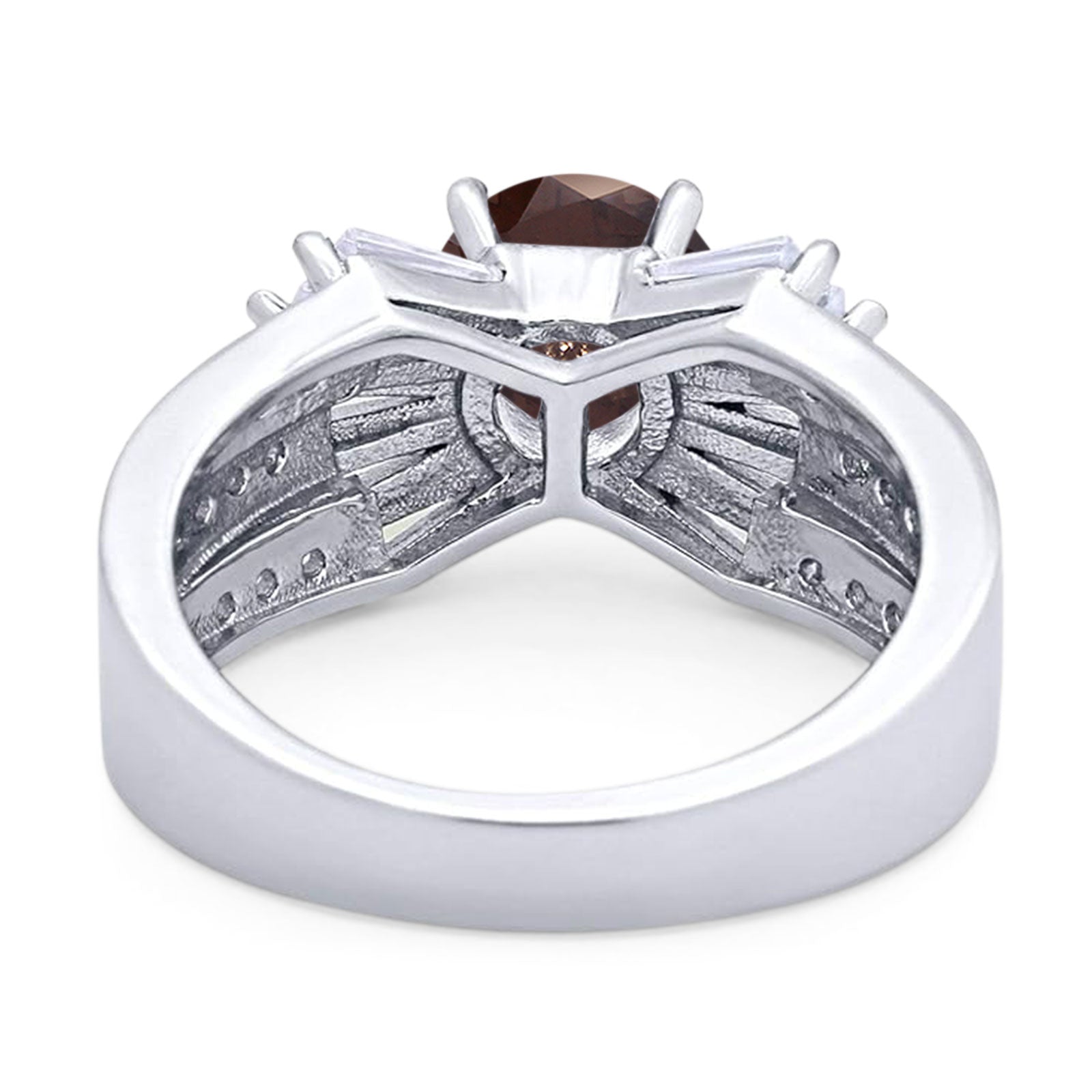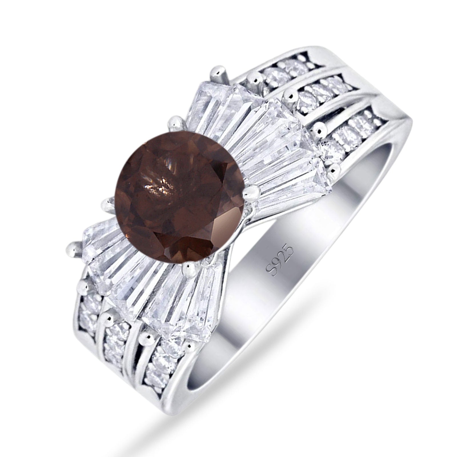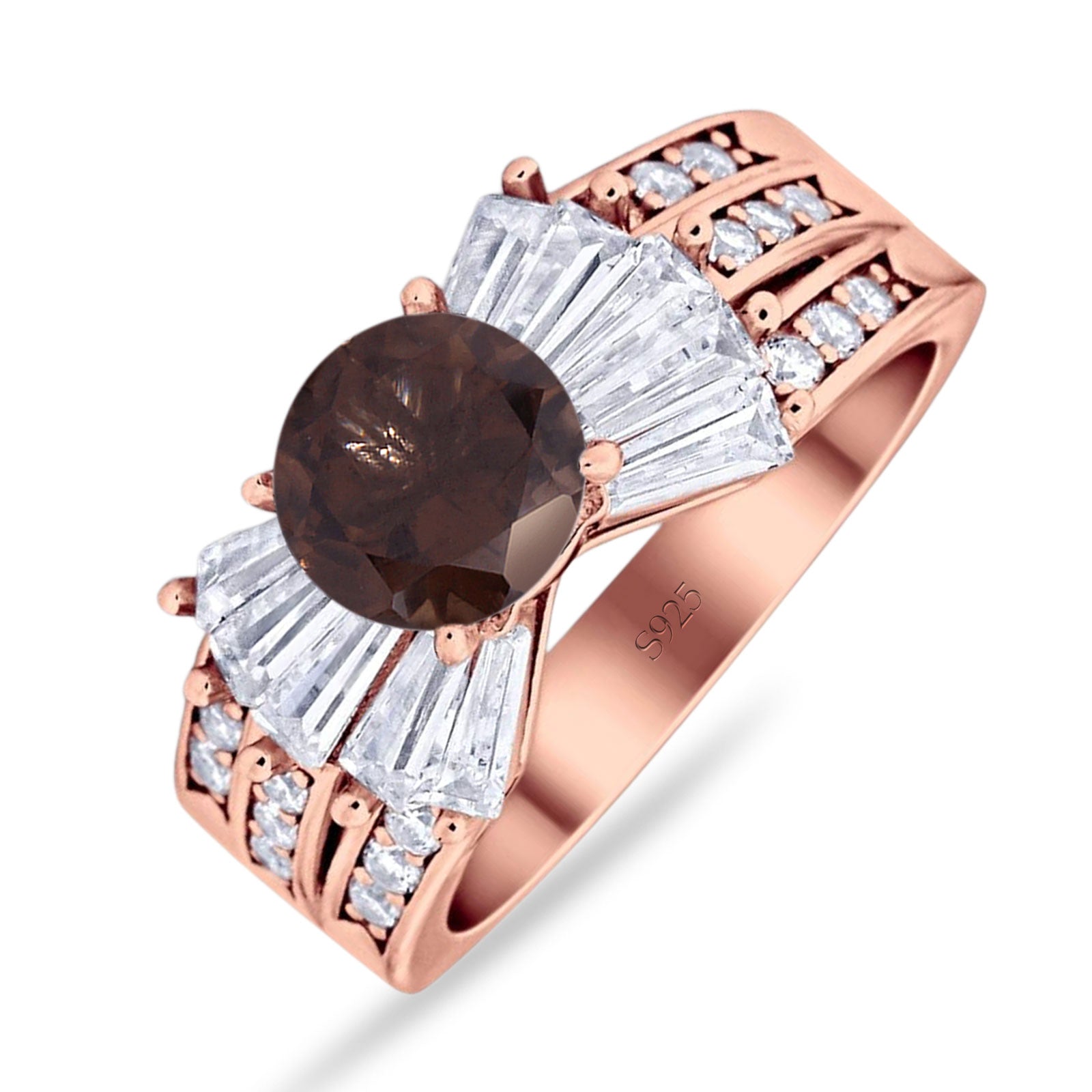 Art Deco Round Natural Chocolate Smoky Quartz Stackable Cocktail Ring 925 Sterling Silver