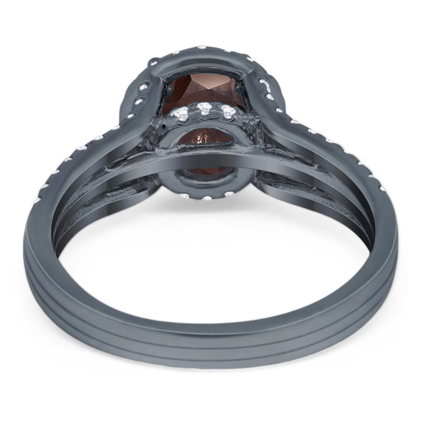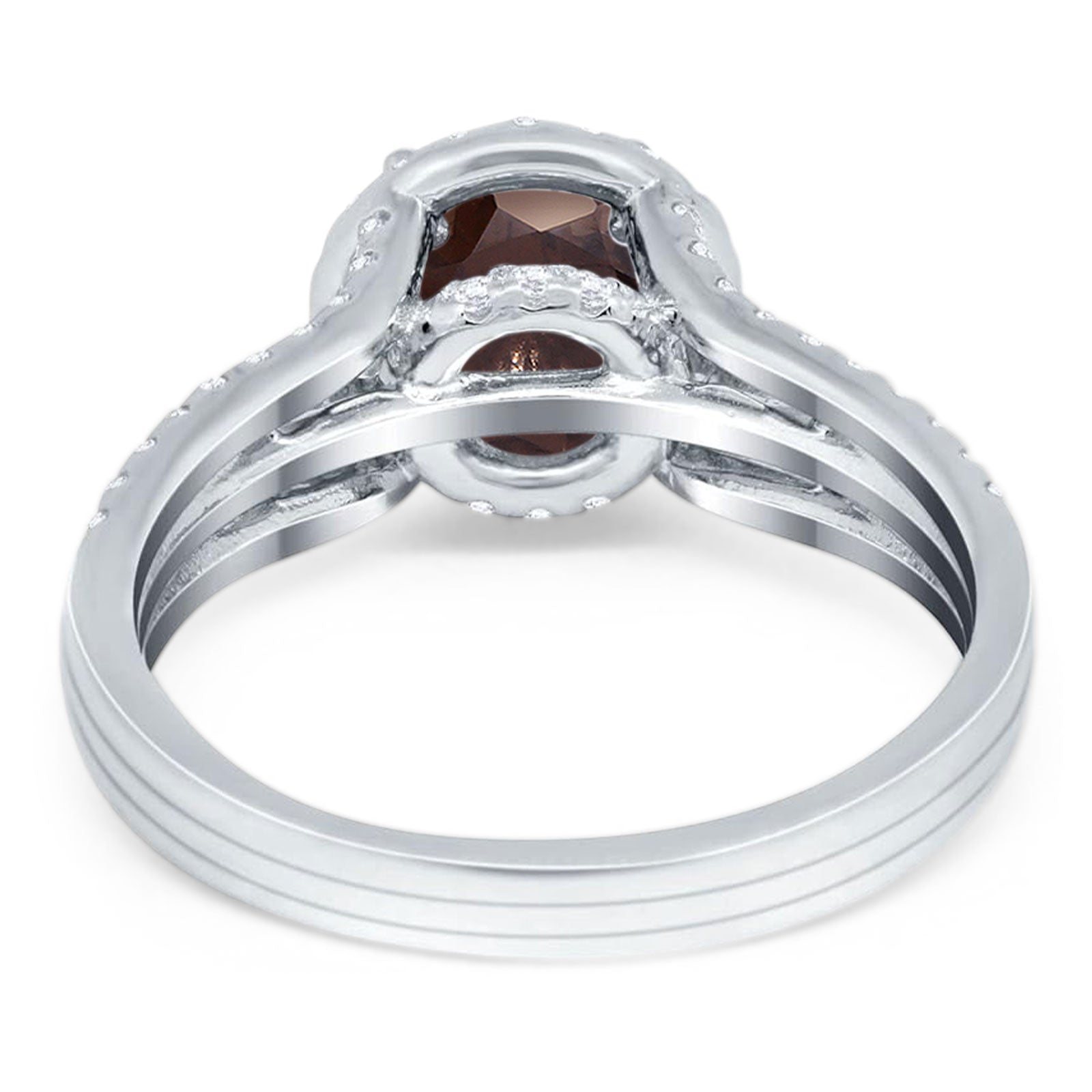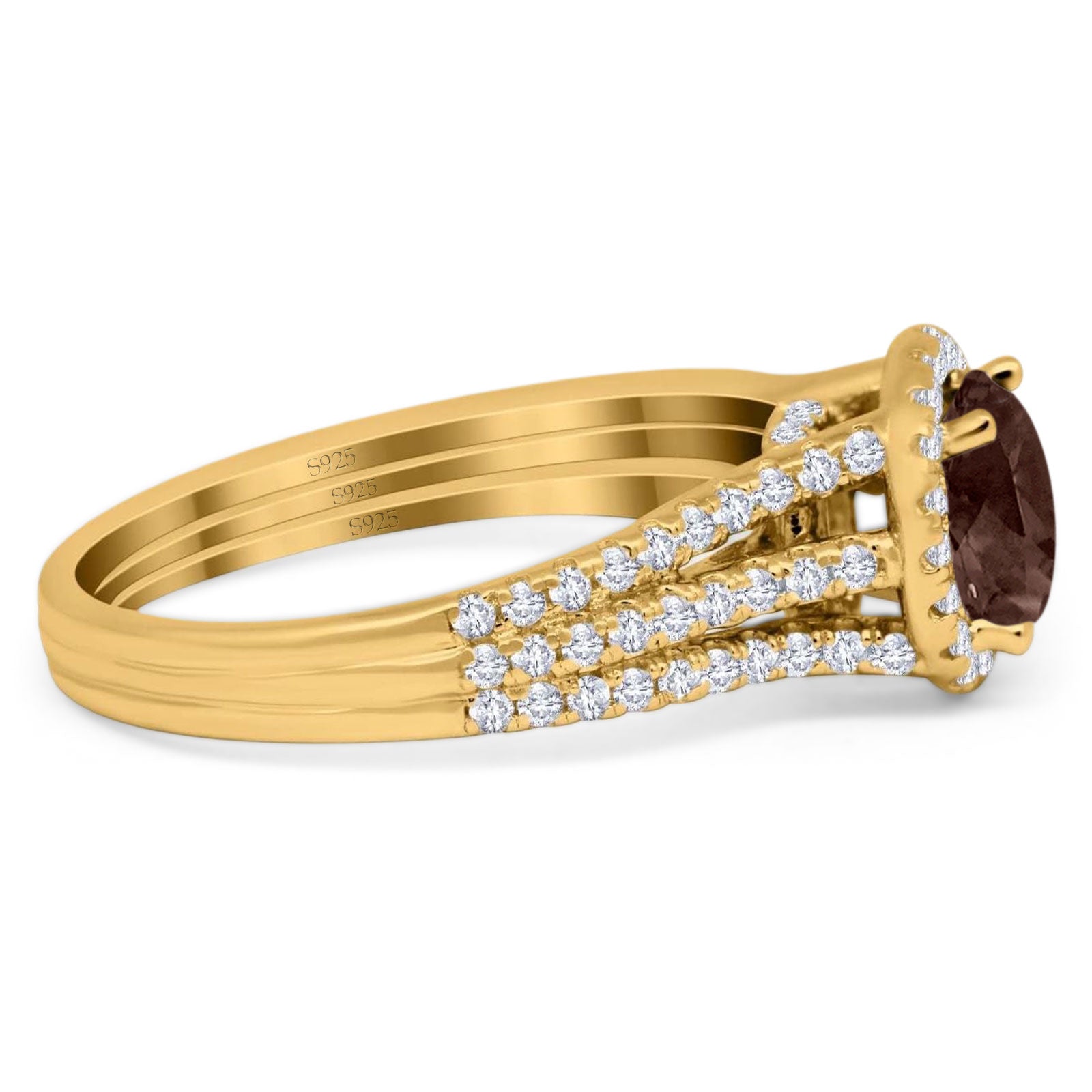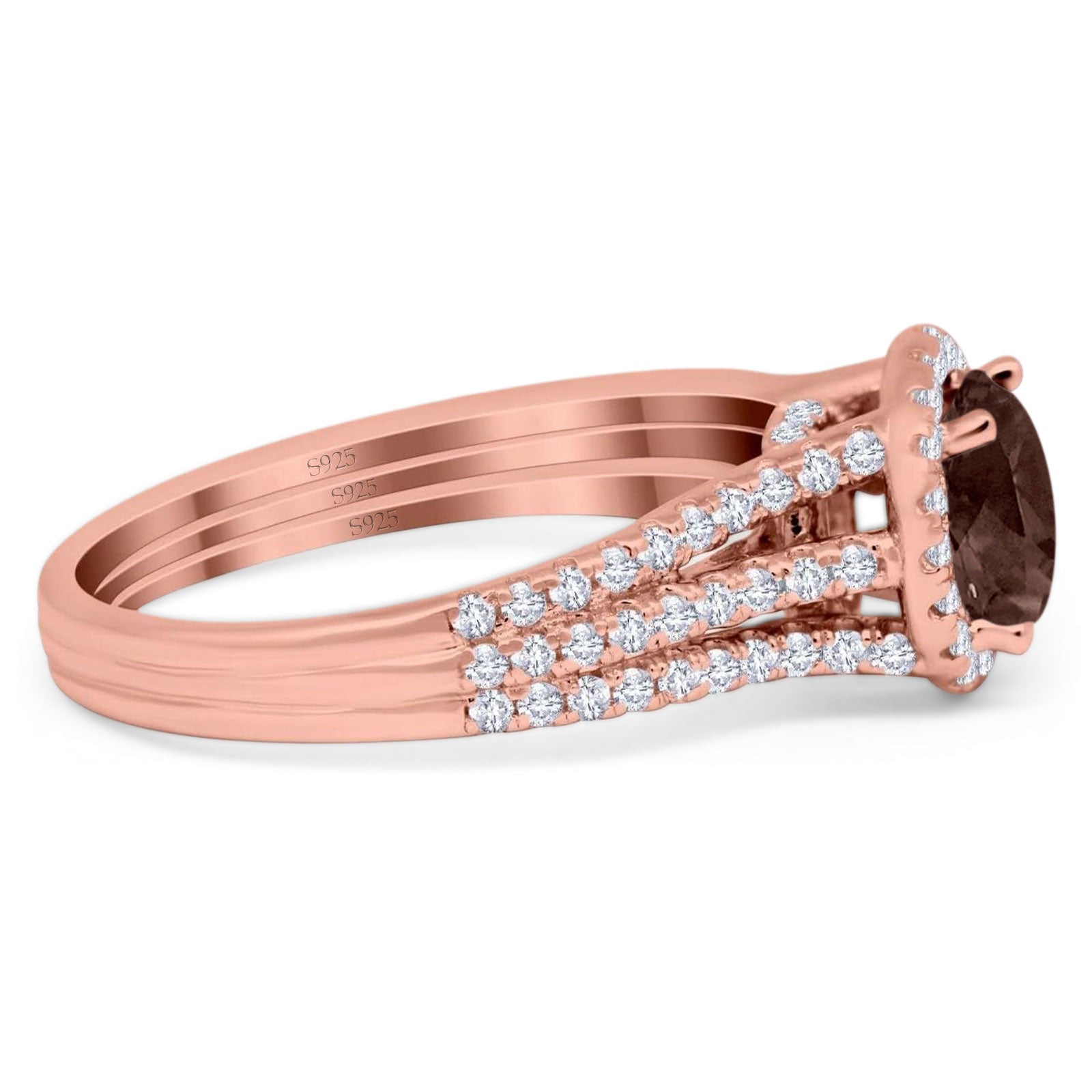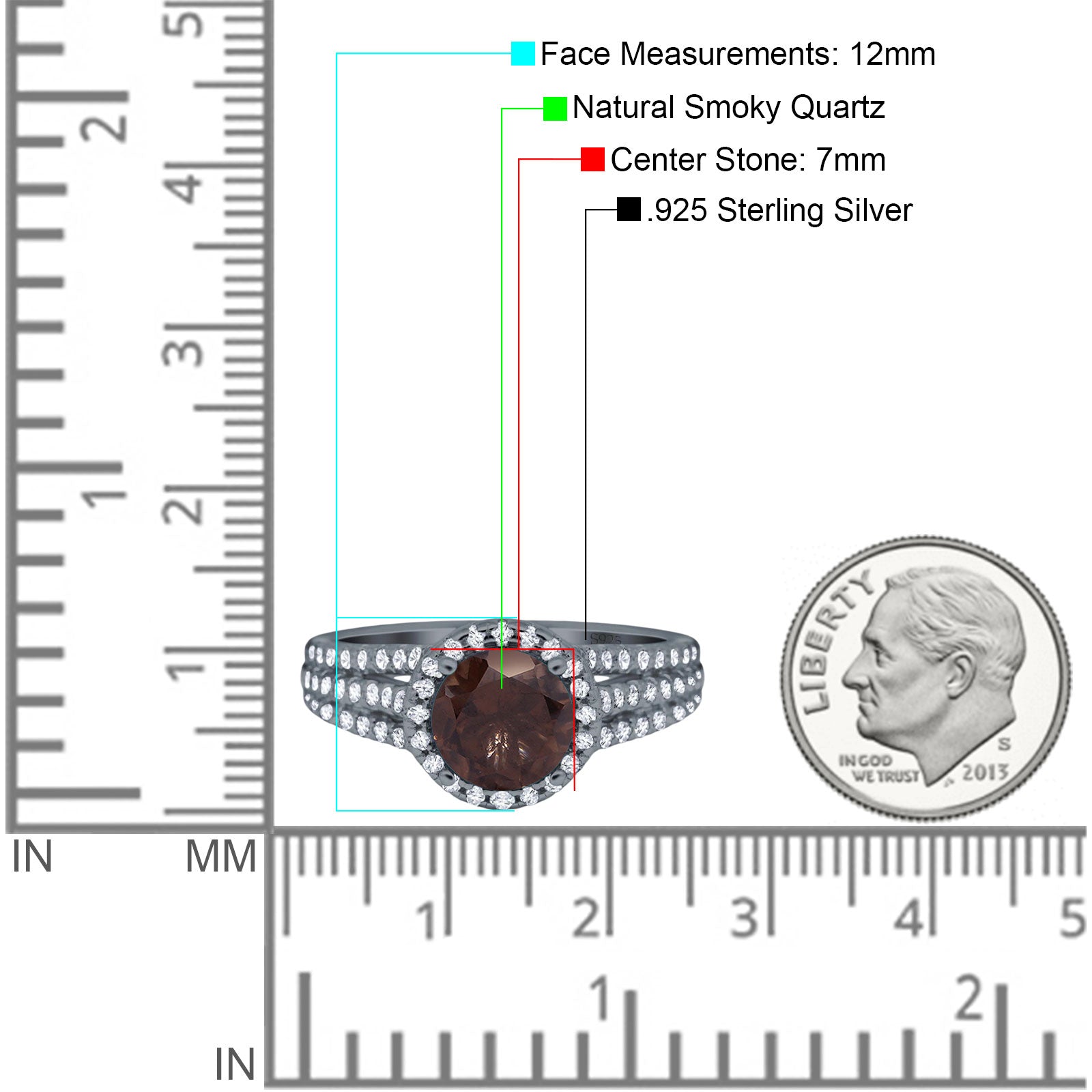 Art Deco Round Natural Chocolate Smoky Quartz Stackable Wedding Ring 925 Sterling Silver