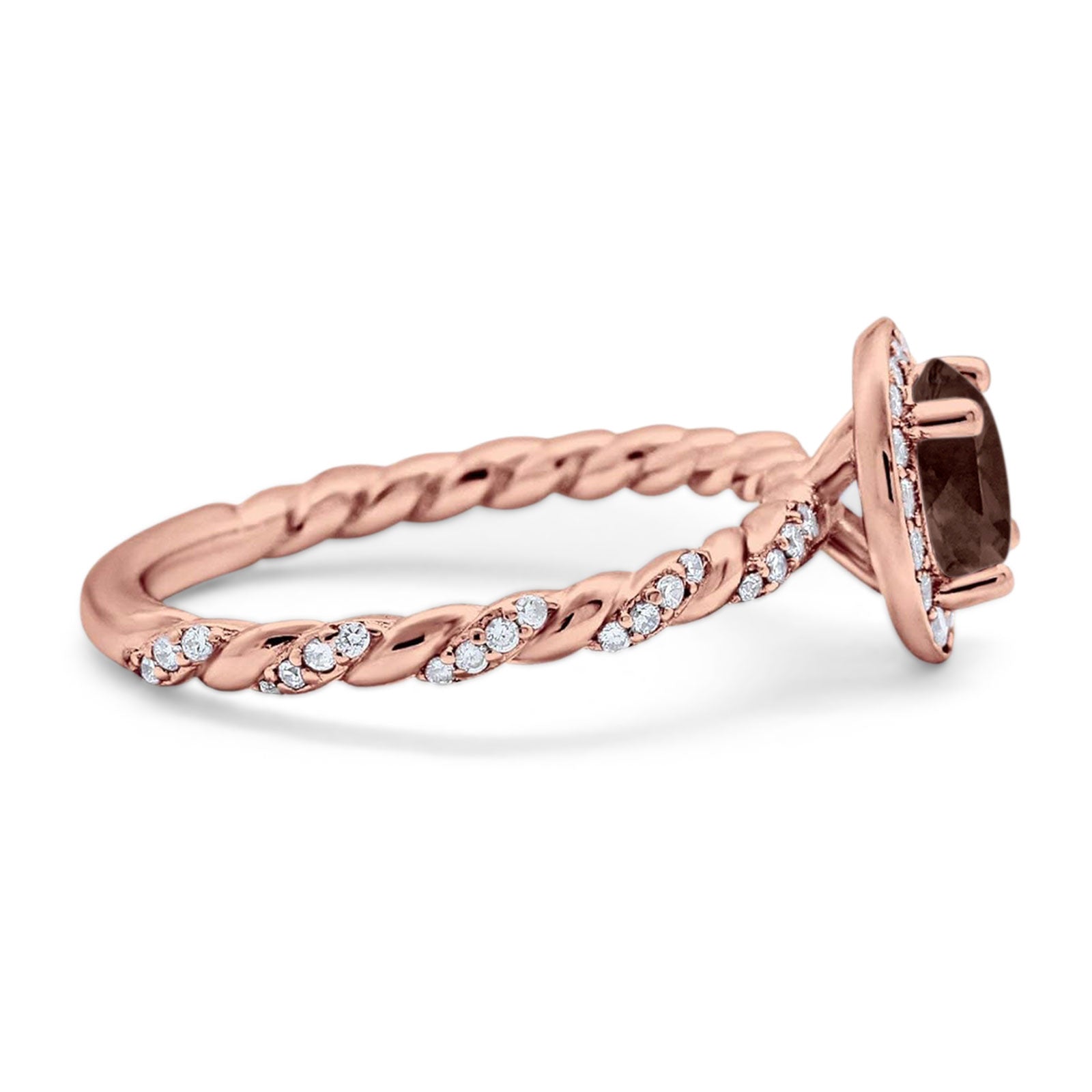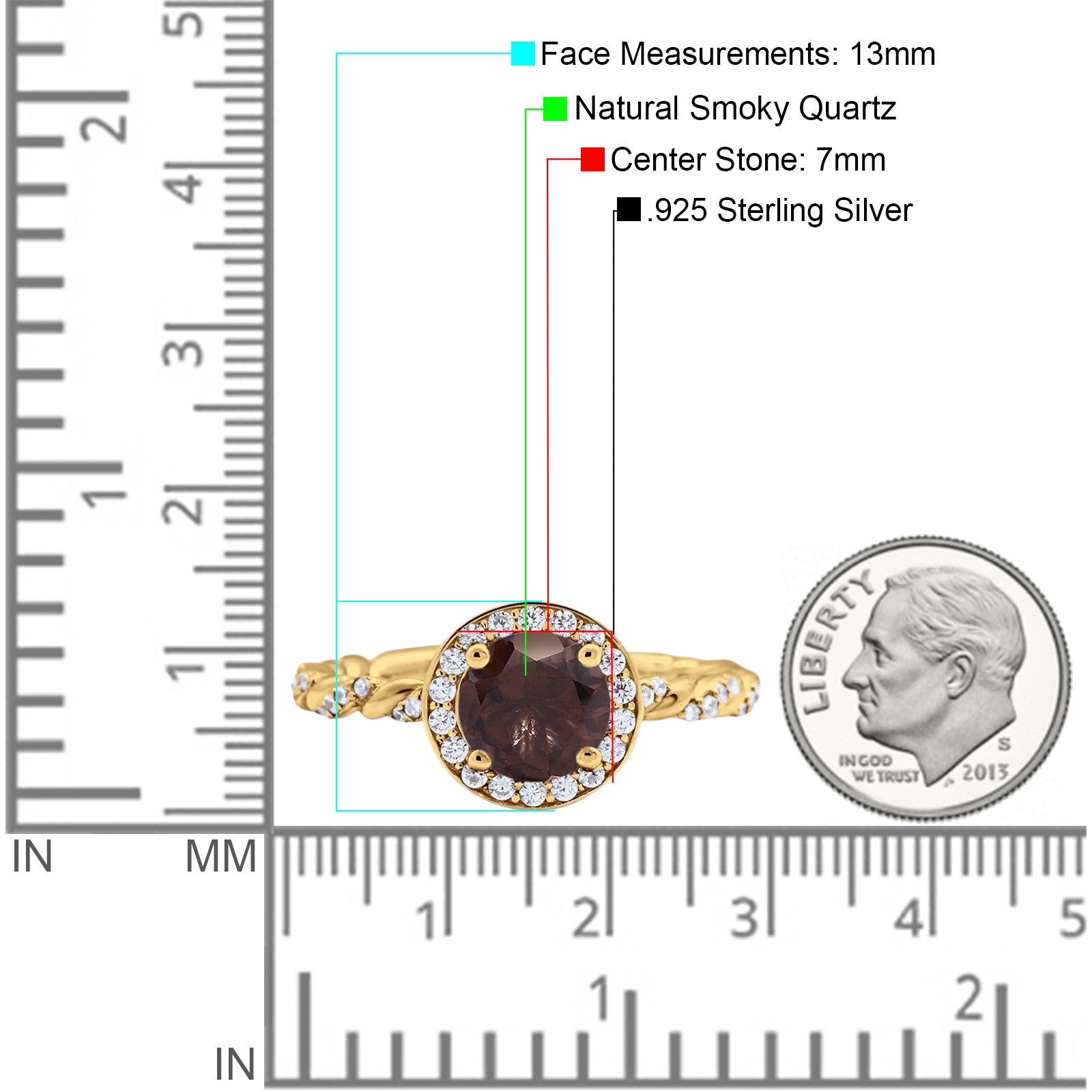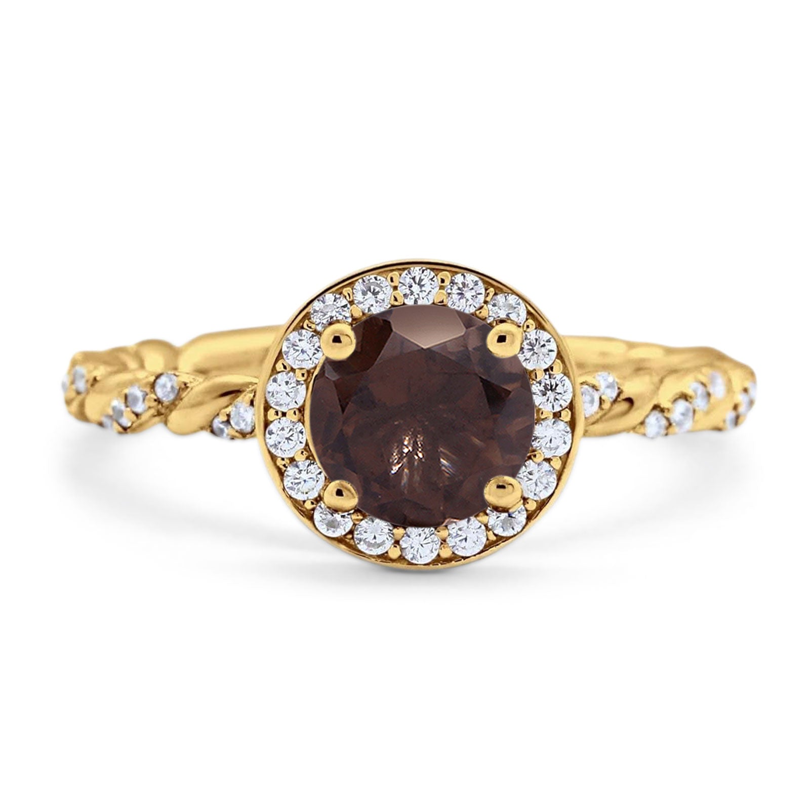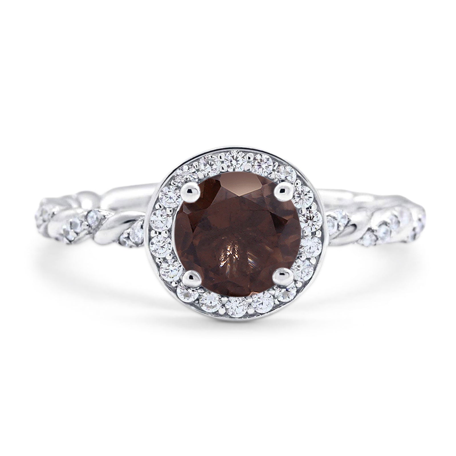 Art Deco Round Natural Chocolate Smoky Quartz Twisted Halo Ring 925 Sterling Silver