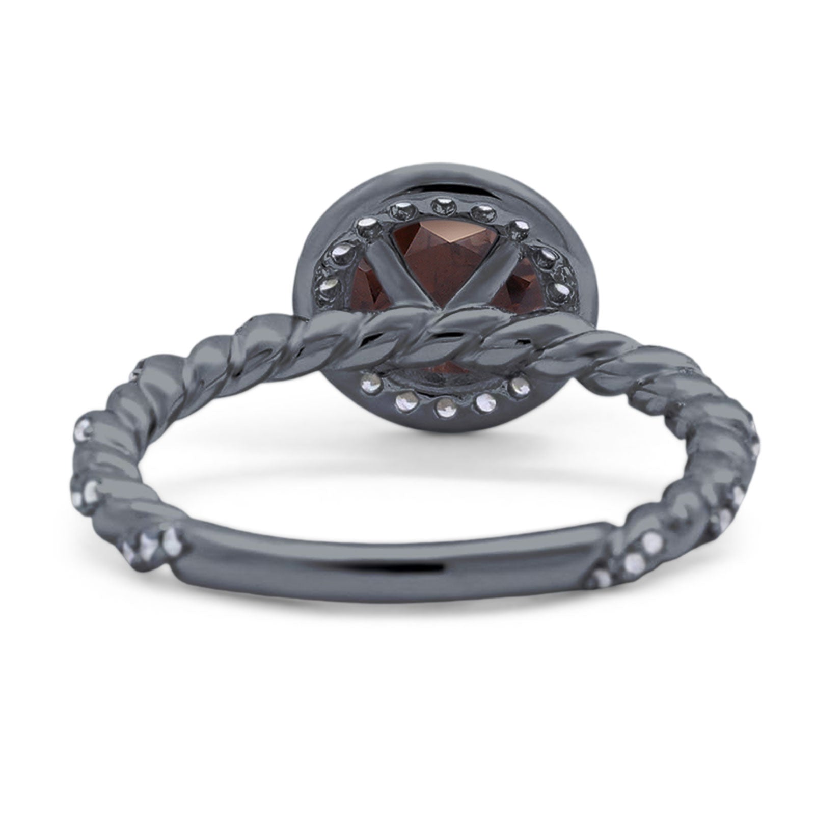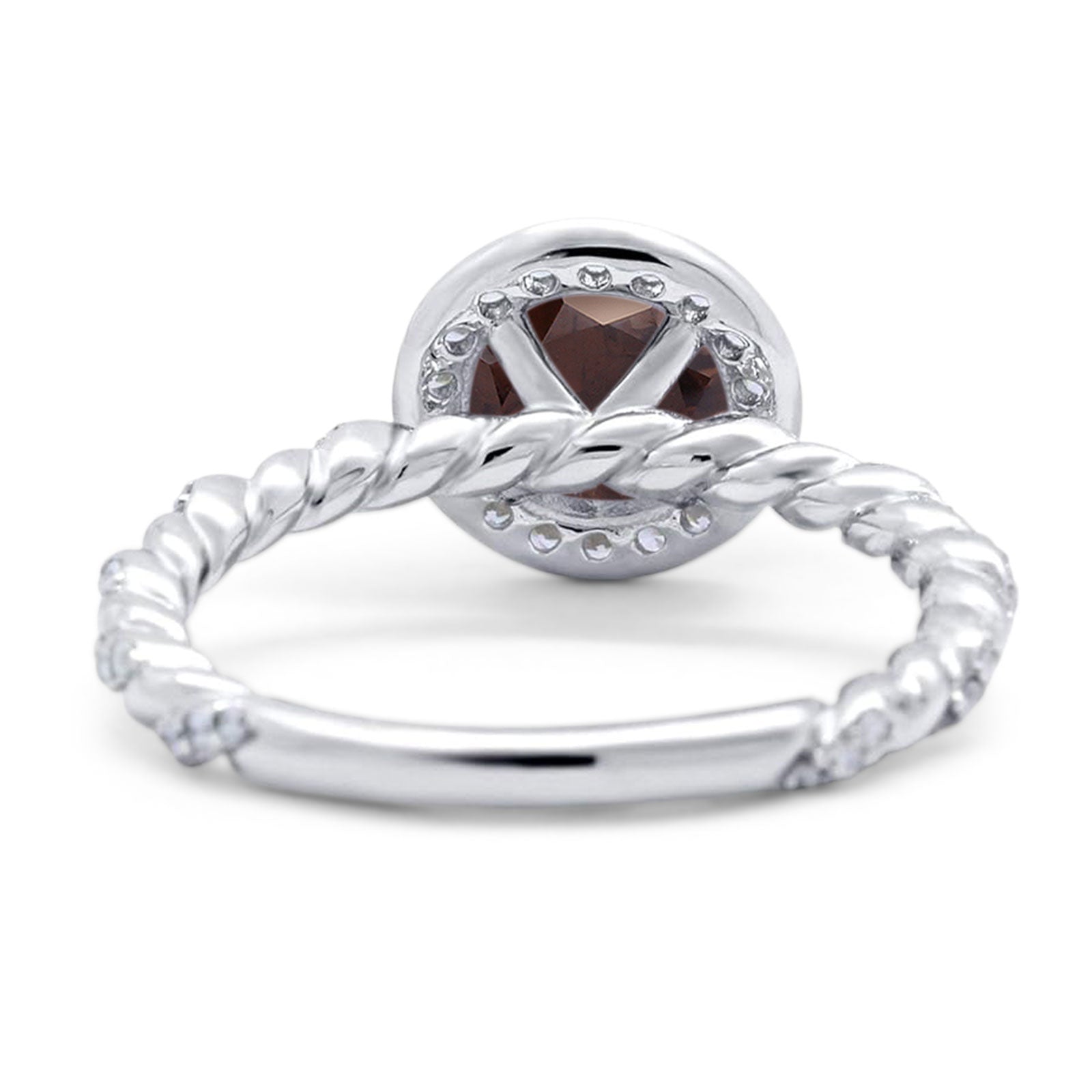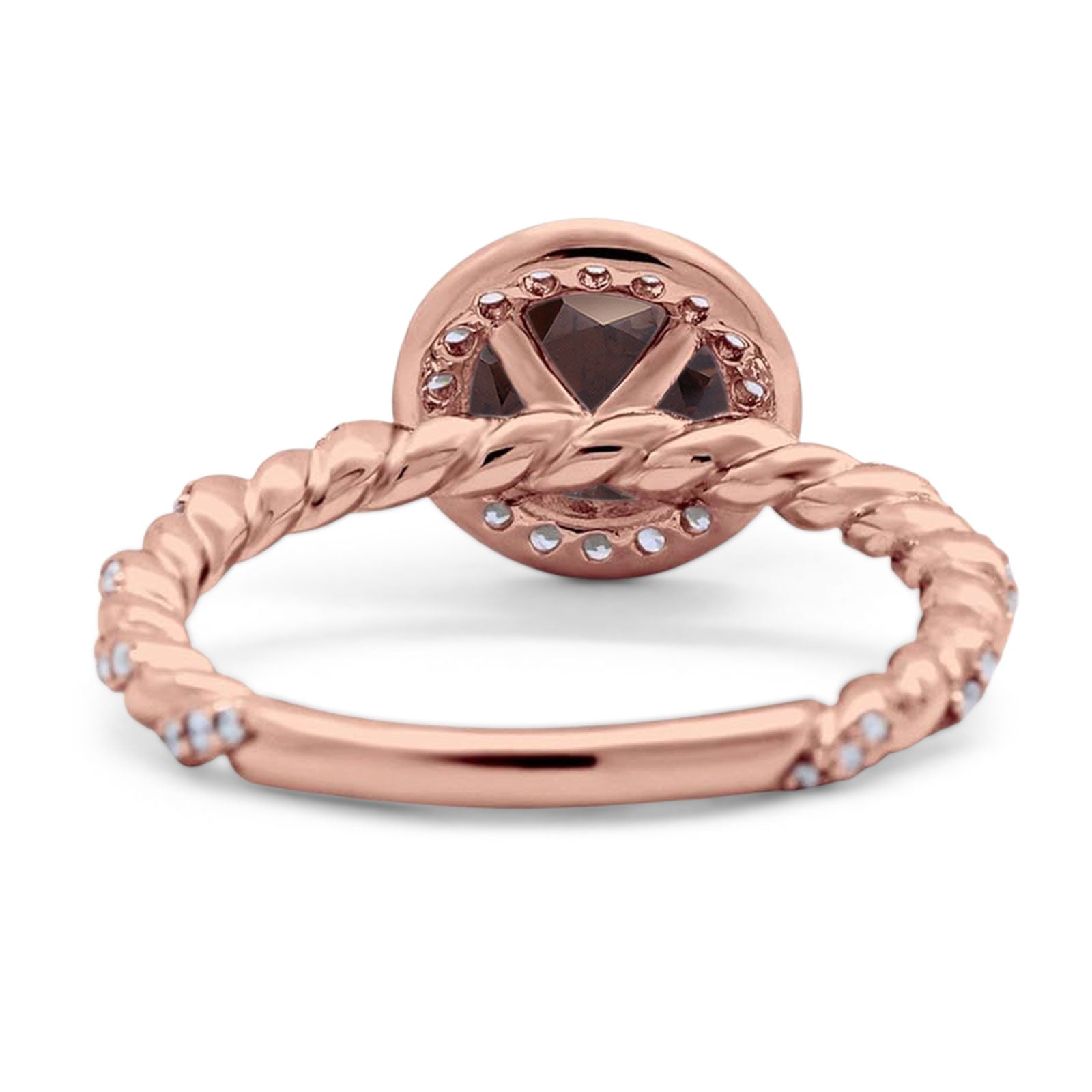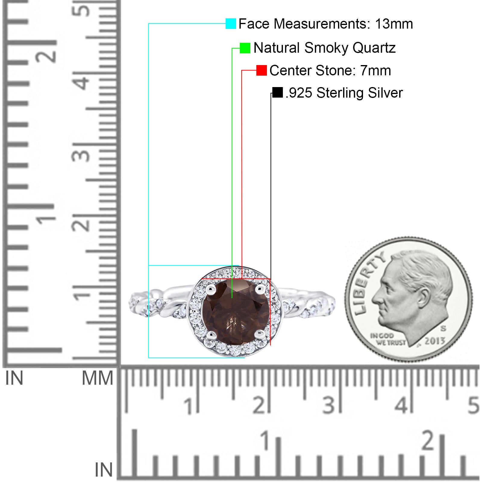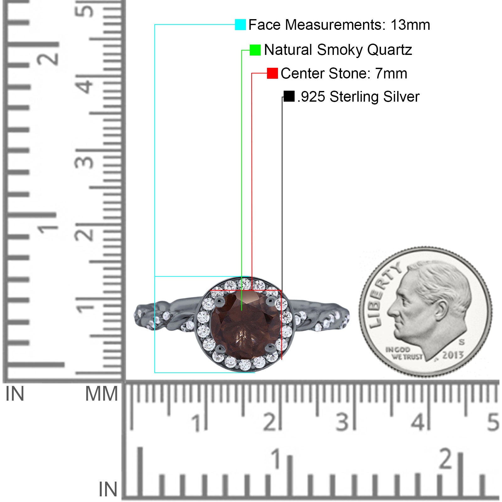 Art Deco Round Natural Chocolate Smoky Quartz Twisted Halo Ring 925 Sterling Silver