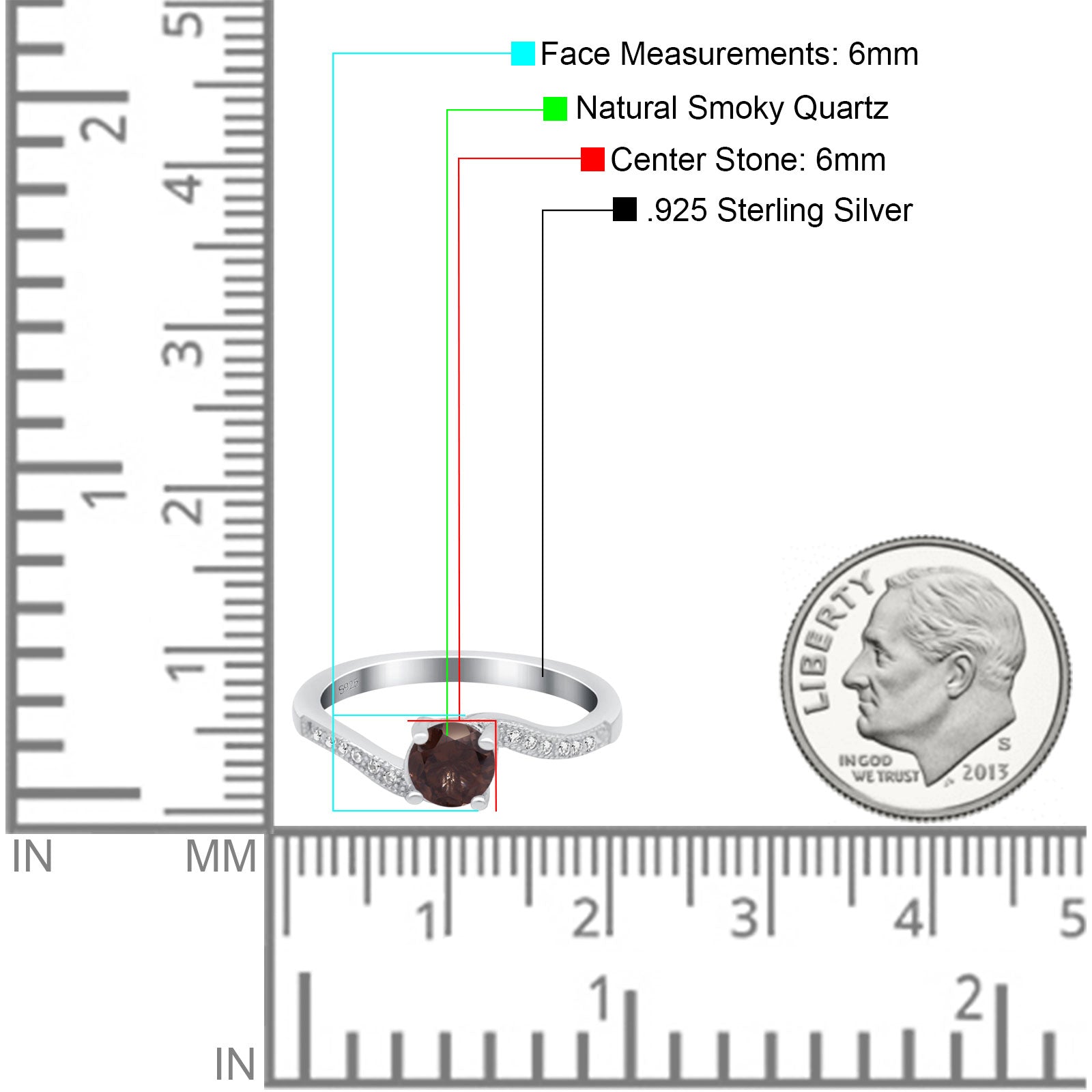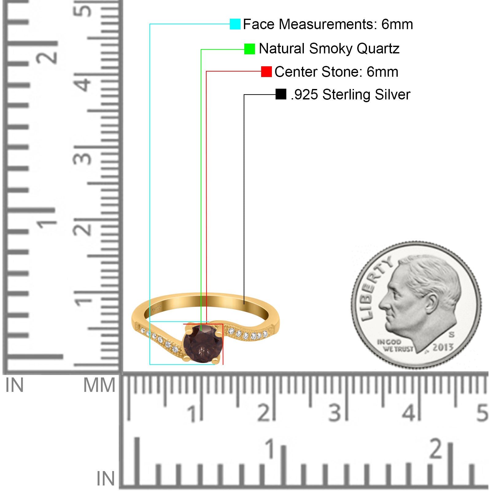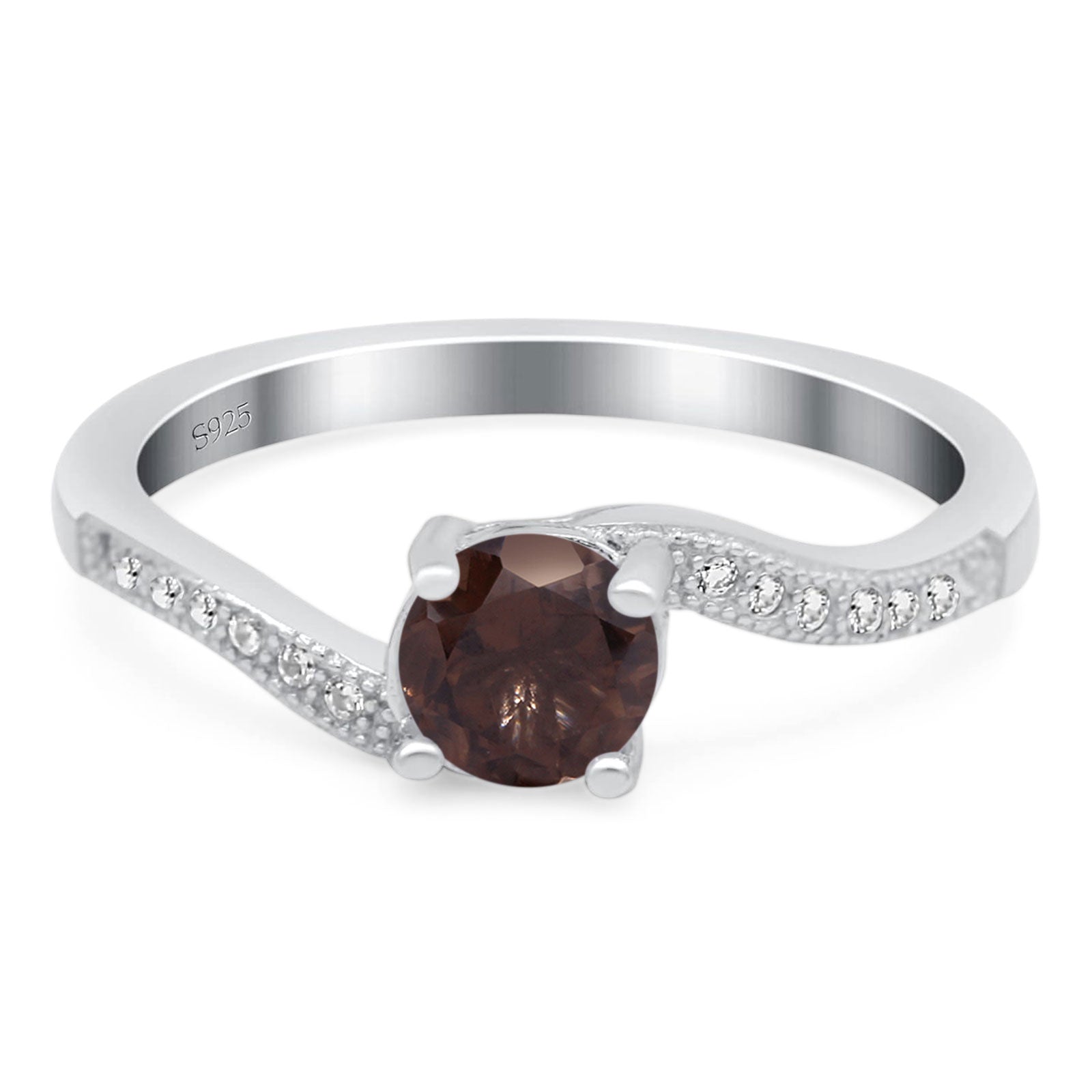 Art Deco Round Natural Chocolate Smoky Quartz Wedding Ring 925 Sterling Silver