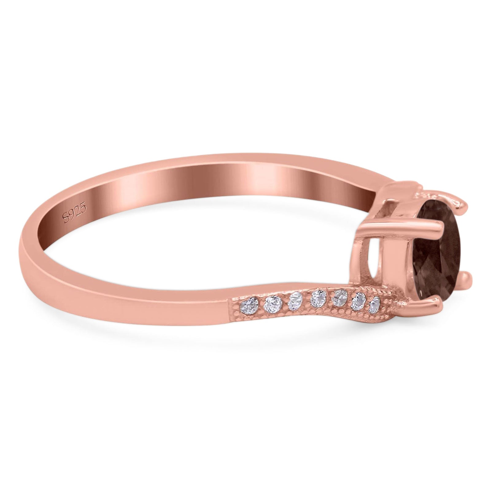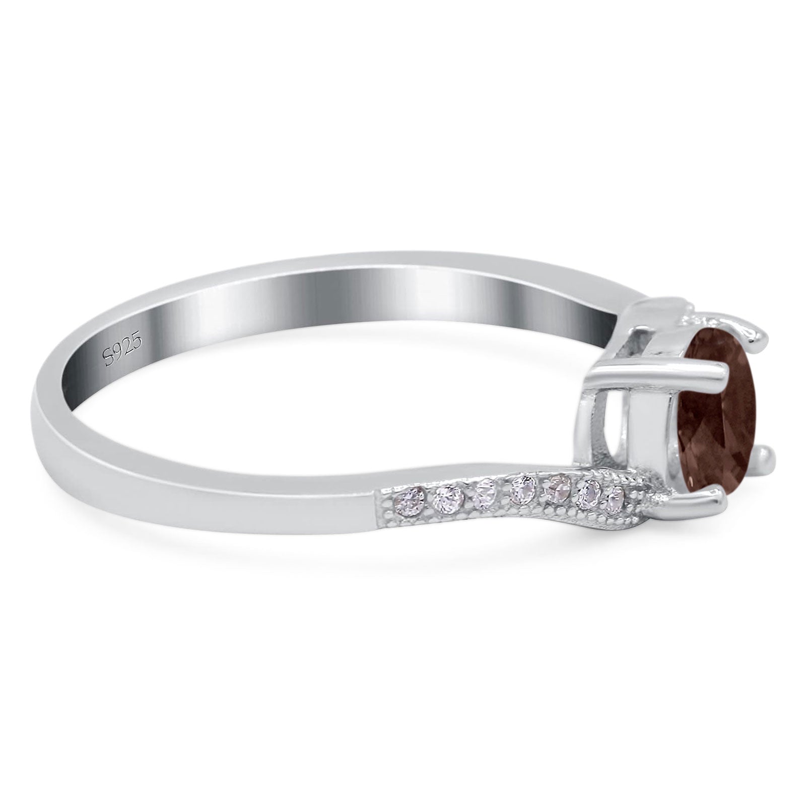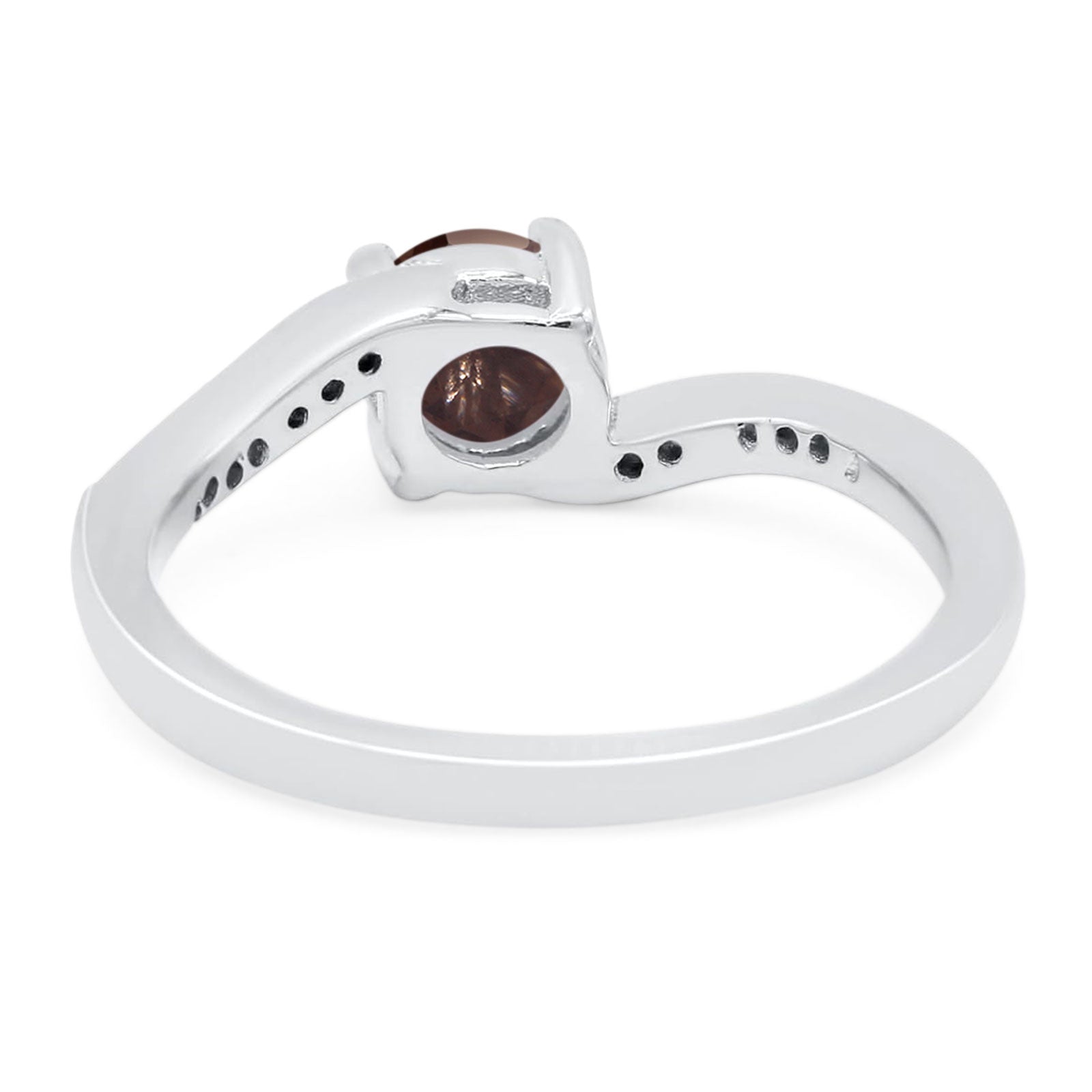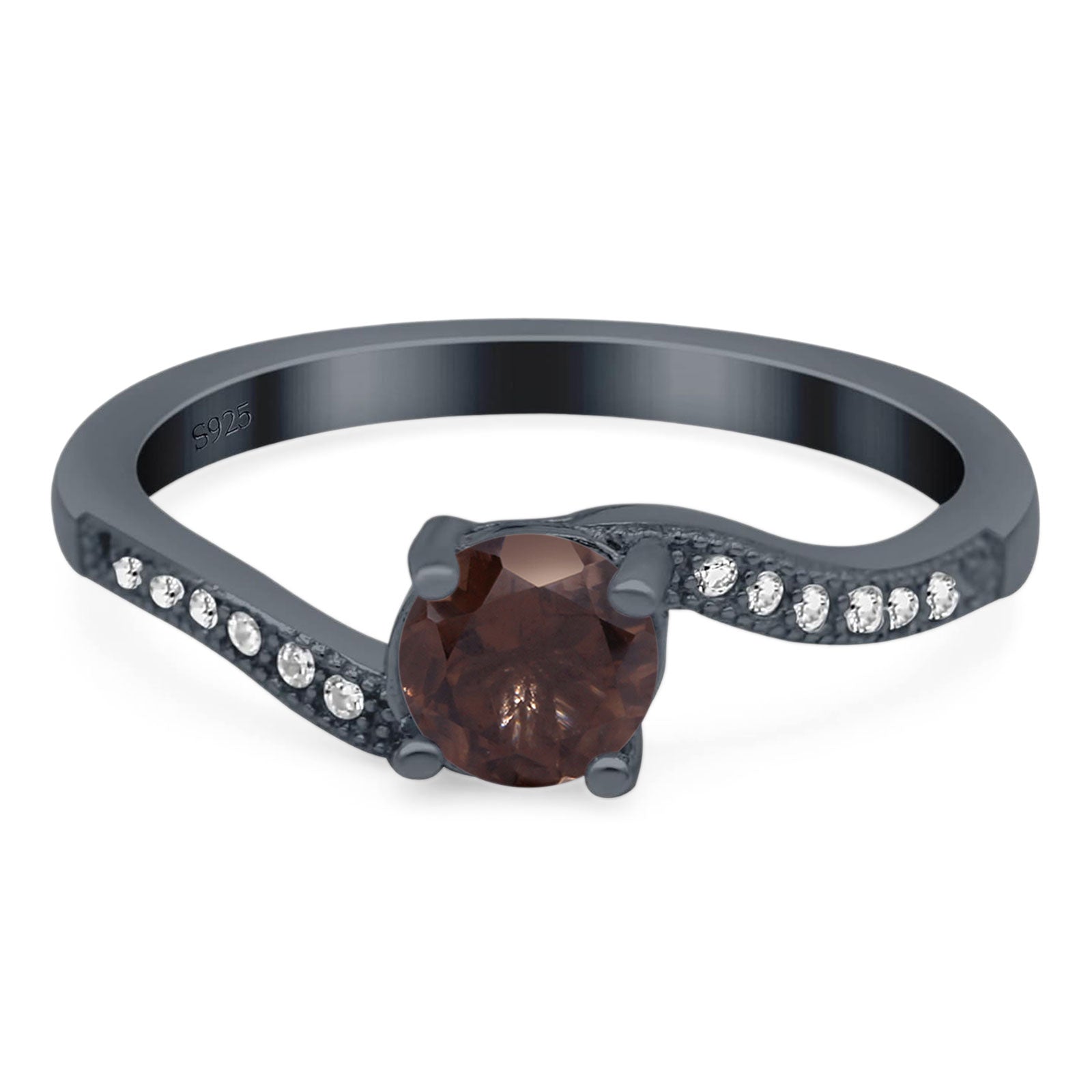 Art Deco Round Natural Chocolate Smoky Quartz Wedding Ring 925 Sterling Silver
