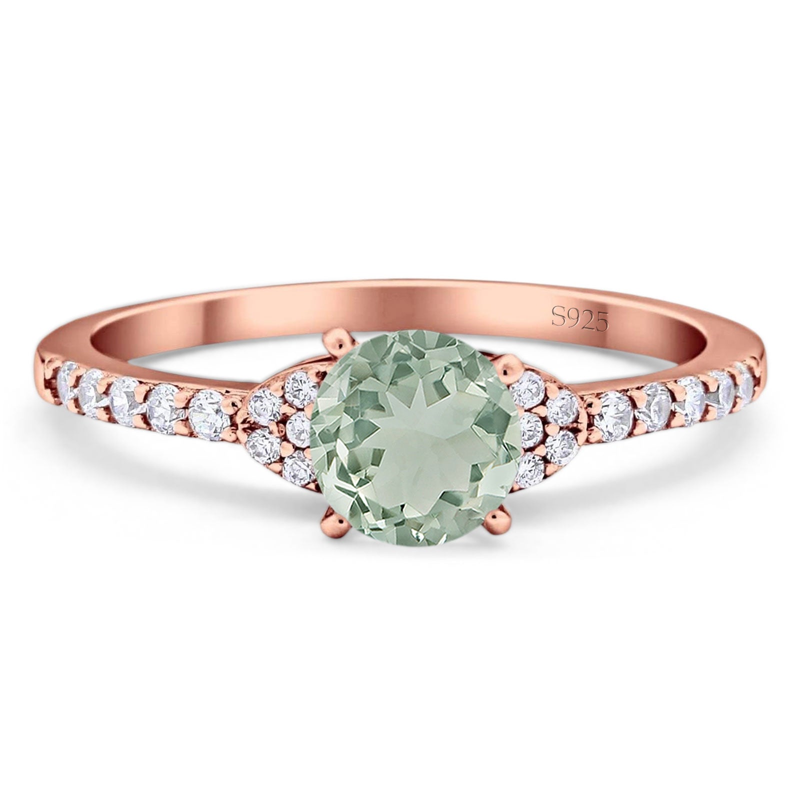Natural Green Amethyst Prasiolite Rose Tone Silver
