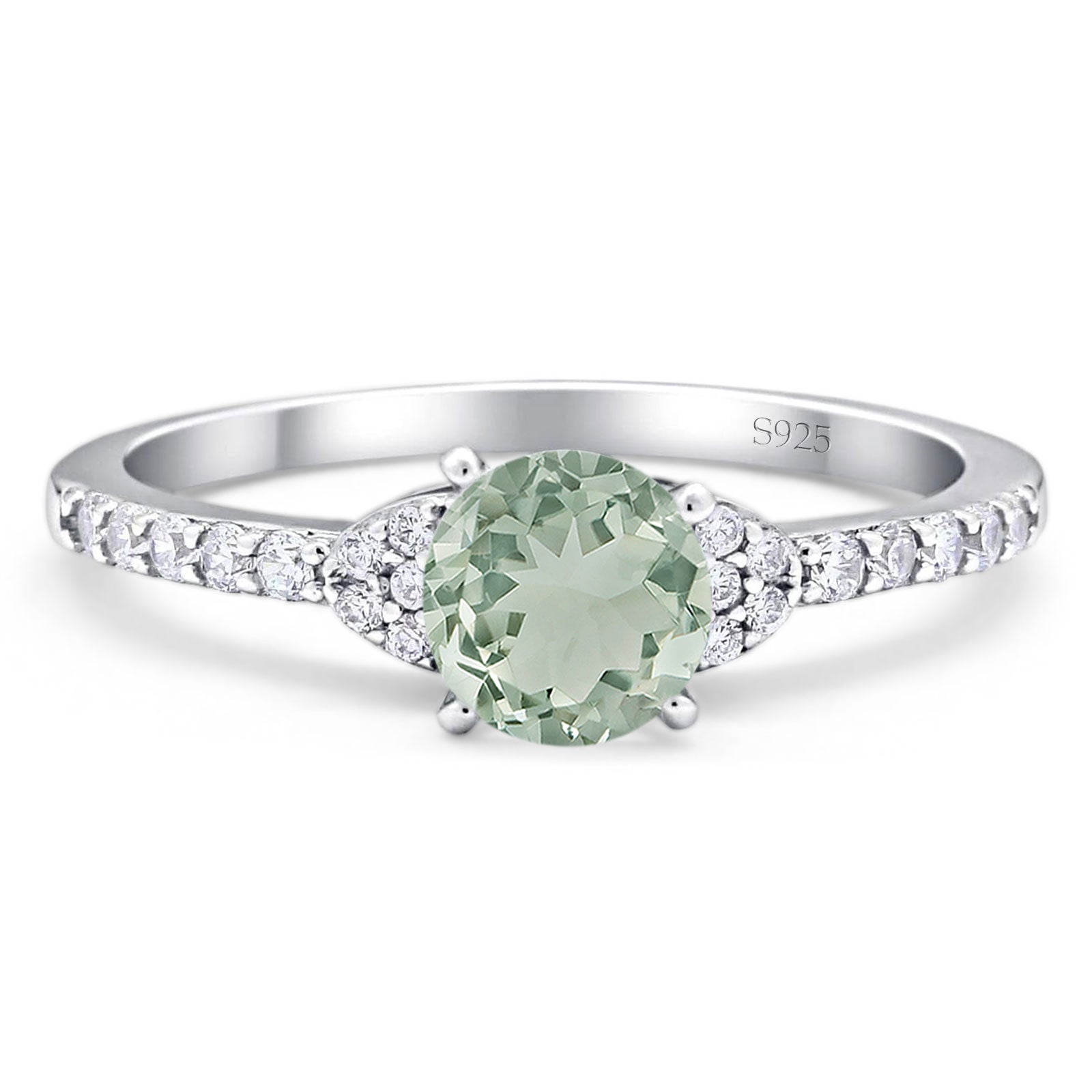 Art Deco Round Natural Green Amethyst Prasiolite Cluster Wedding Ring 925 Sterling Silver
