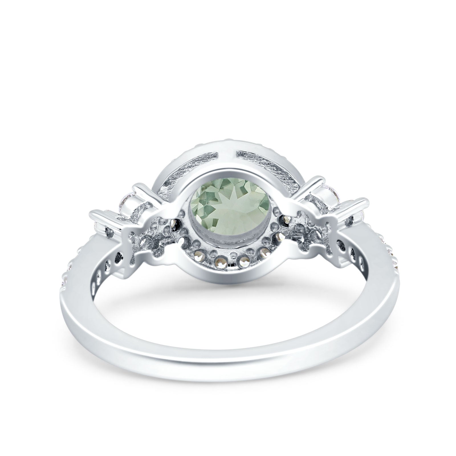 Art Deco Round Natural Green Amethyst Prasiolite Floral Ring 925 Sterling Silver