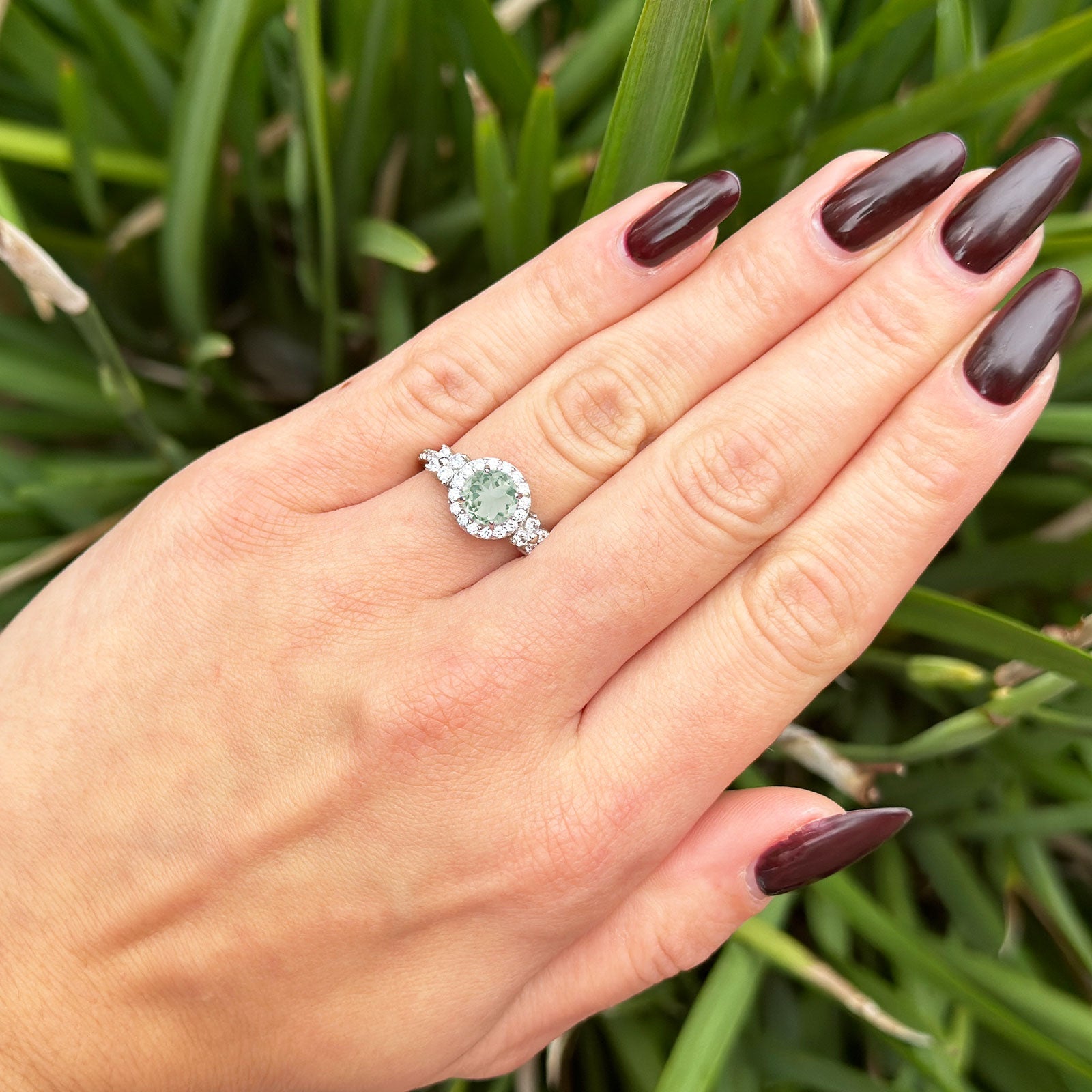 Natural Green Amethyst Prasiolite Engagement Ring