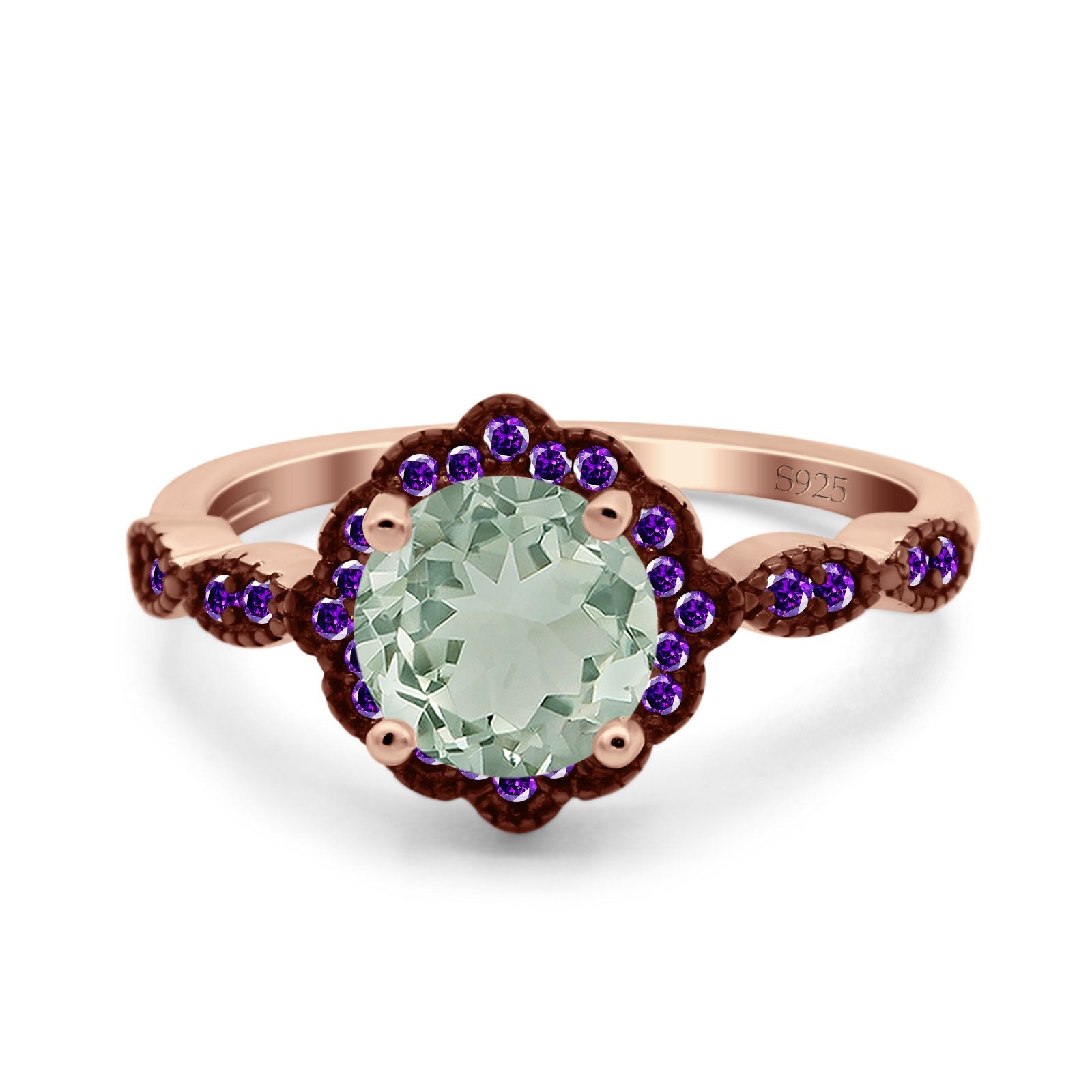 Natural Green Amethyst Prasiolite Rose Tone Silver