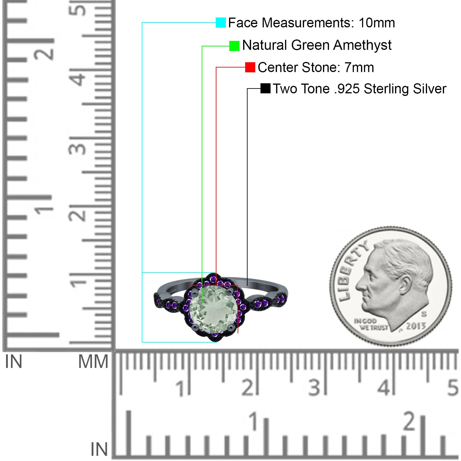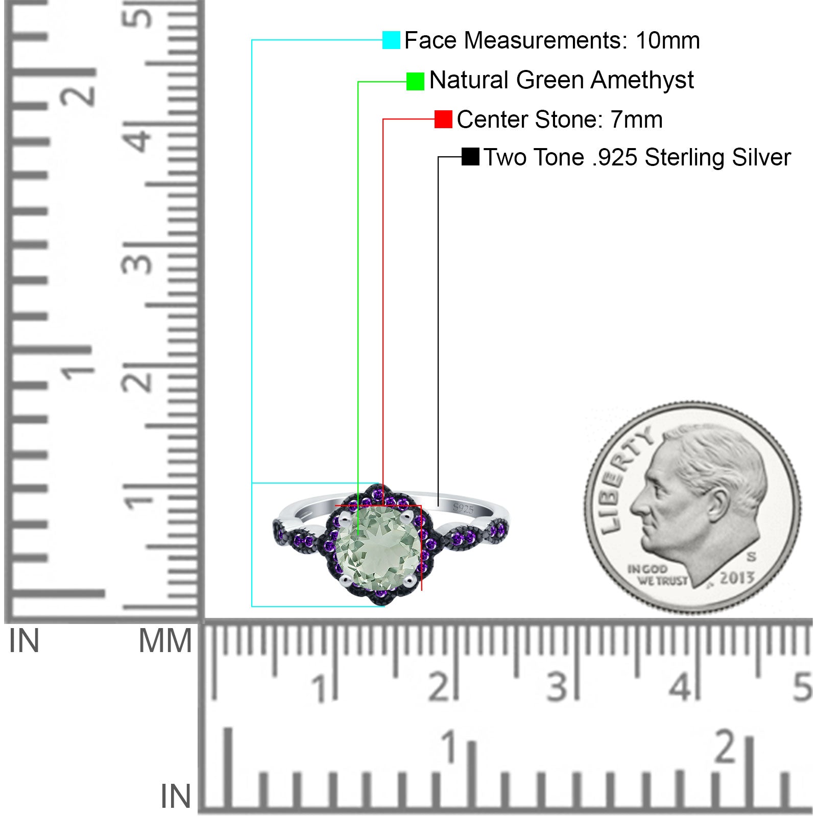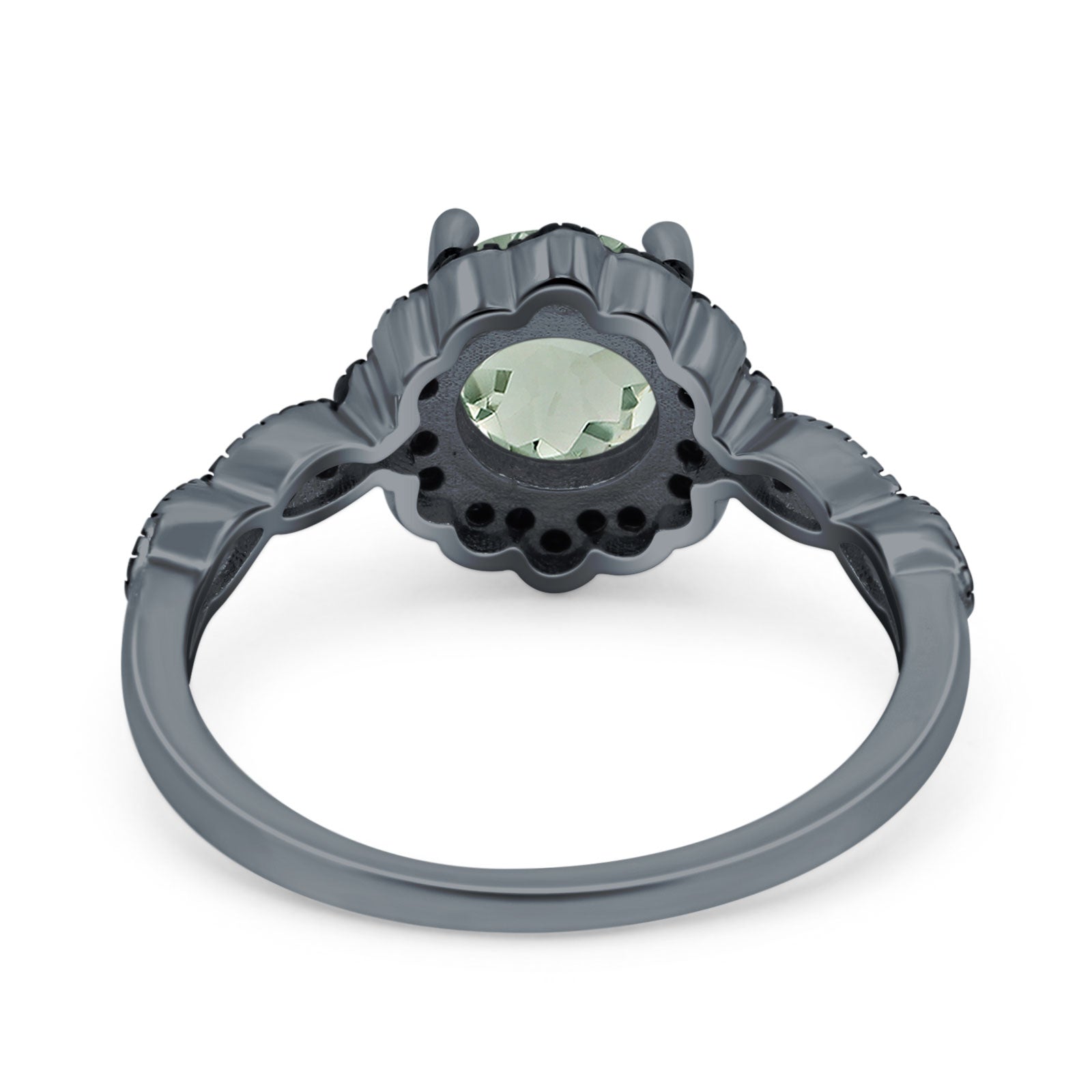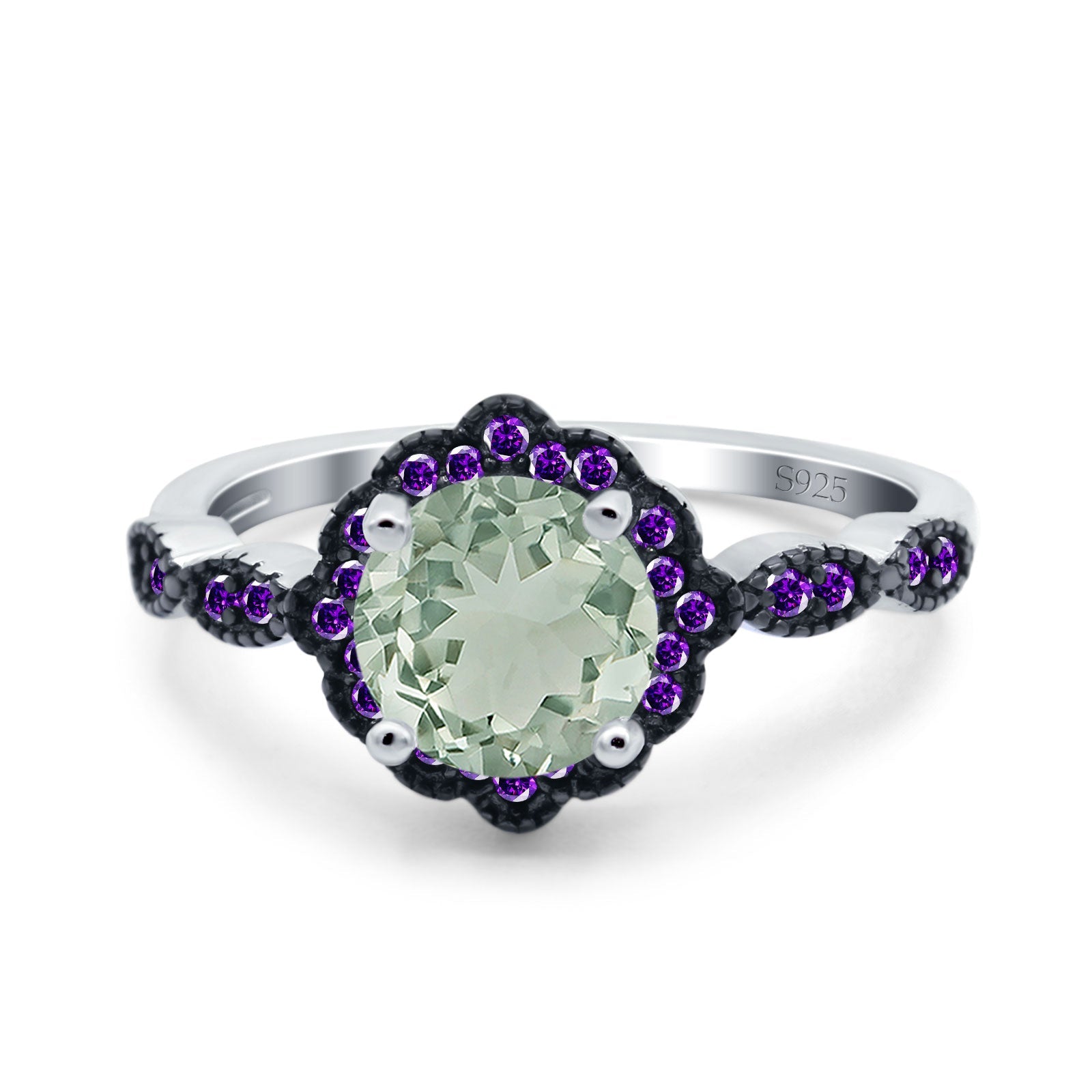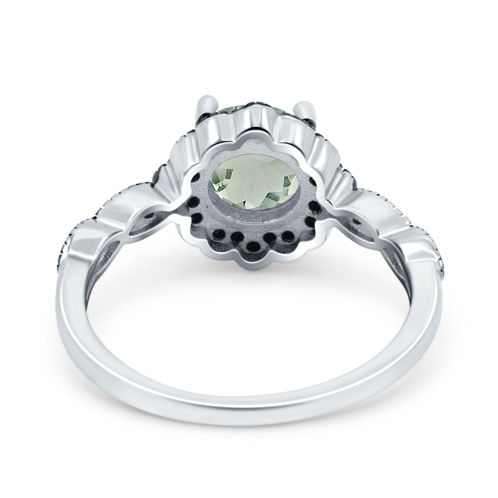 Art Deco Round Natural Green Amethyst Prasiolite Flower Ring 925 Sterling Silver