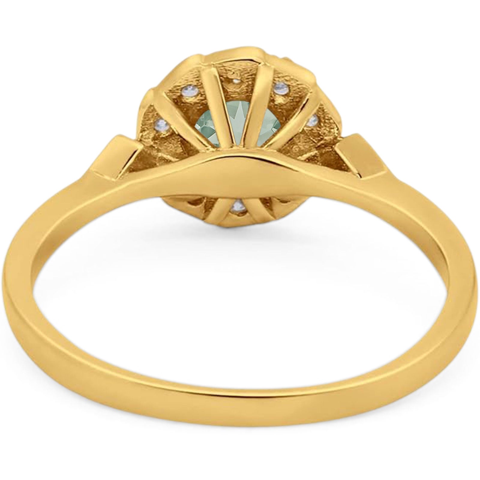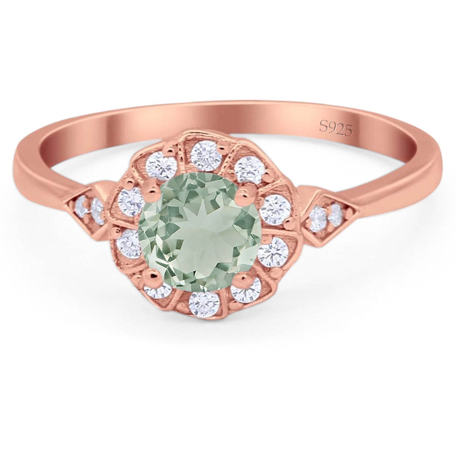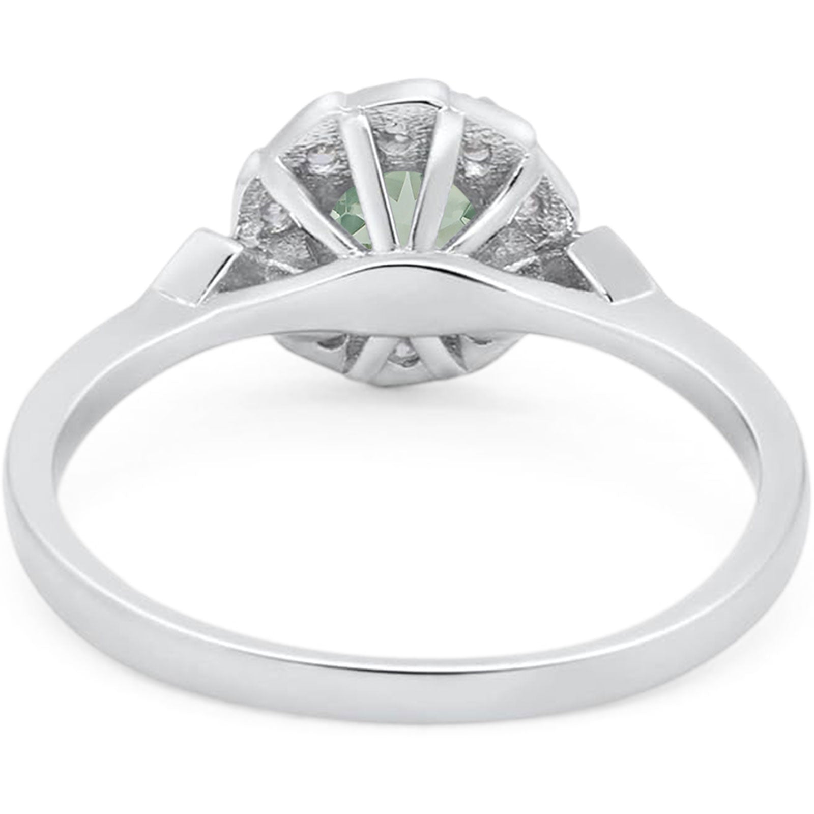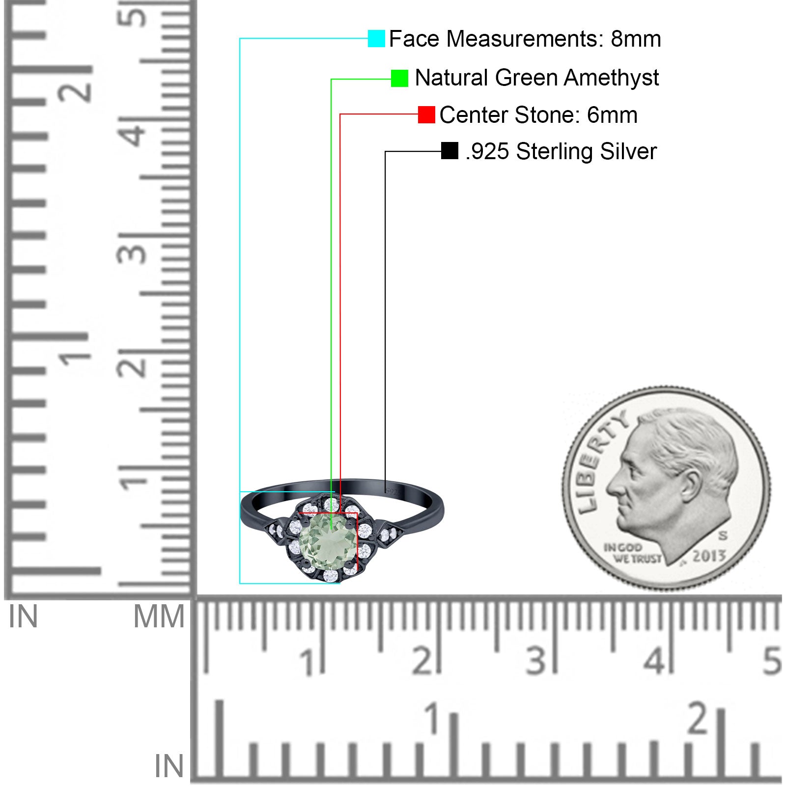 Art Deco Round Natural Green Amethyst Prasiolite Flower Ring 925 Sterling Silver