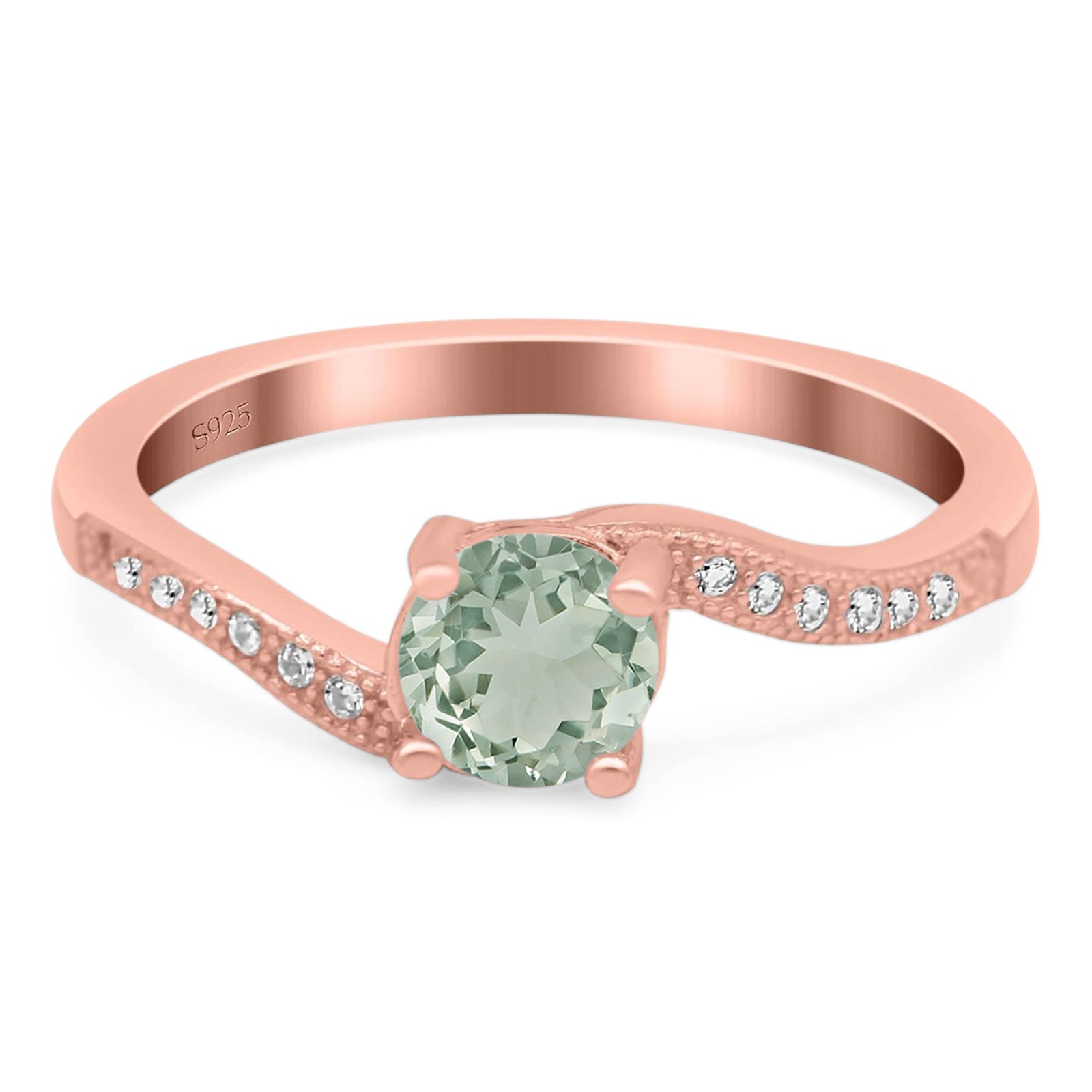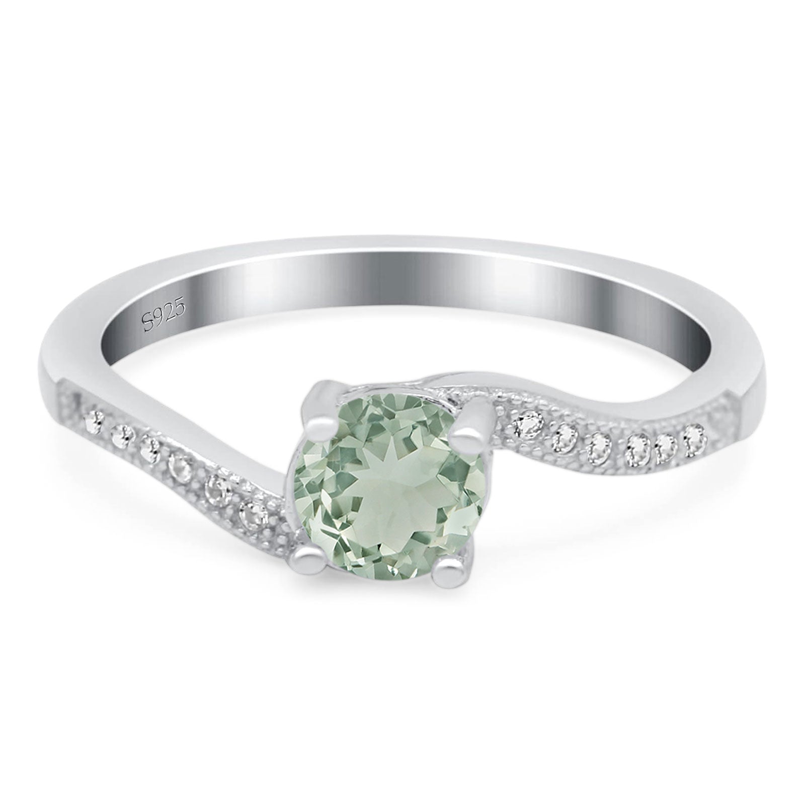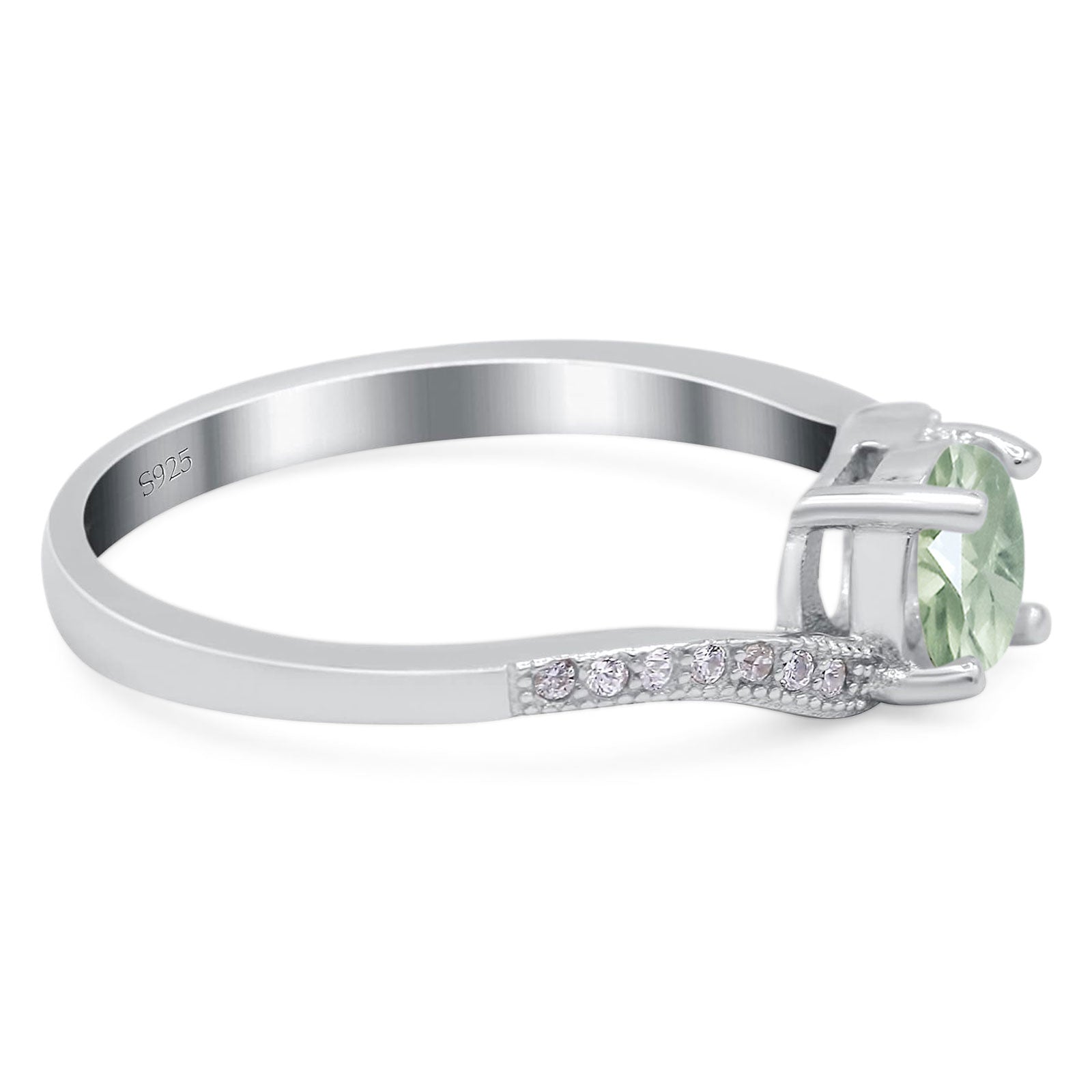 Art Deco Round Natural Green Amethyst Prasiolite Wedding Ring 925 Sterling Silver