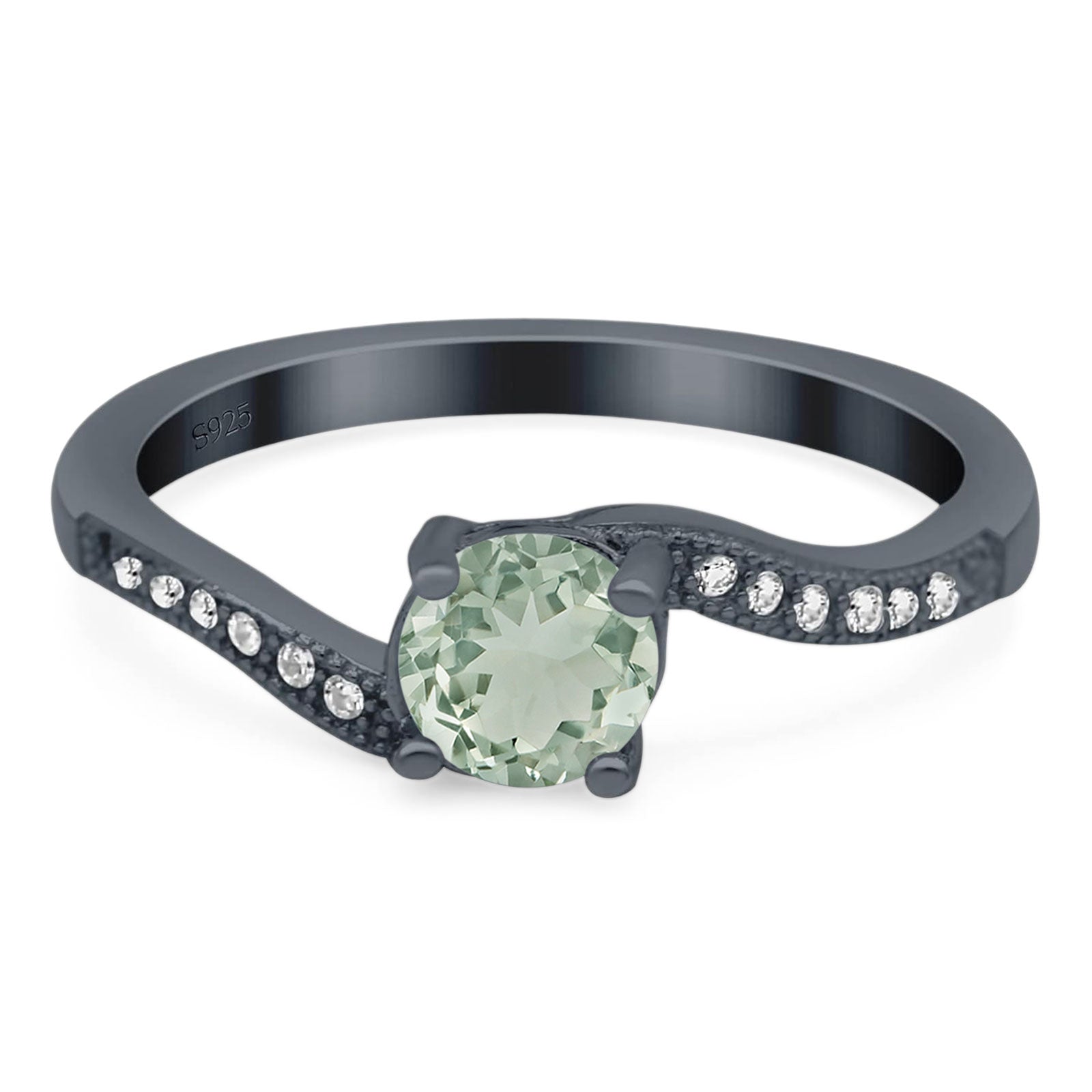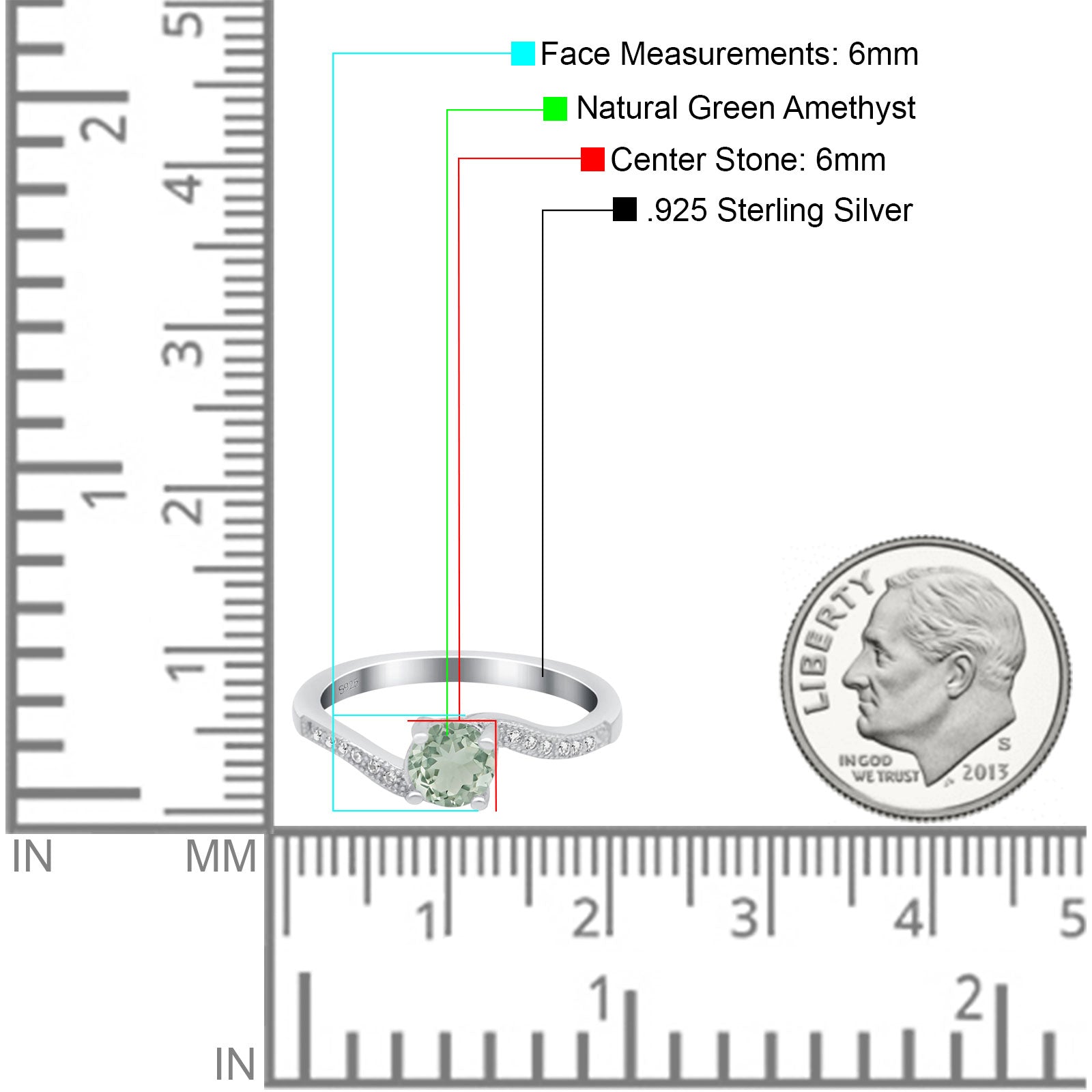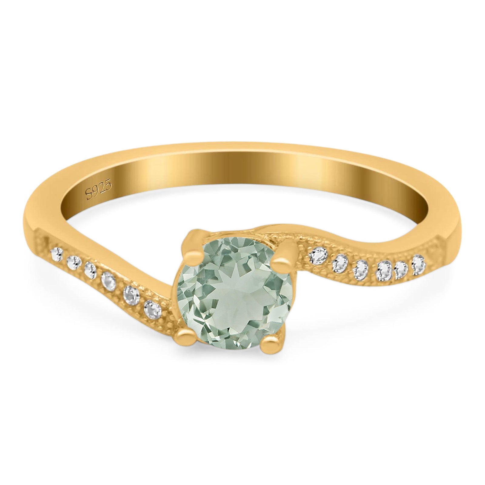 Art Deco Round Natural Green Amethyst Prasiolite Wedding Ring 925 Sterling Silver