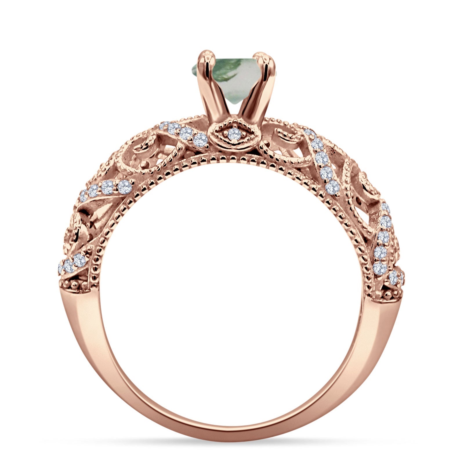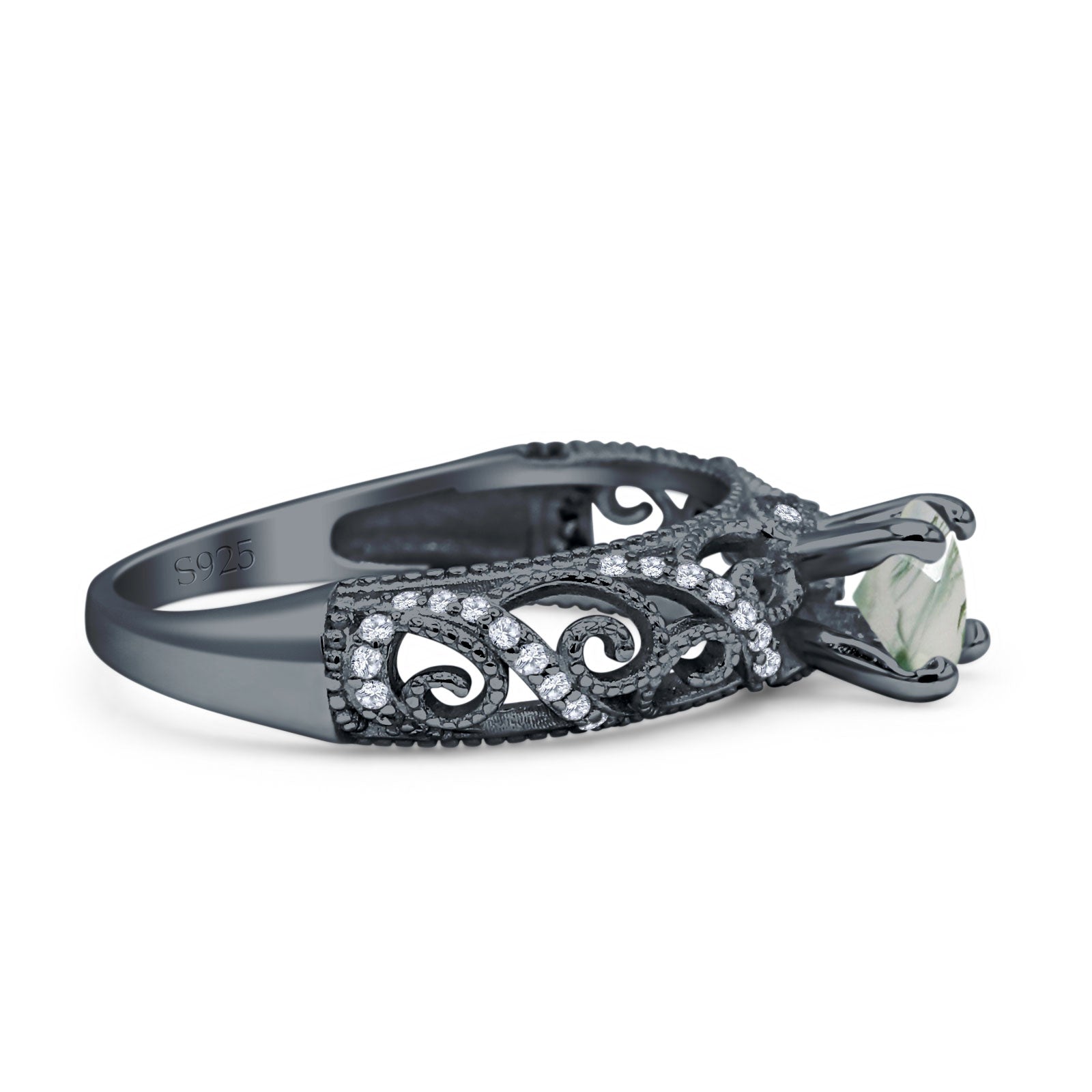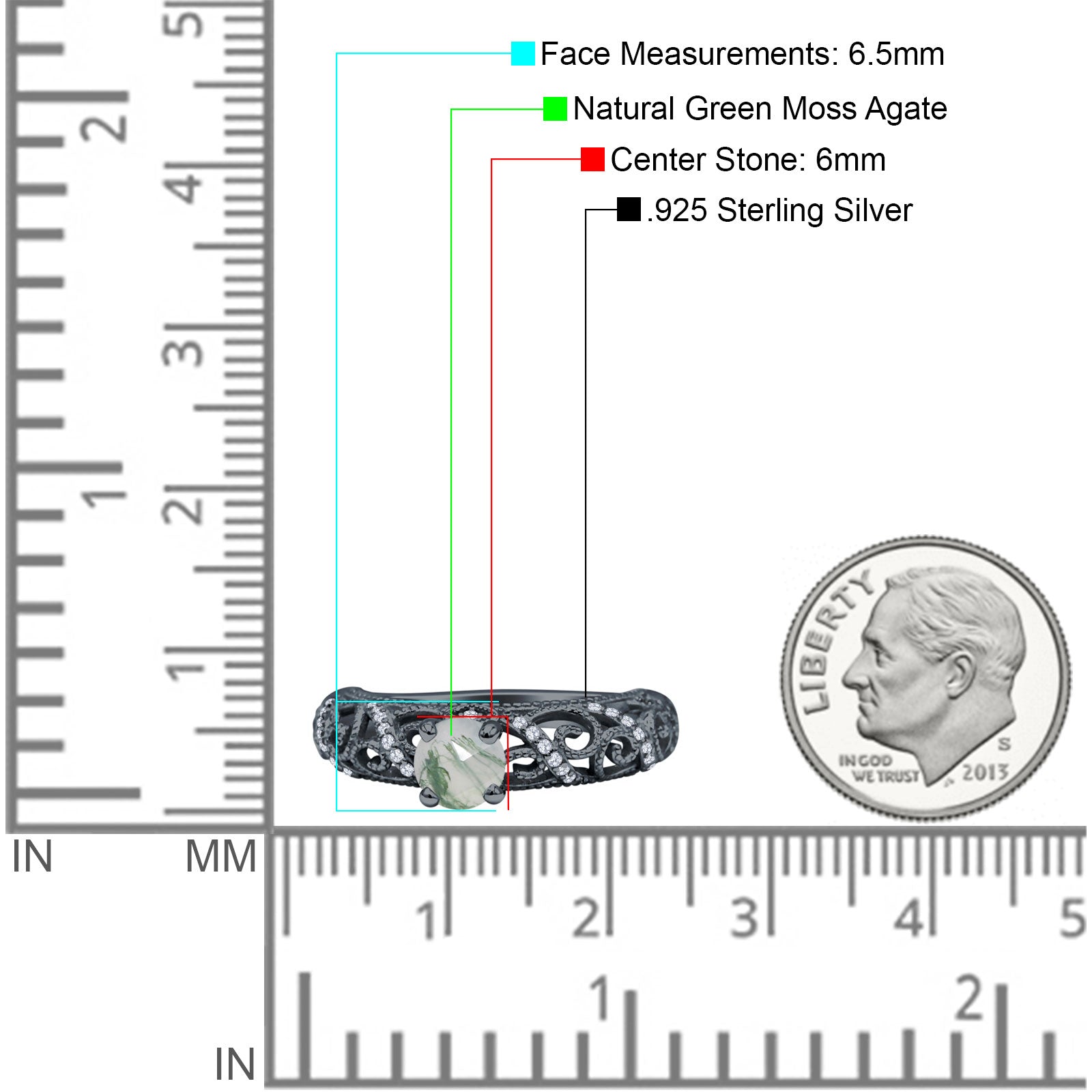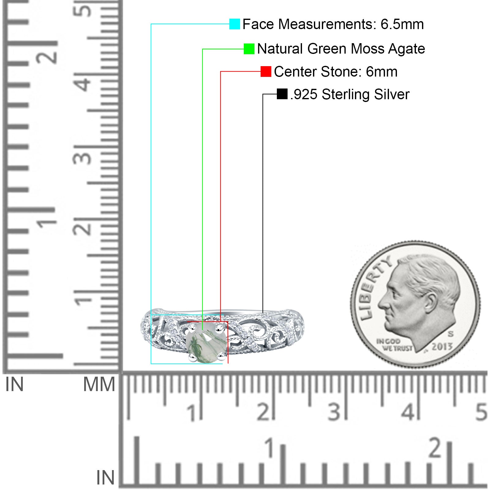 Art Deco Round Natural Green Moss Agate Filigree Ring 925 Sterling Silver