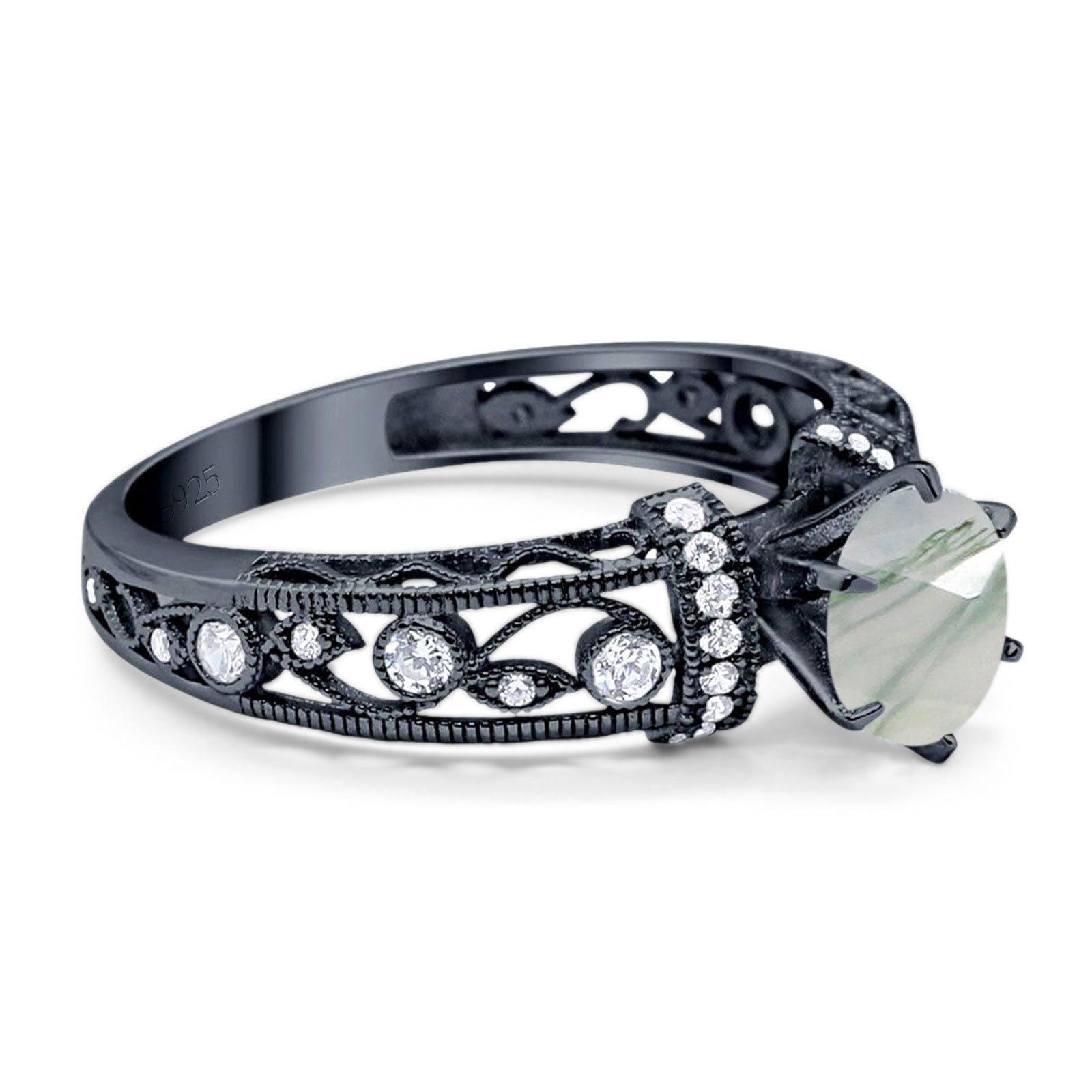Art Deco Round Natural Green Moss Agate Filigree Ring 925 Sterling Silver