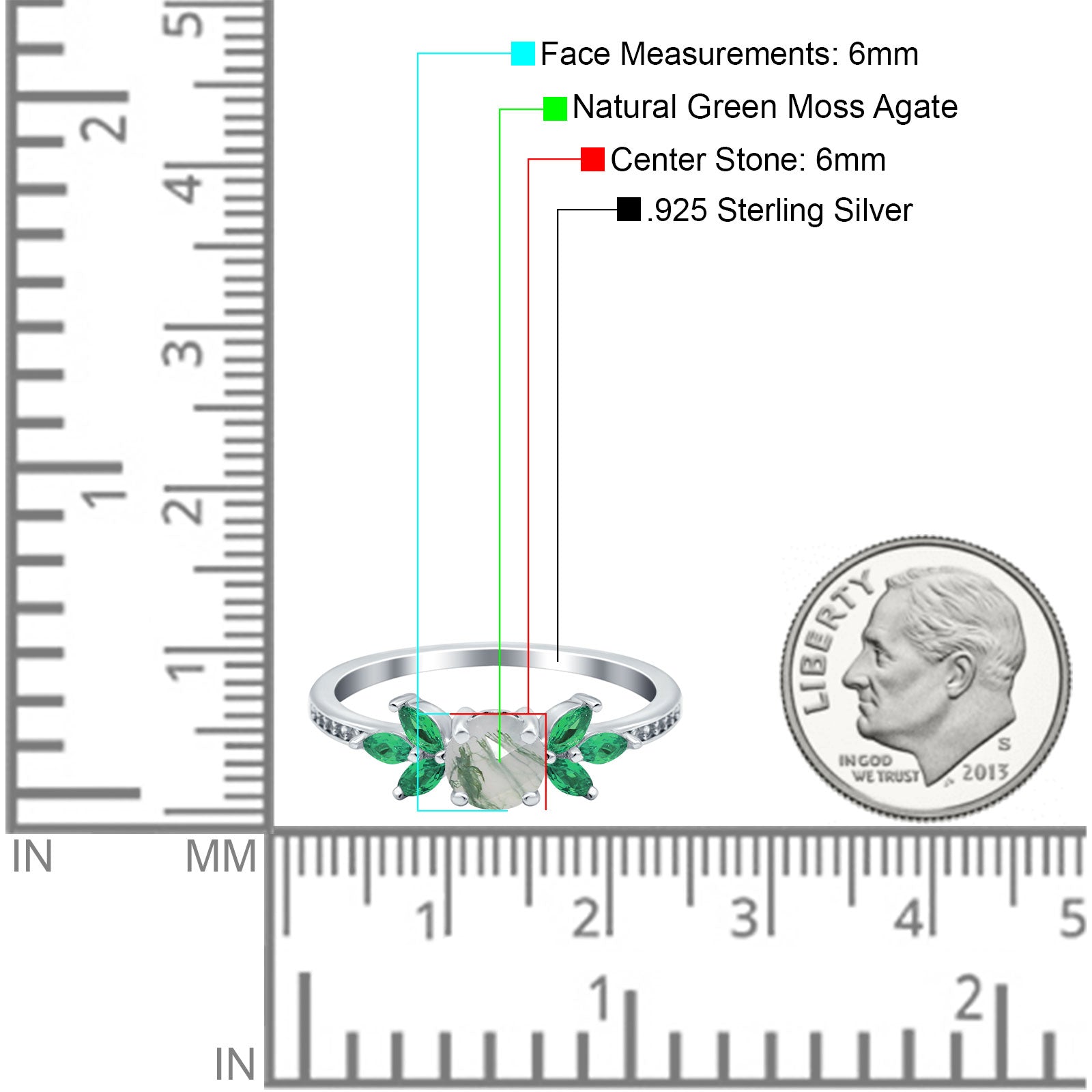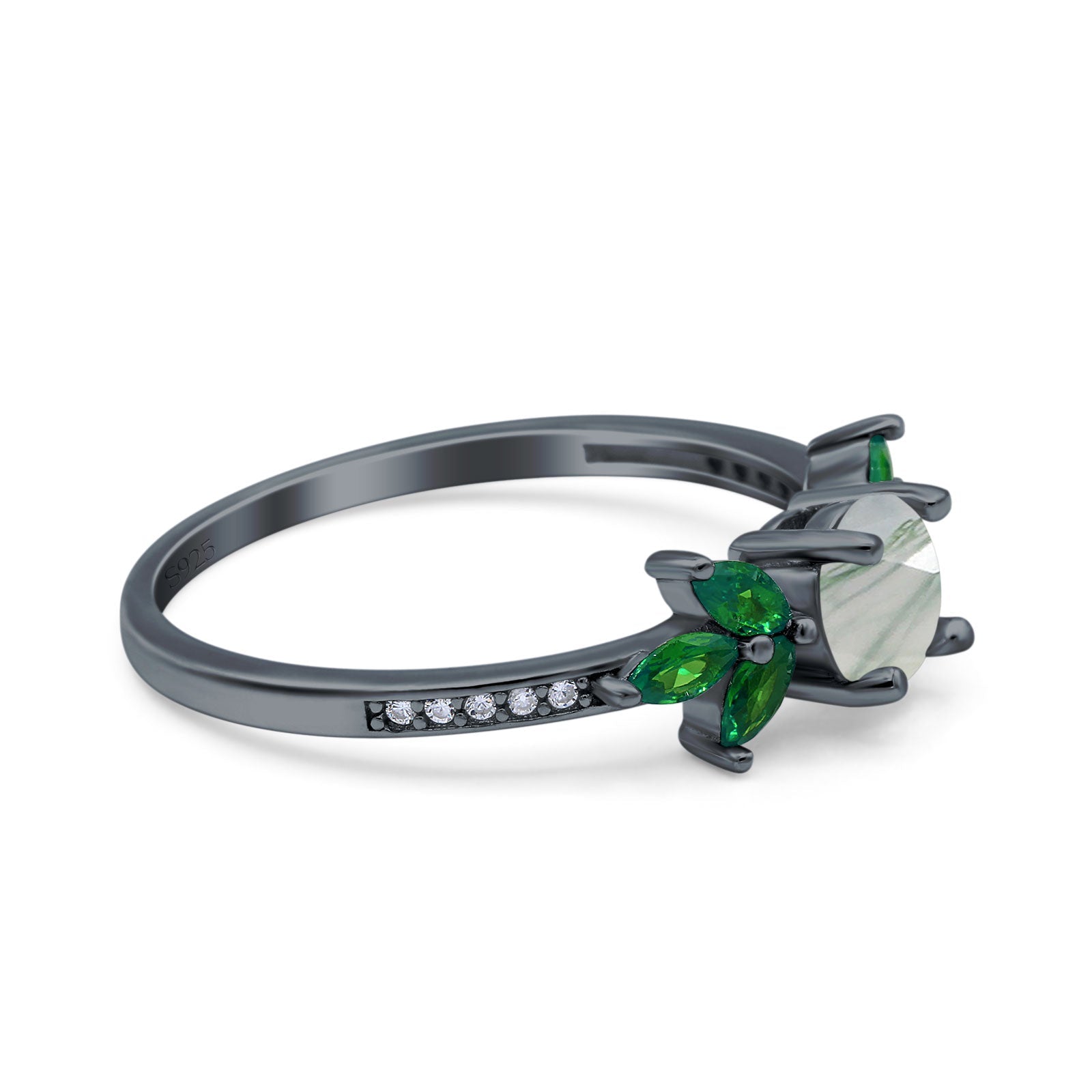 Side Stone: Green Emerald (CZ).
