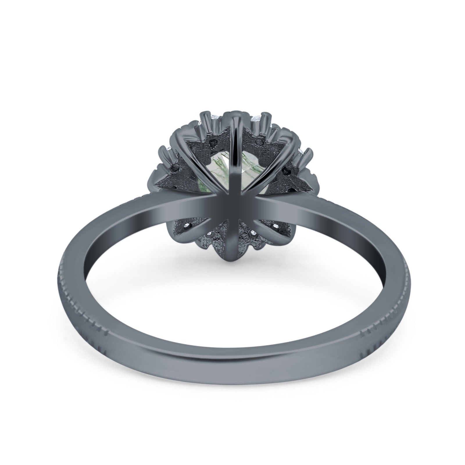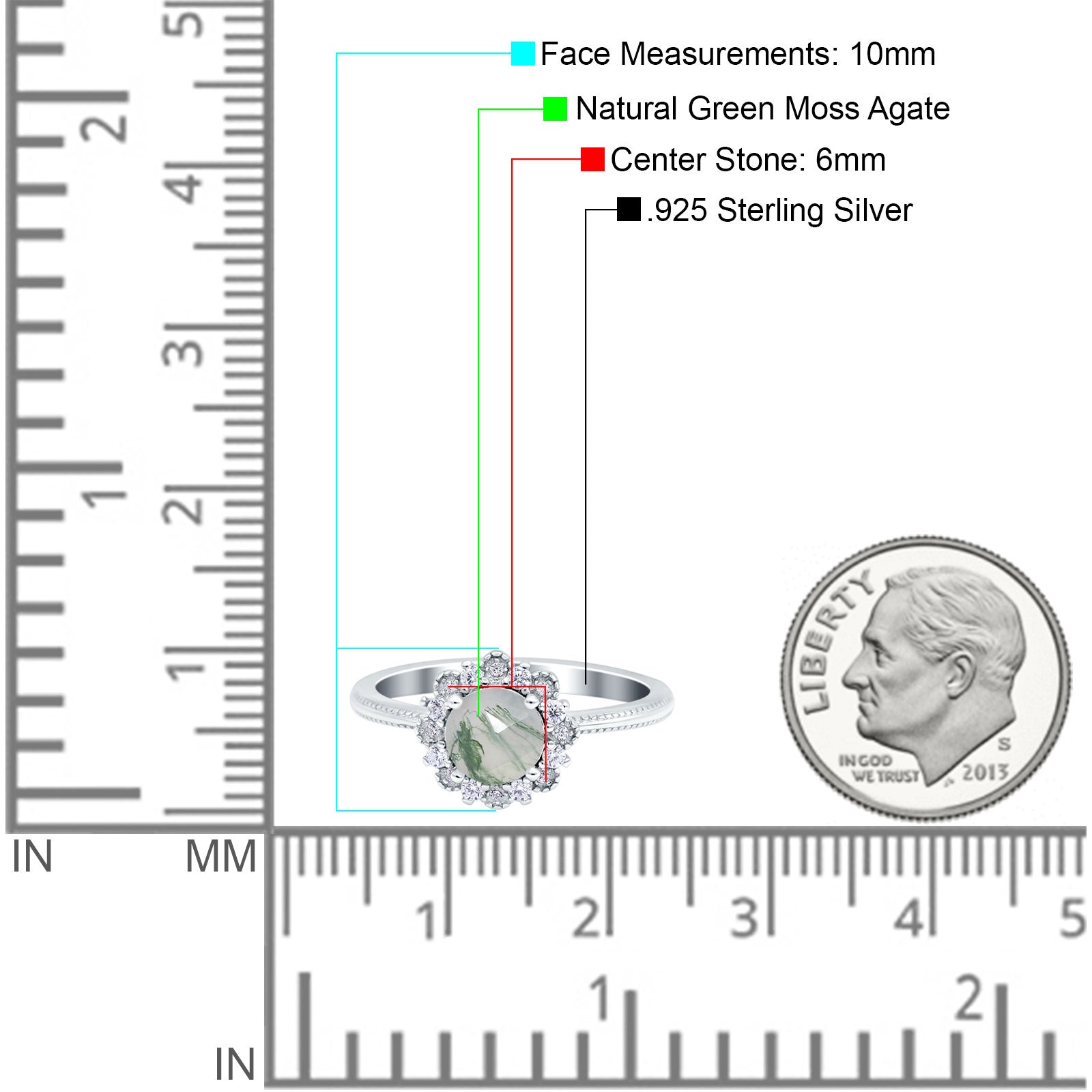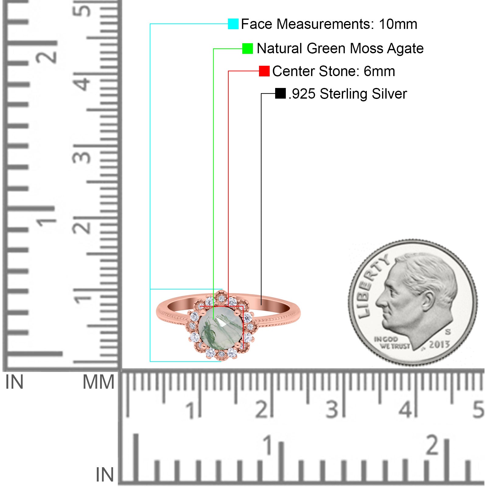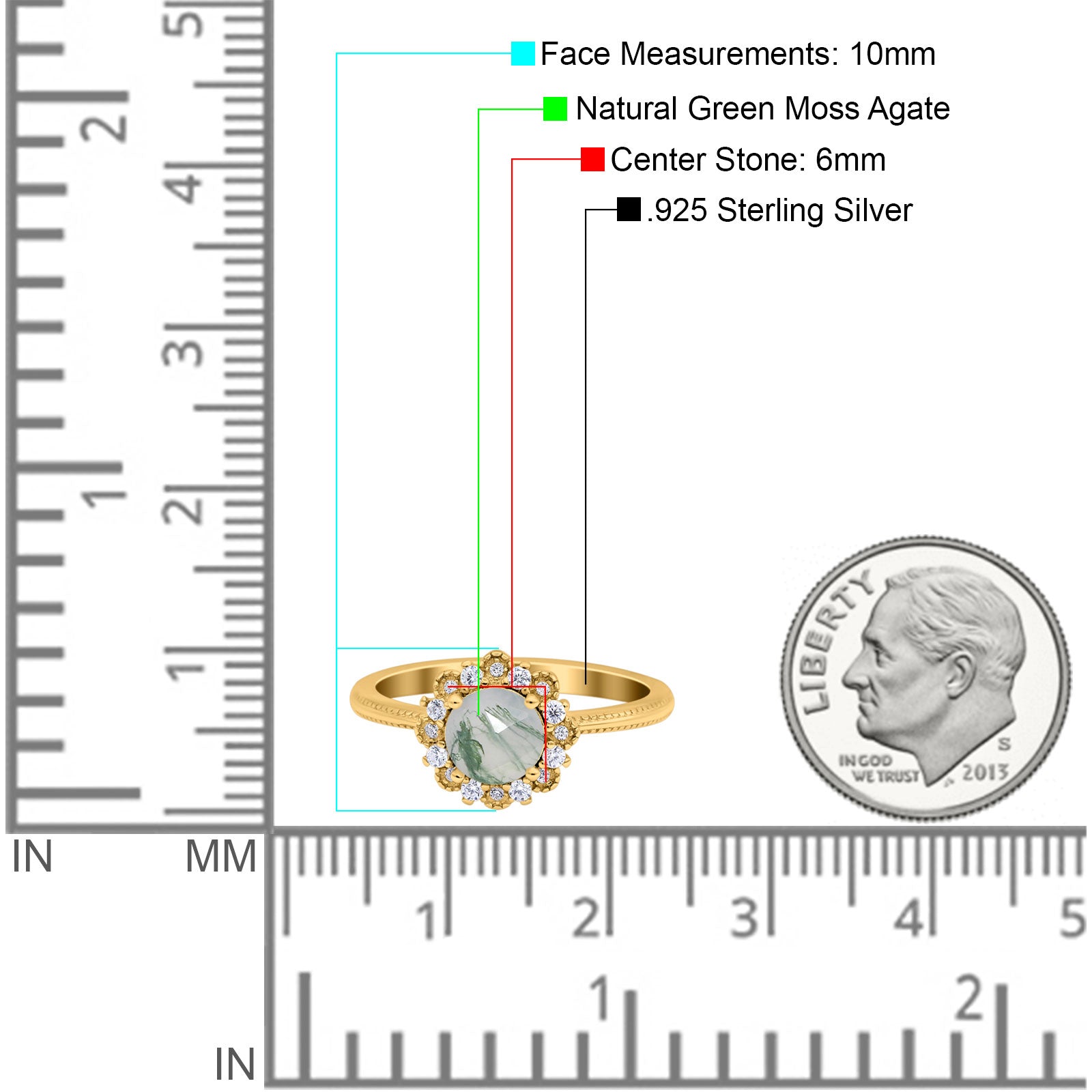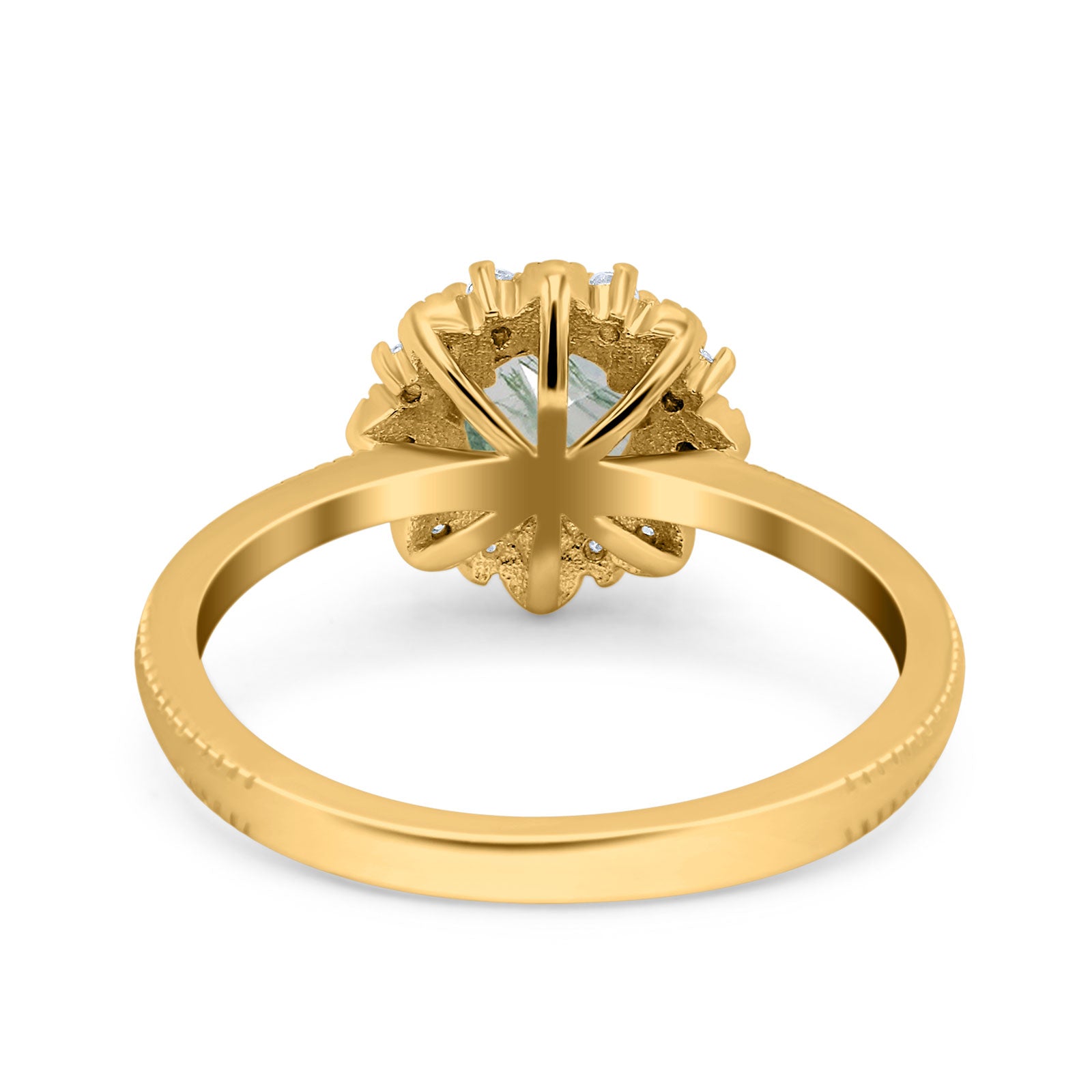 Art Deco Round Natural Green Moss Agate Floral Ring 925 Sterling Silver