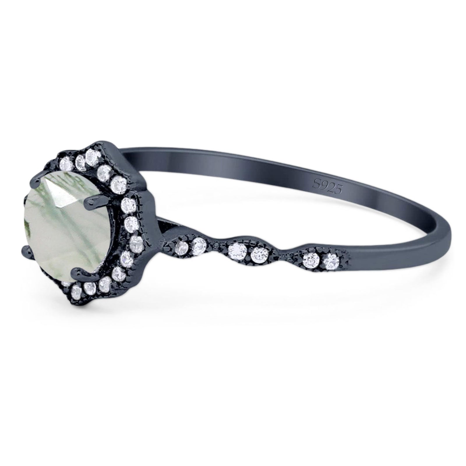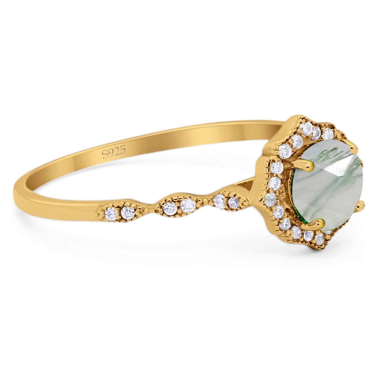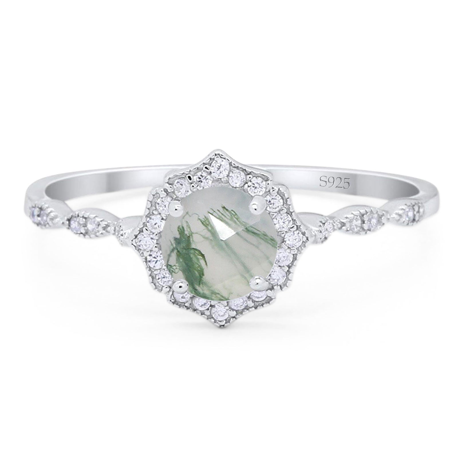 Art Deco Round Natural Green Moss Agate Floral Vintage Style Ring 925 Sterling Silver