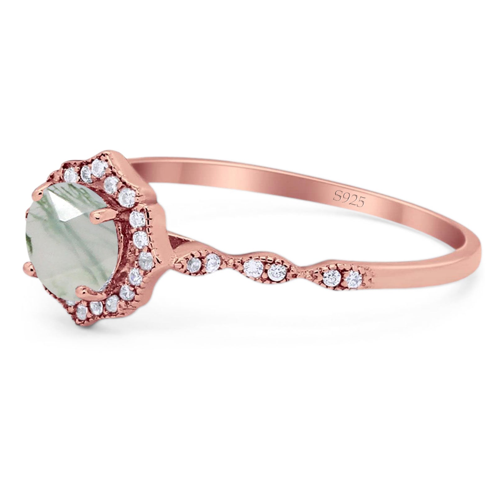 Natural Green Moss Agate Rose Tone Silver