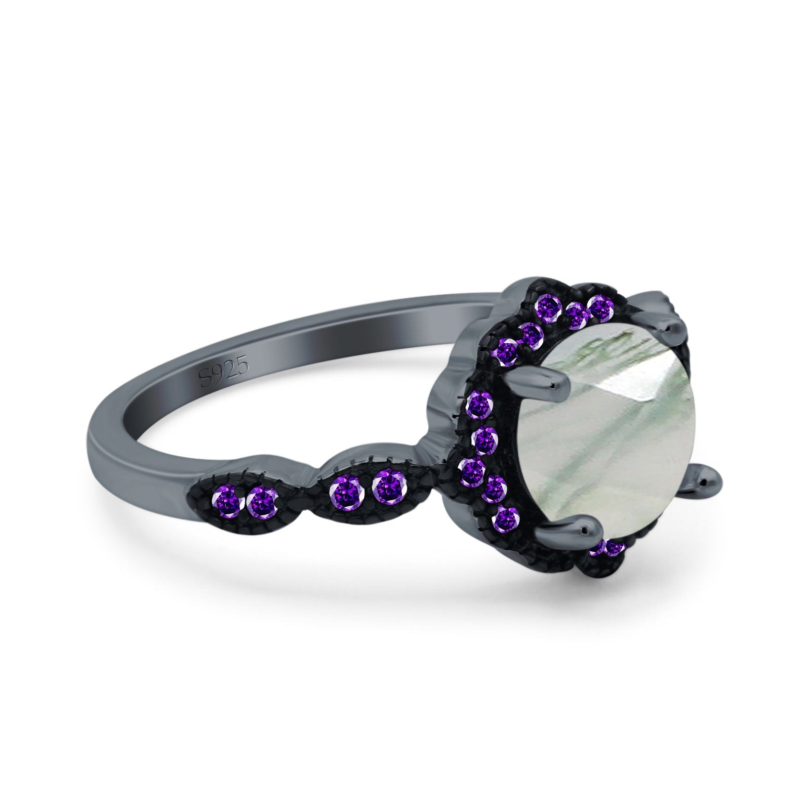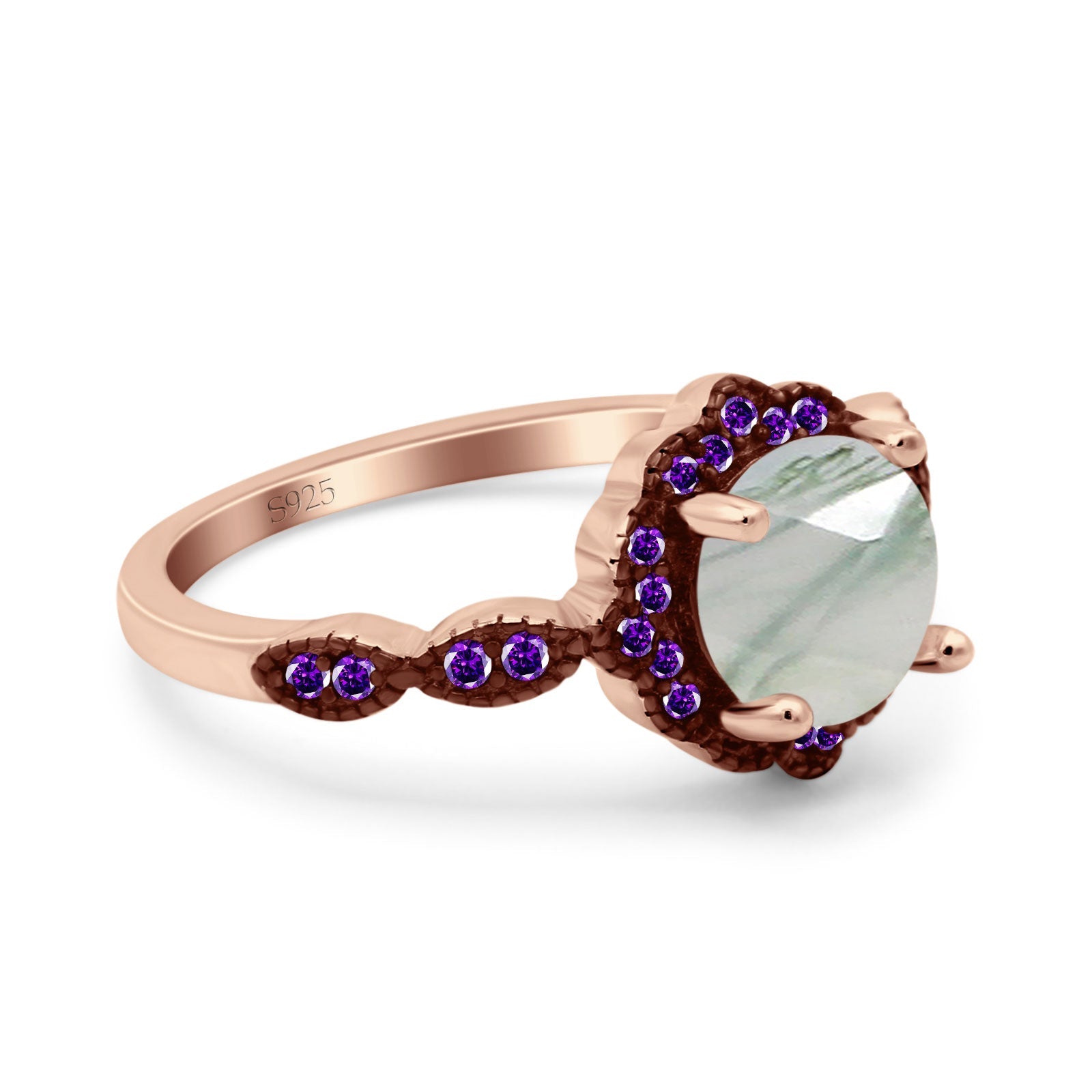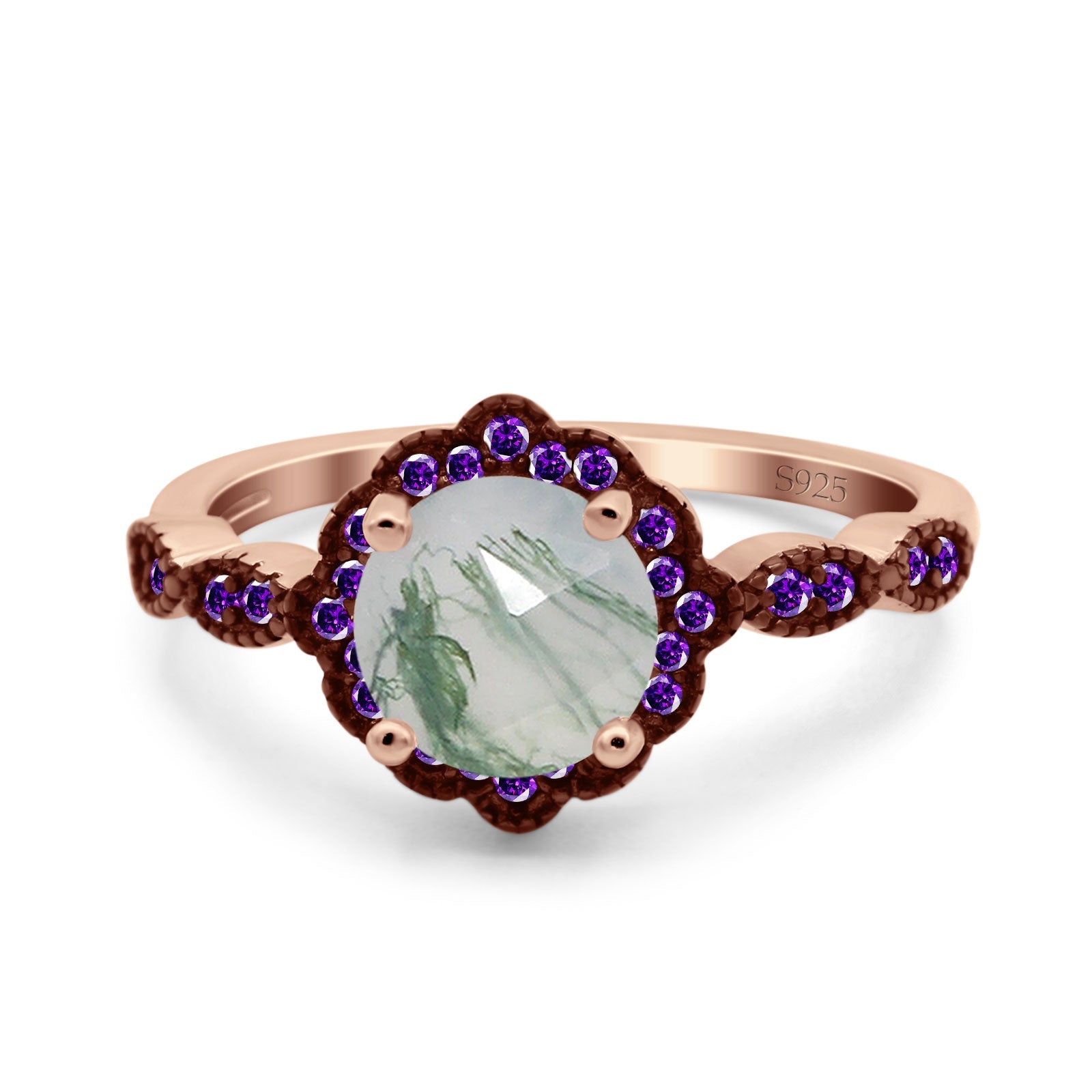 Art Deco Round Natural Green Moss Agate Flower Ring 925 Sterling Silver