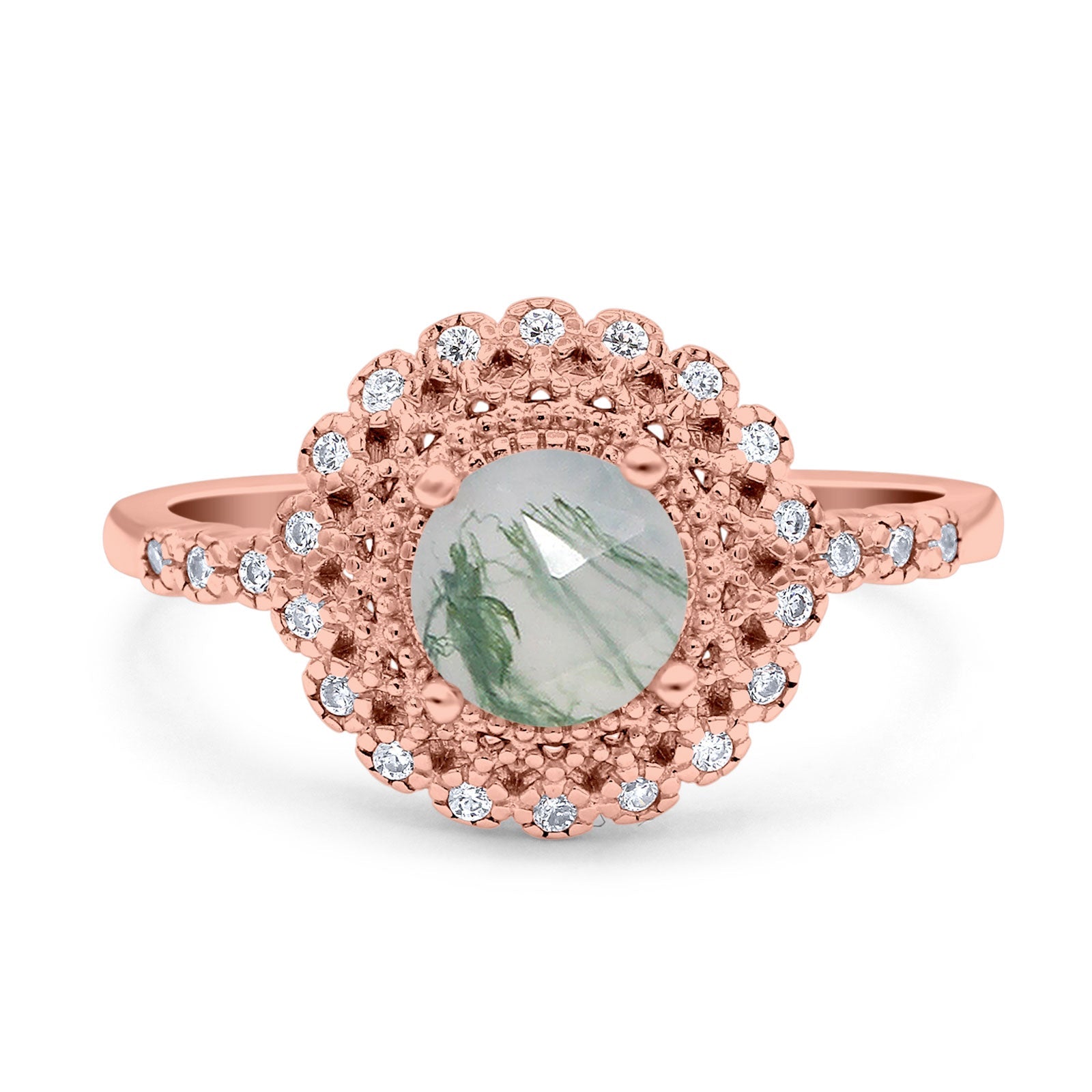 Natural Green Moss Agate Engagement Ring