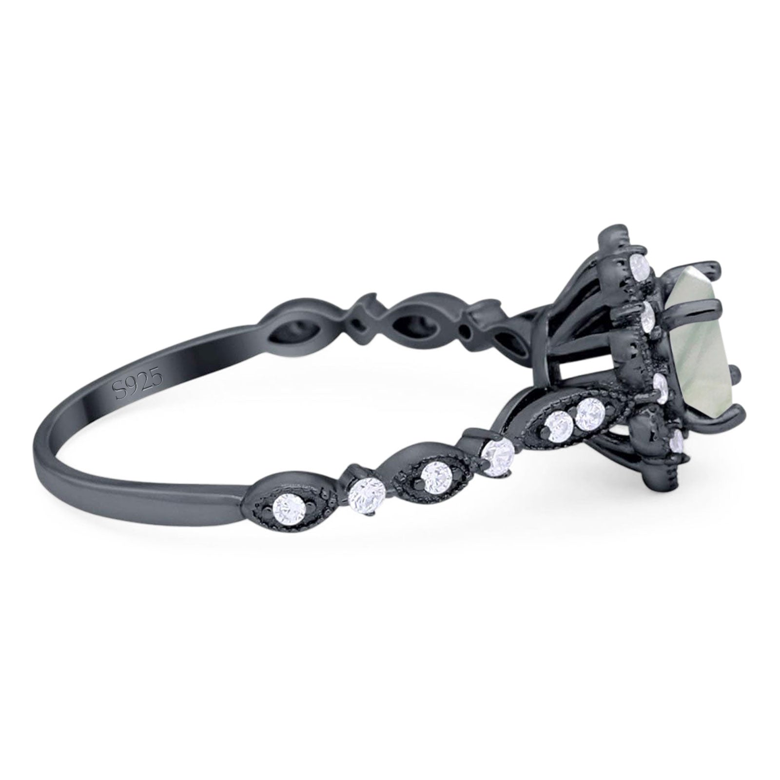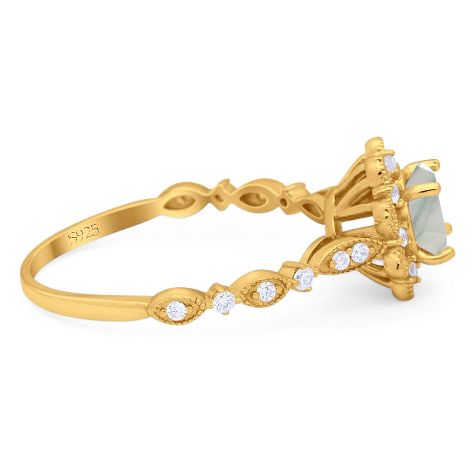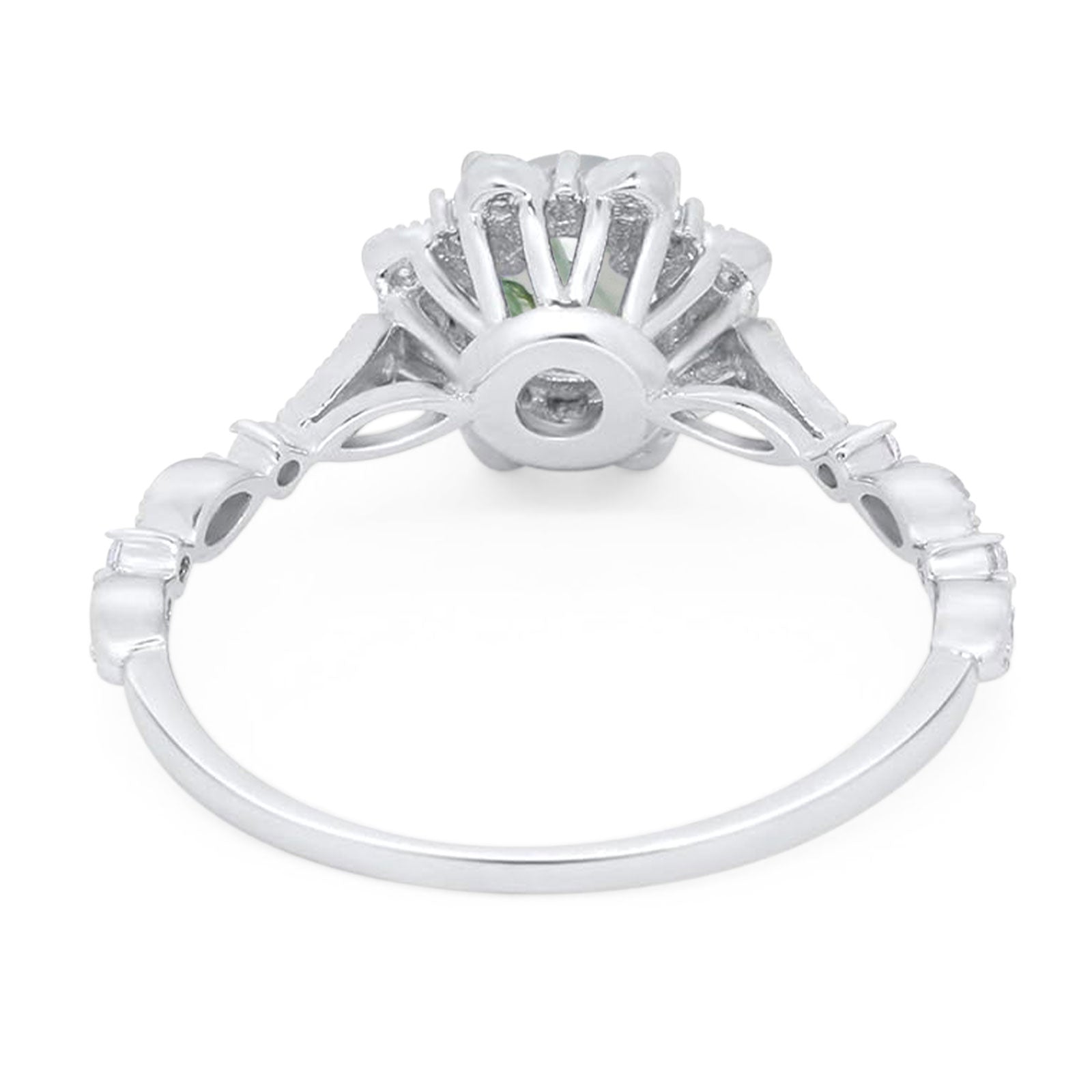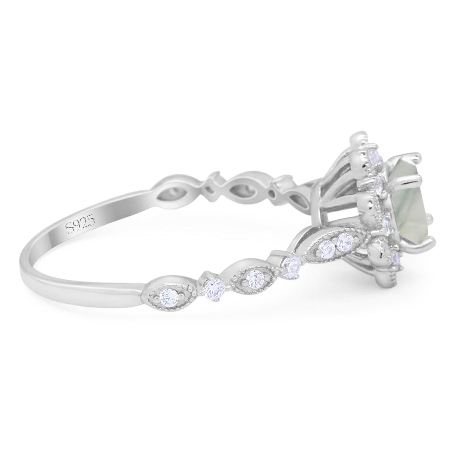 Art Deco Round Natural Green Moss Agate Flower Ring 925 Sterling Silver