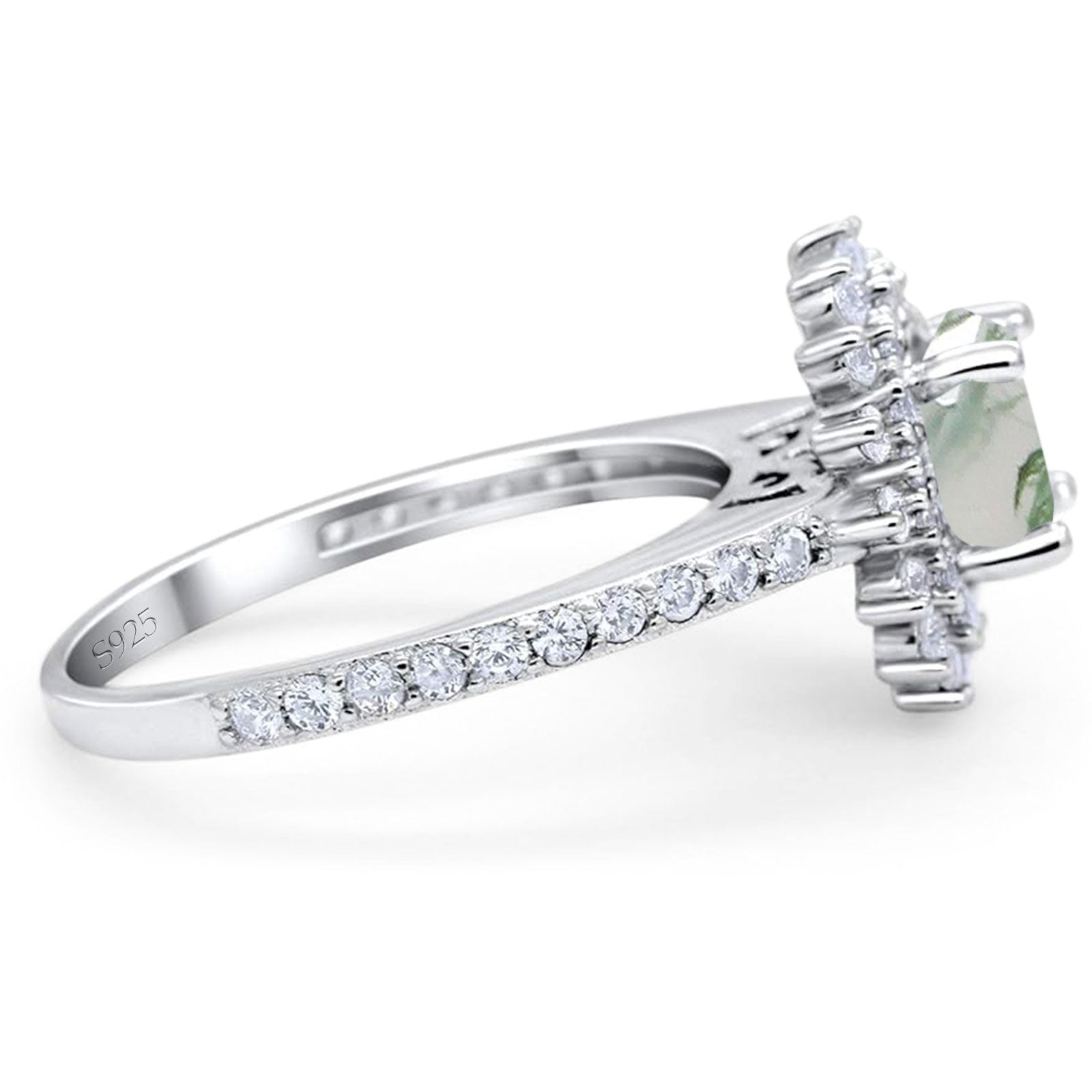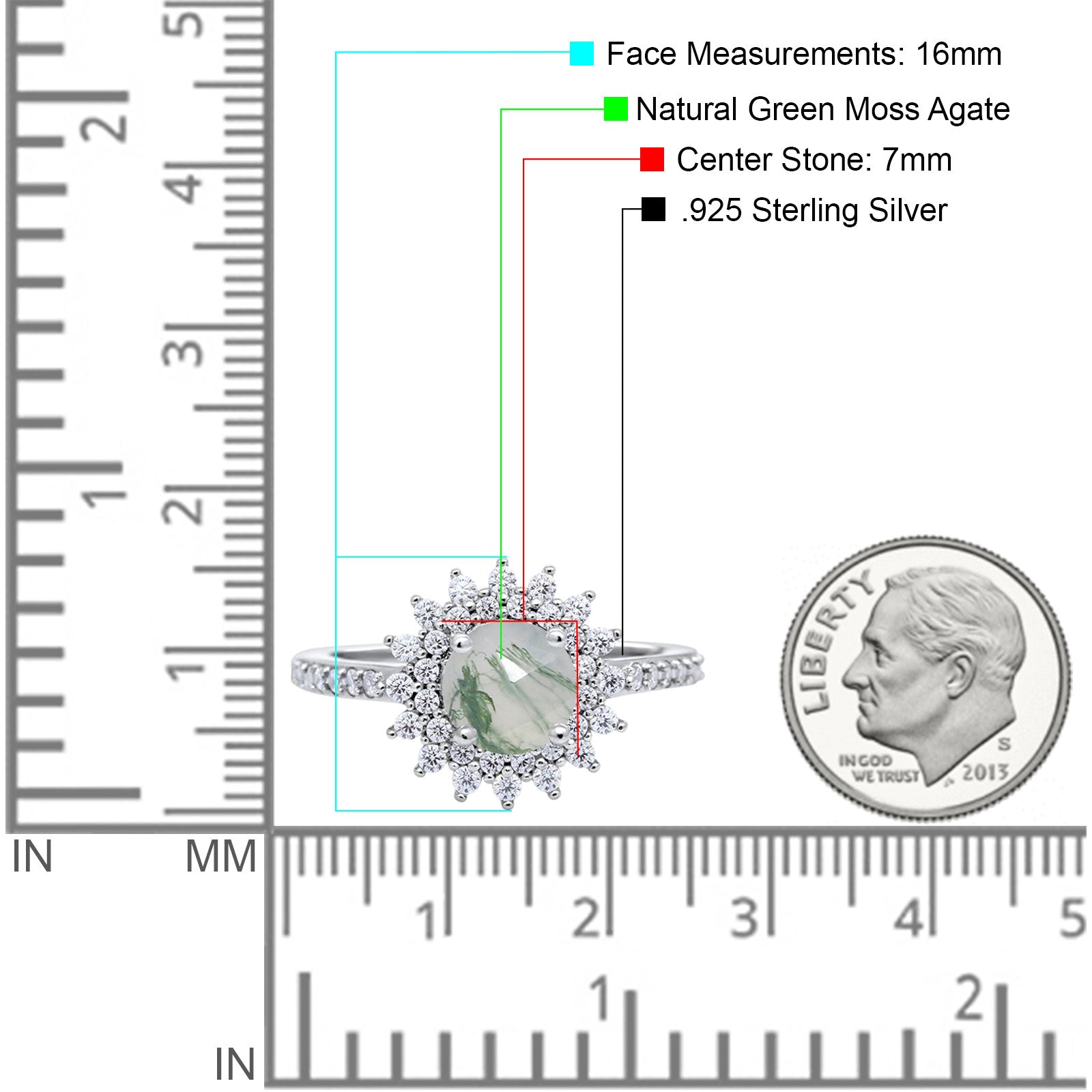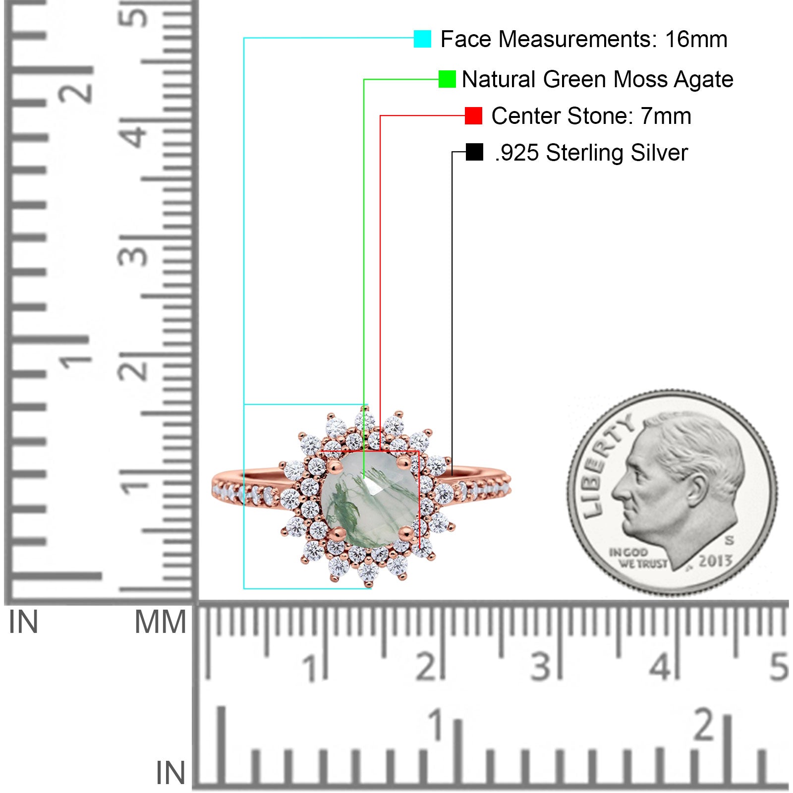 Art Deco Round Natural Green Moss Agate Halo Wedding Flower Ring 925 Sterling Silver