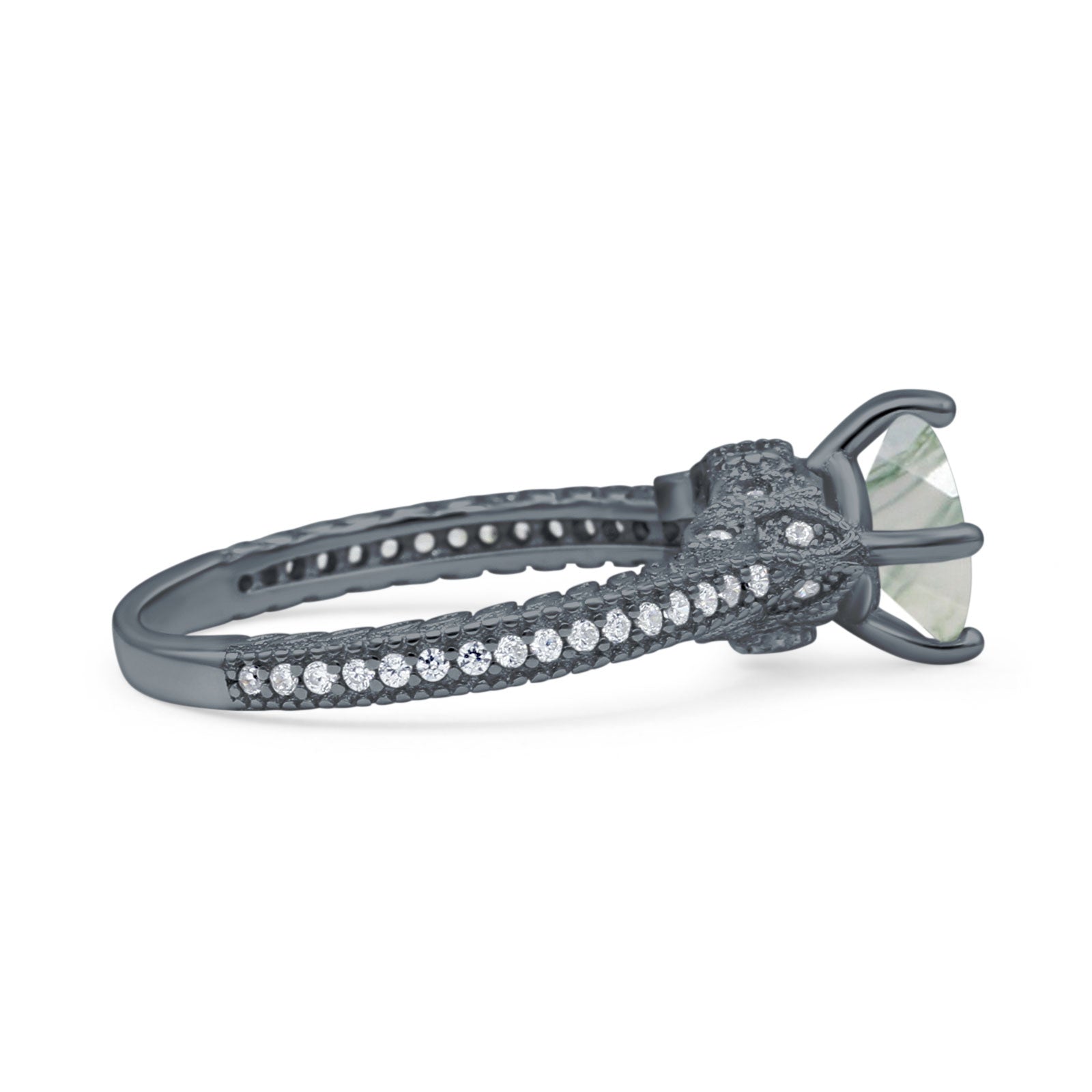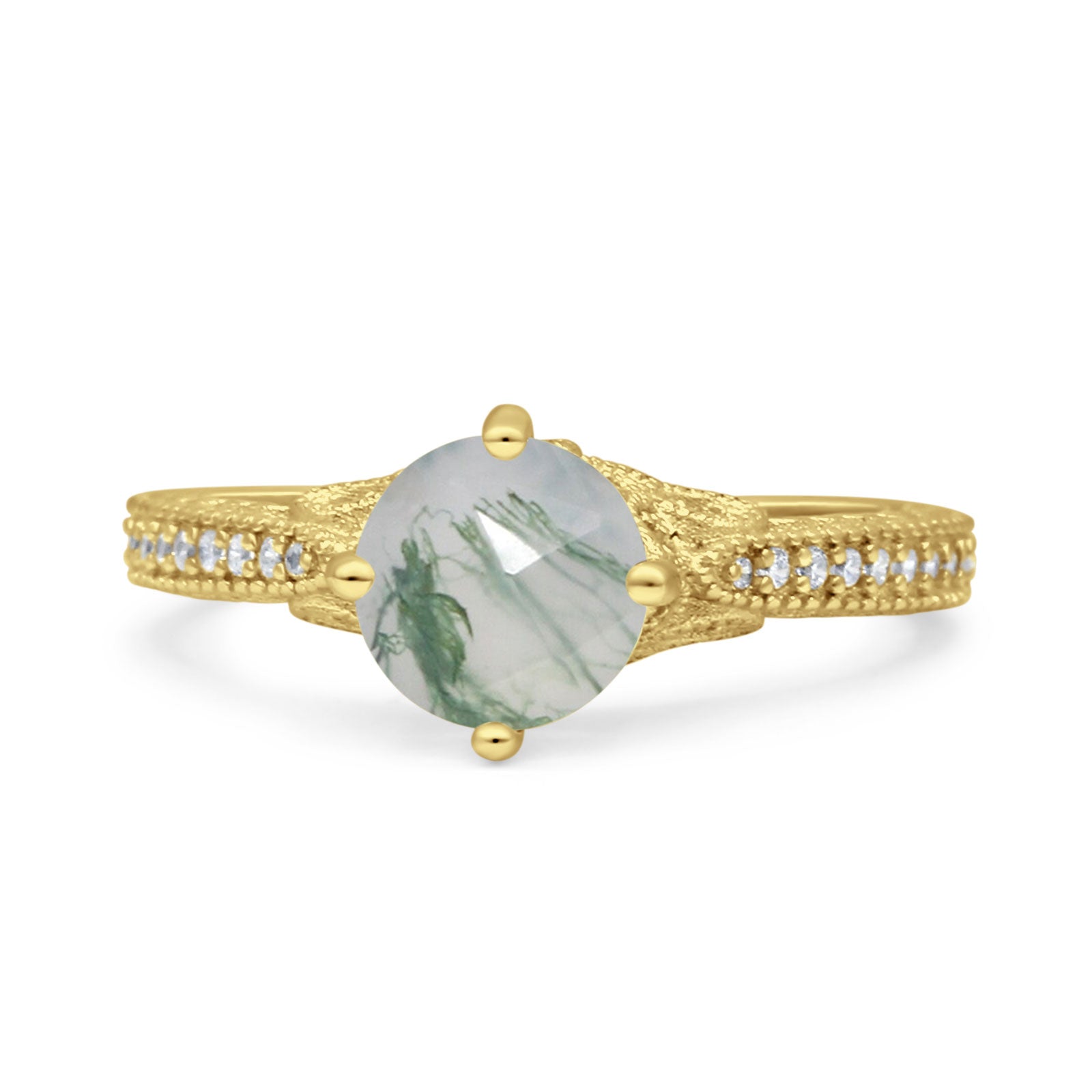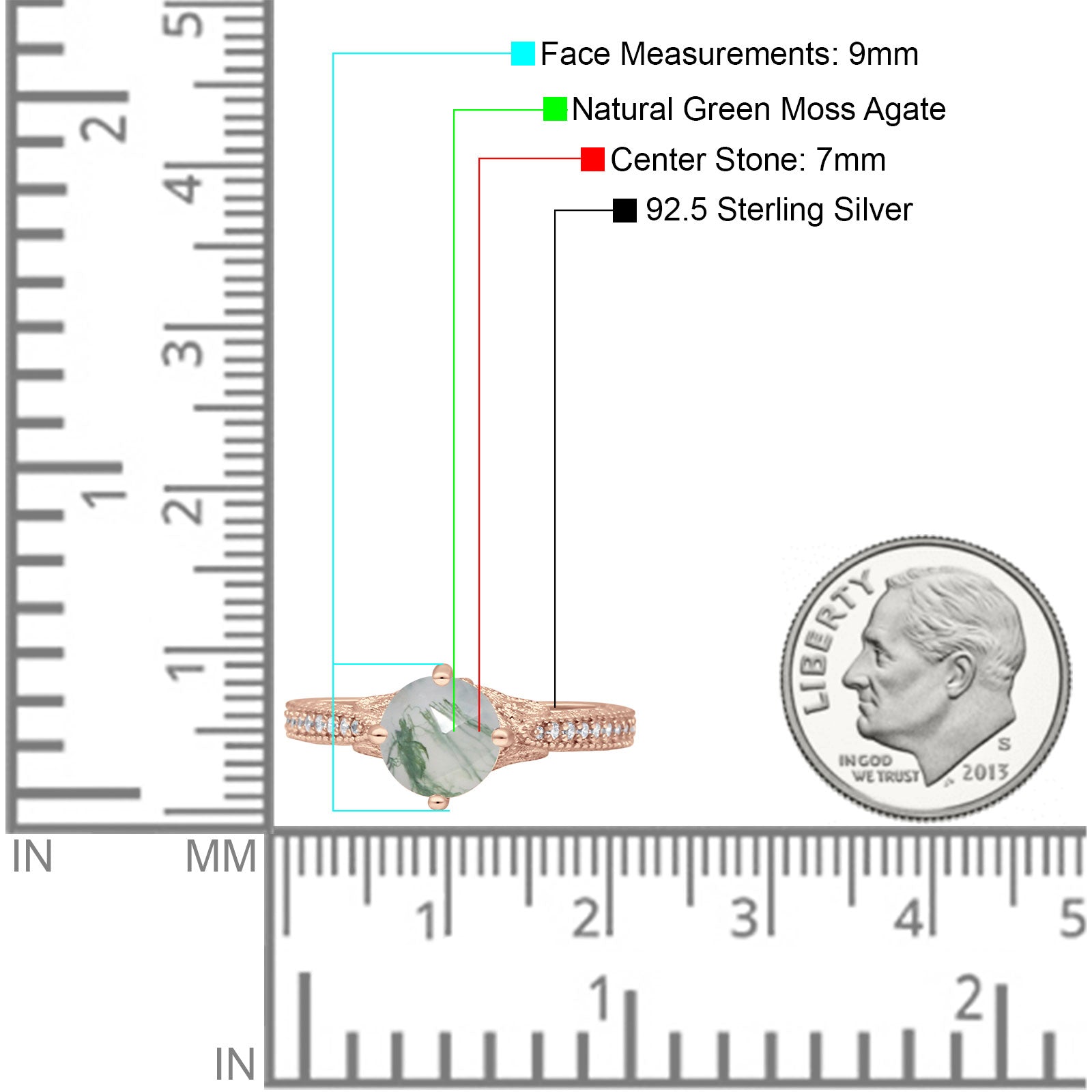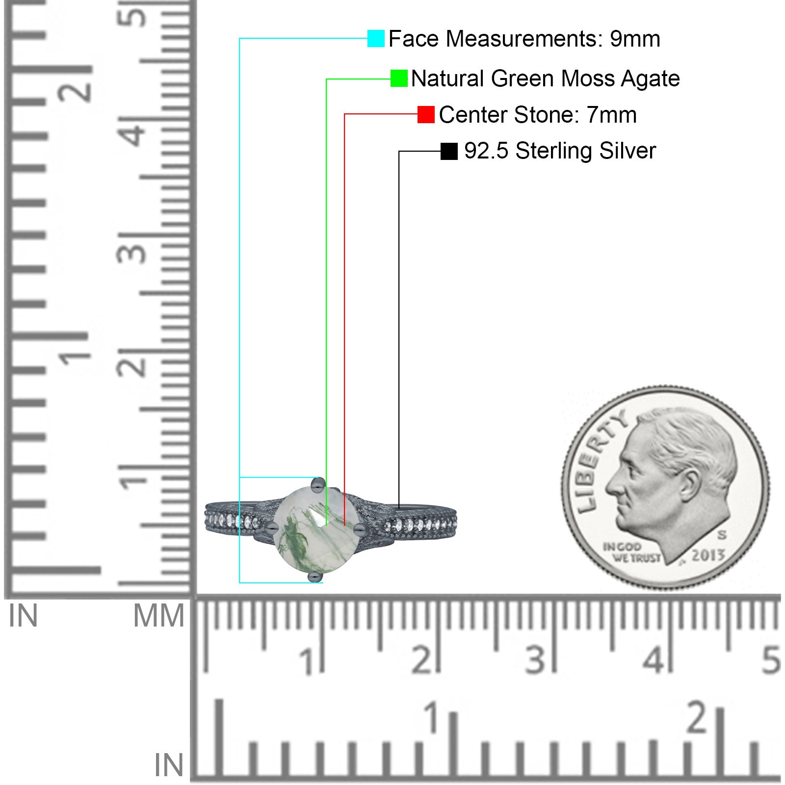 Art Deco Round Natural Green Moss Agate Vinatge Style Cluster Cubic Zirconia 925 Sterling Silver