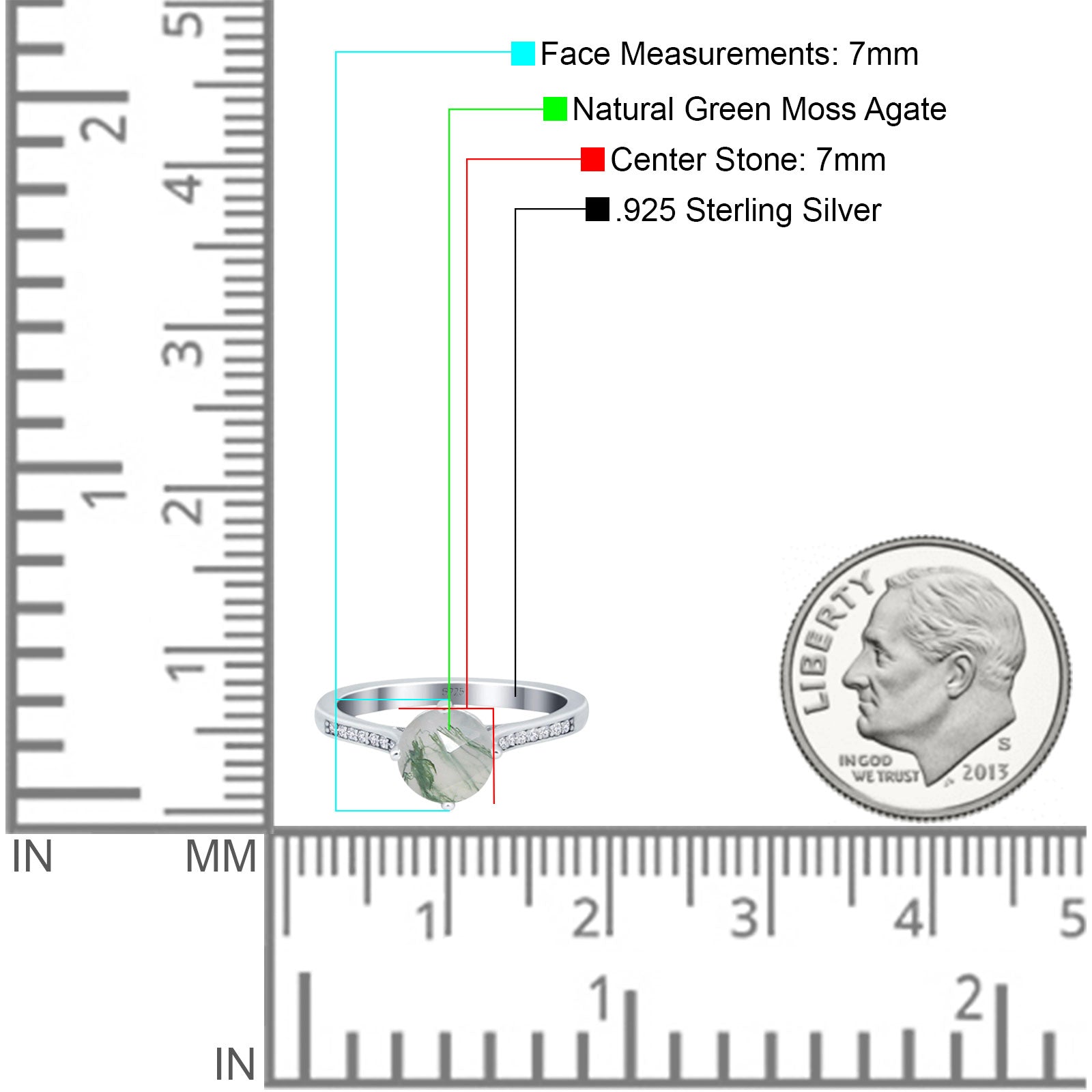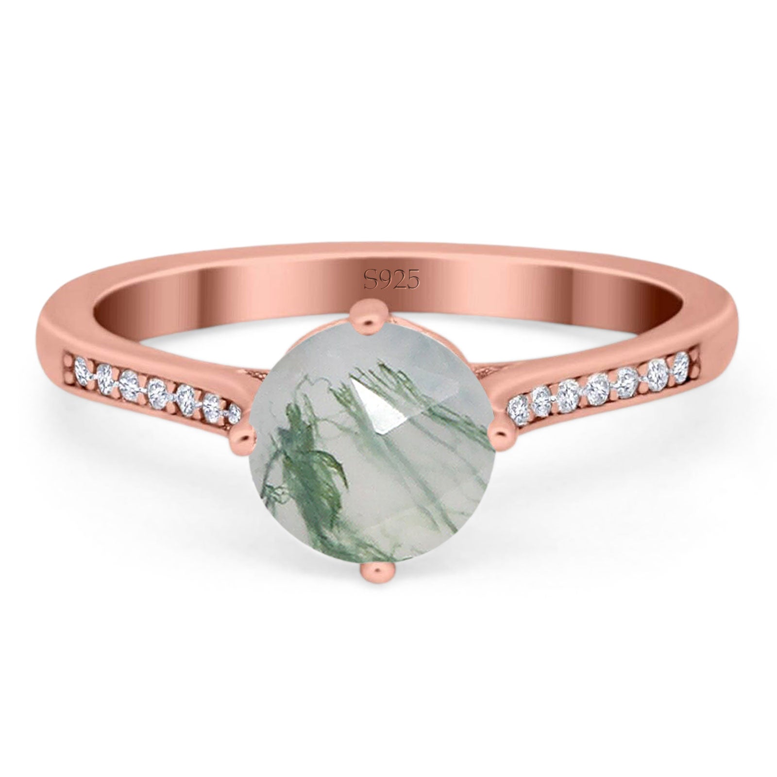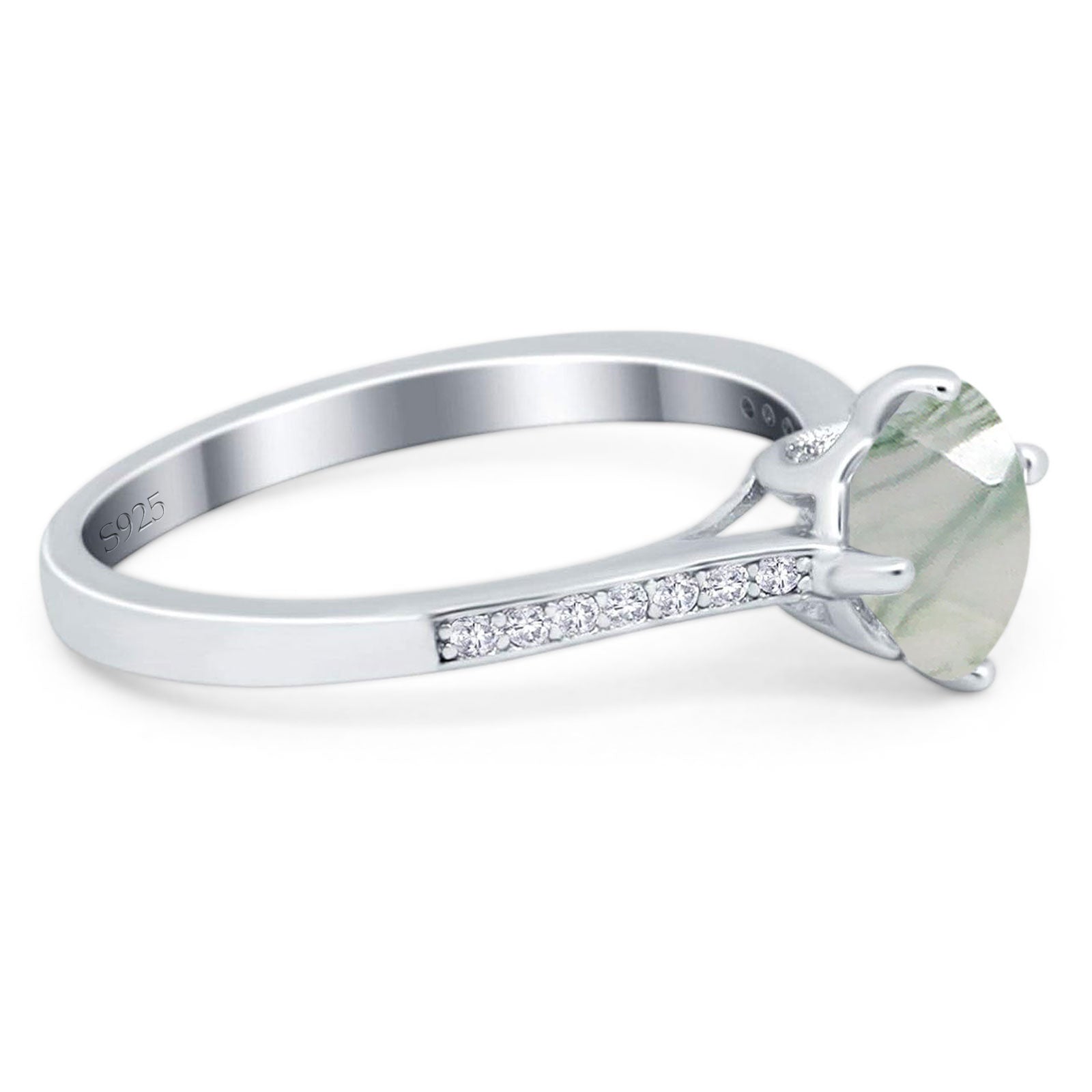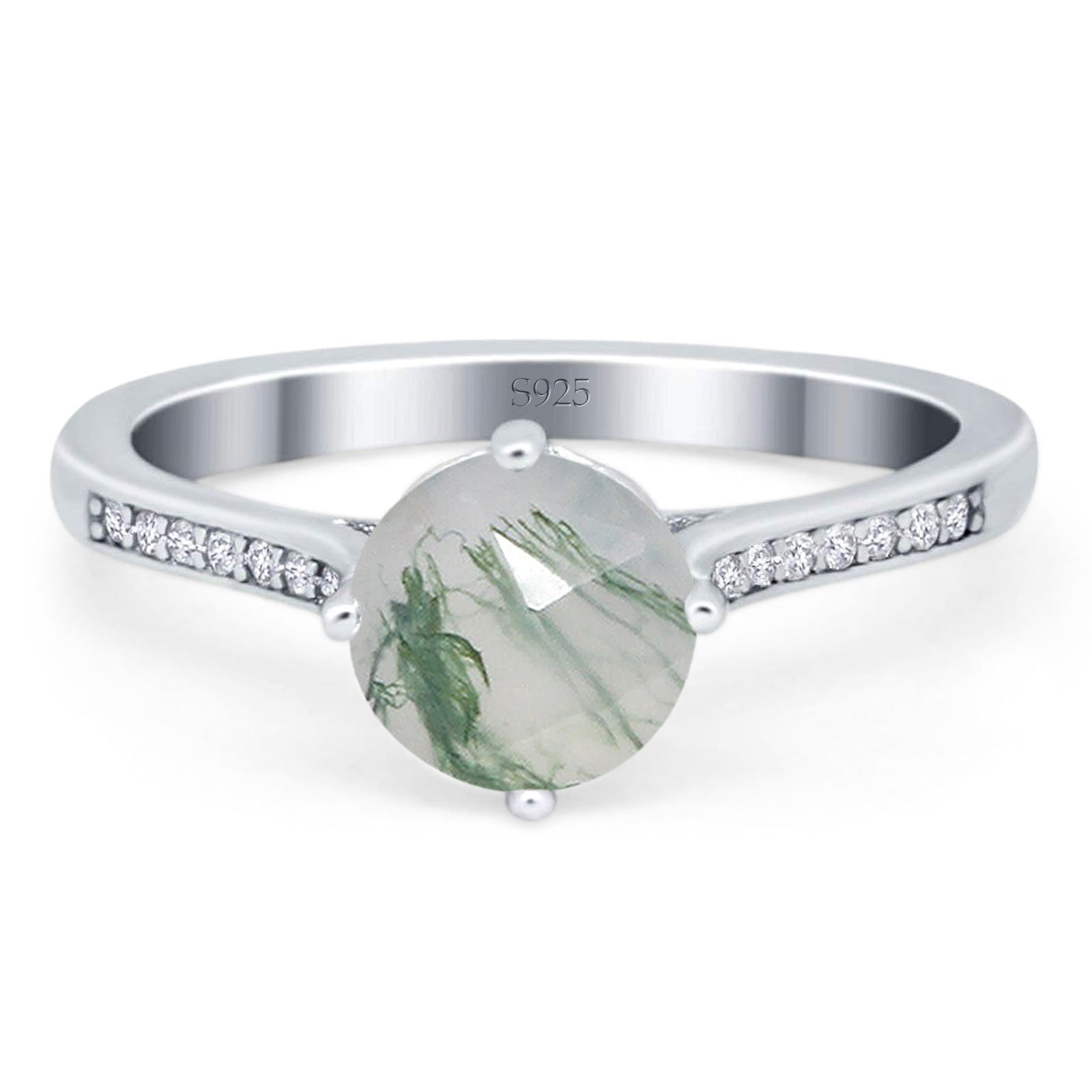 Art Deco Round Natural Green Moss Agate Wedding Engagement Ring 925 Sterling Silver