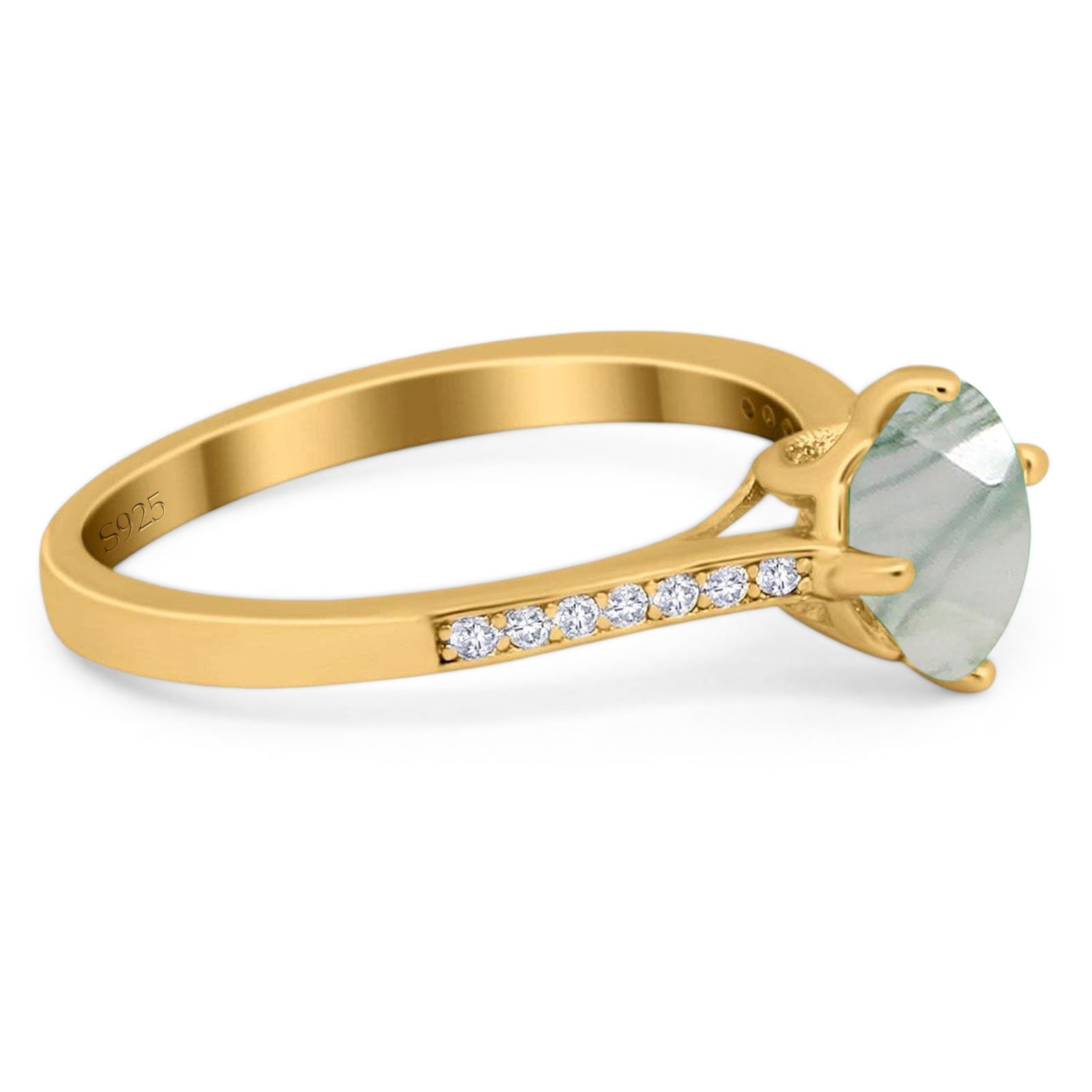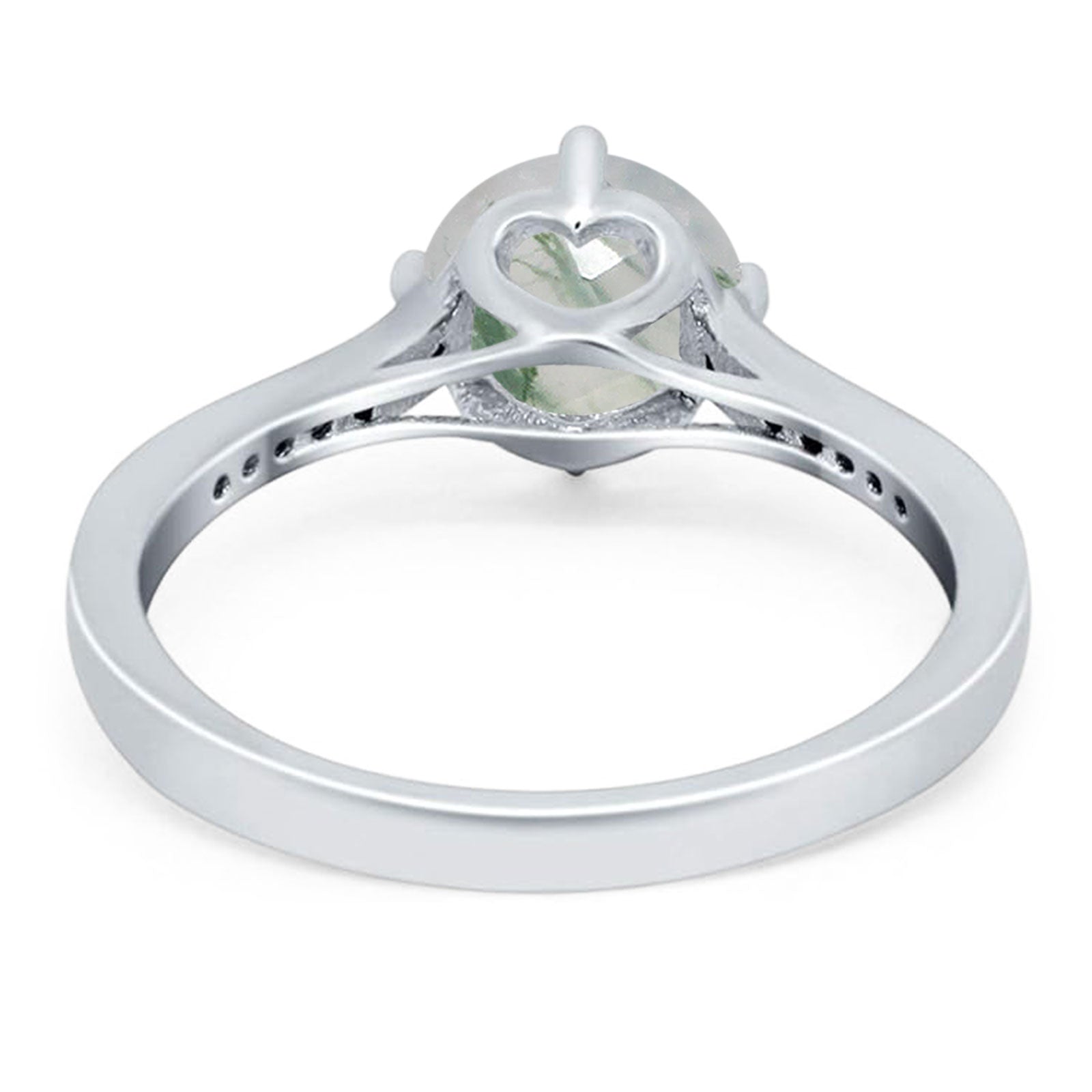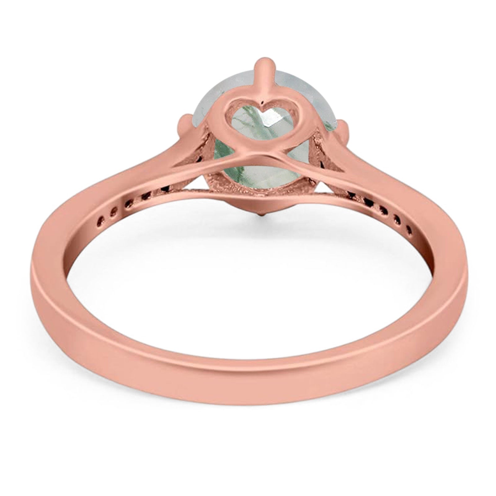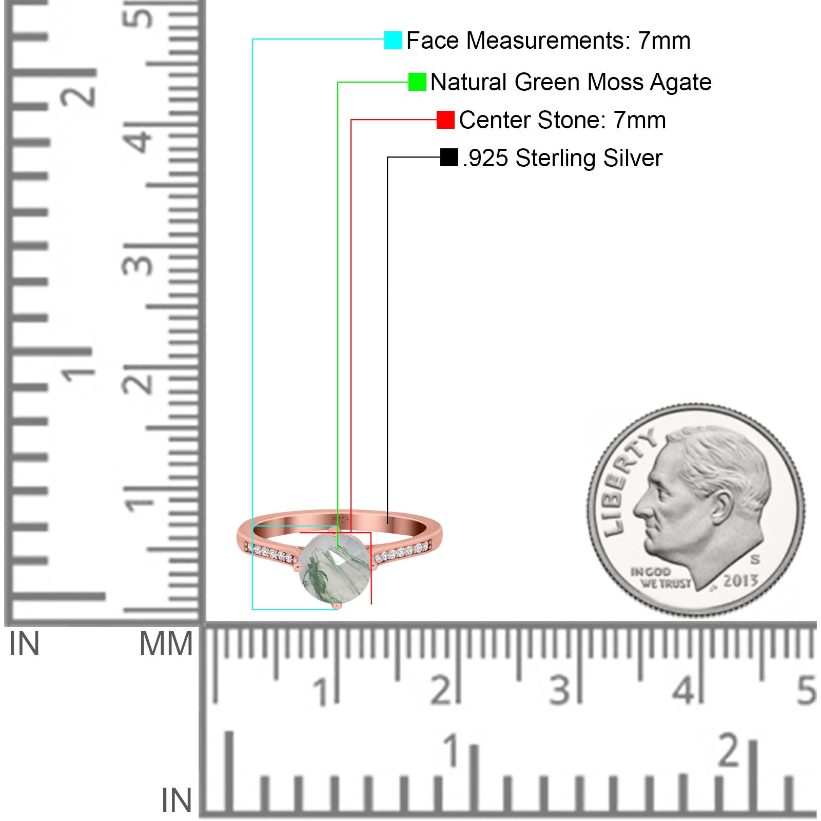 Art Deco Round Natural Green Moss Agate Wedding Engagement Ring 925 Sterling Silver