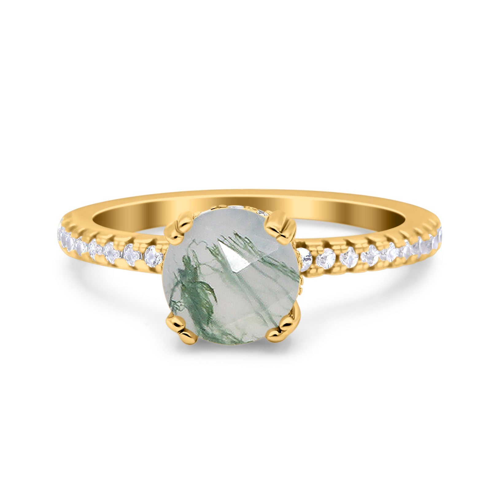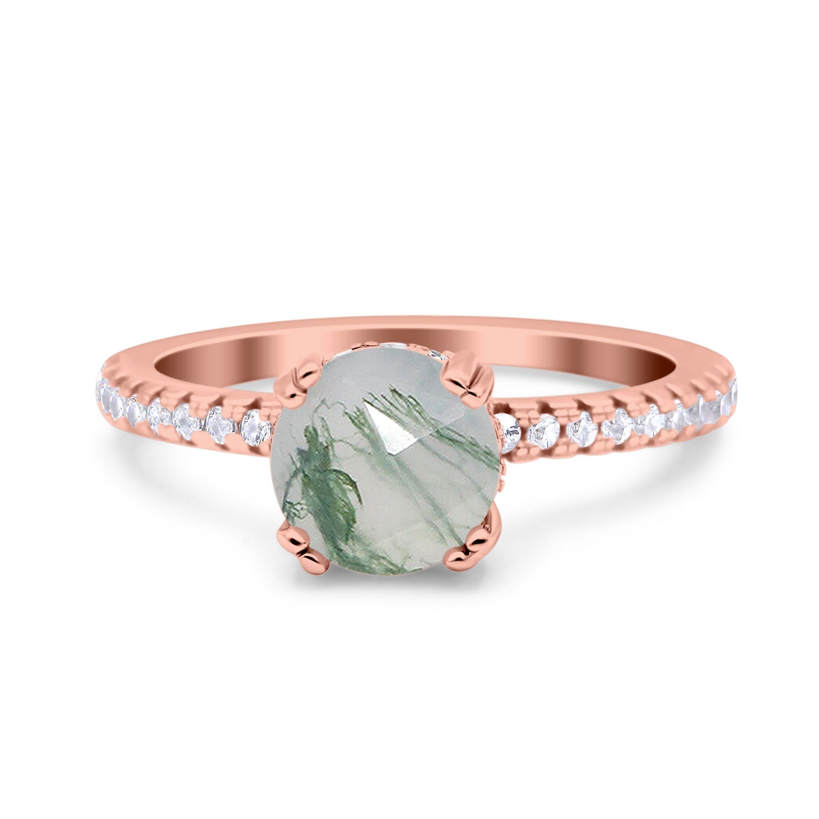 Natural Green Moss Agate Engagement Ring