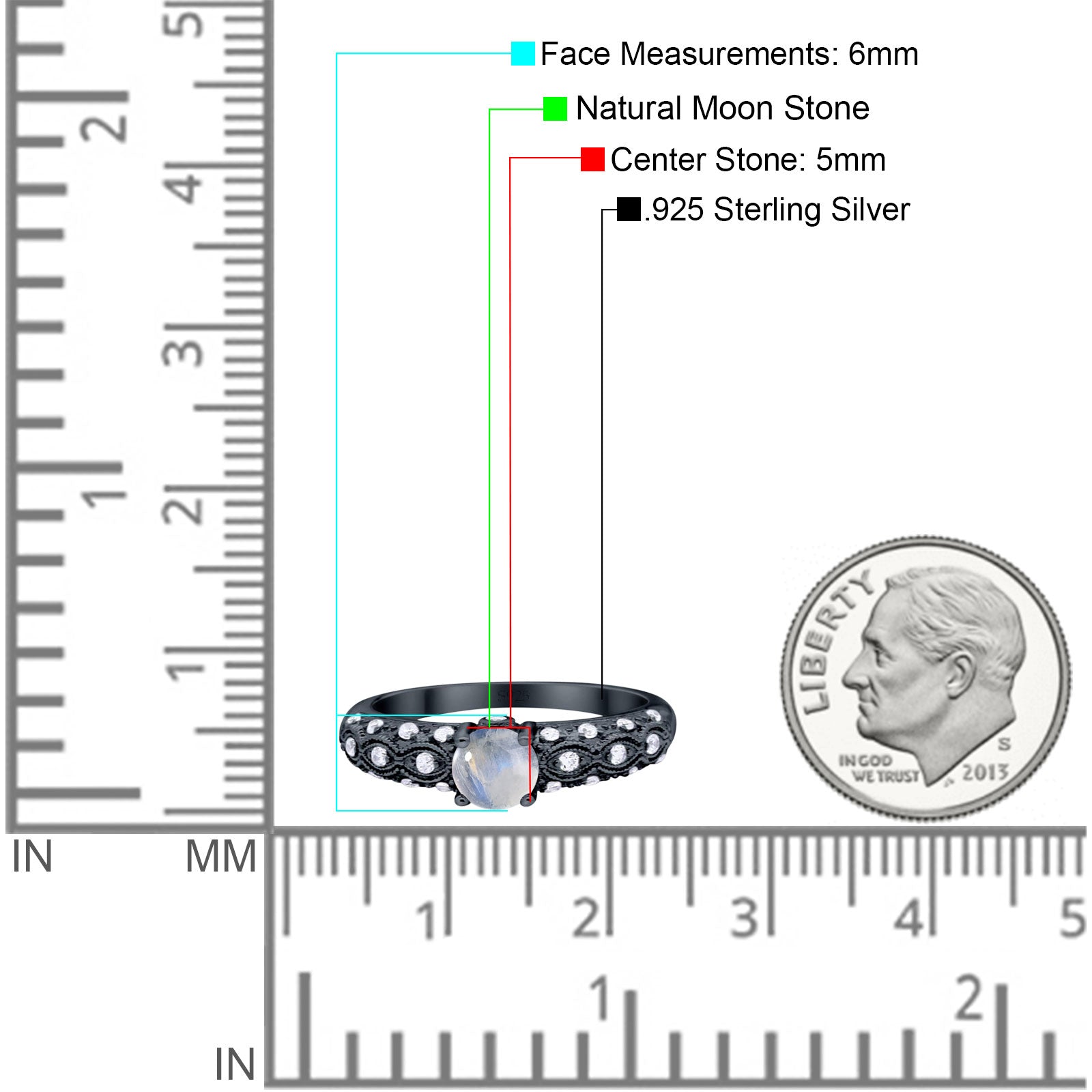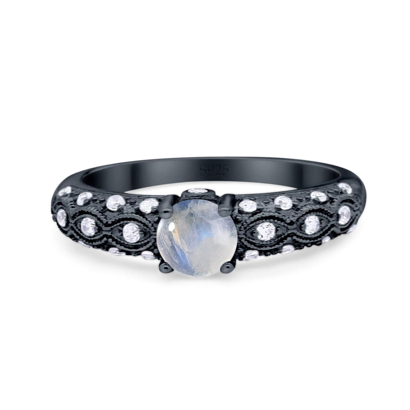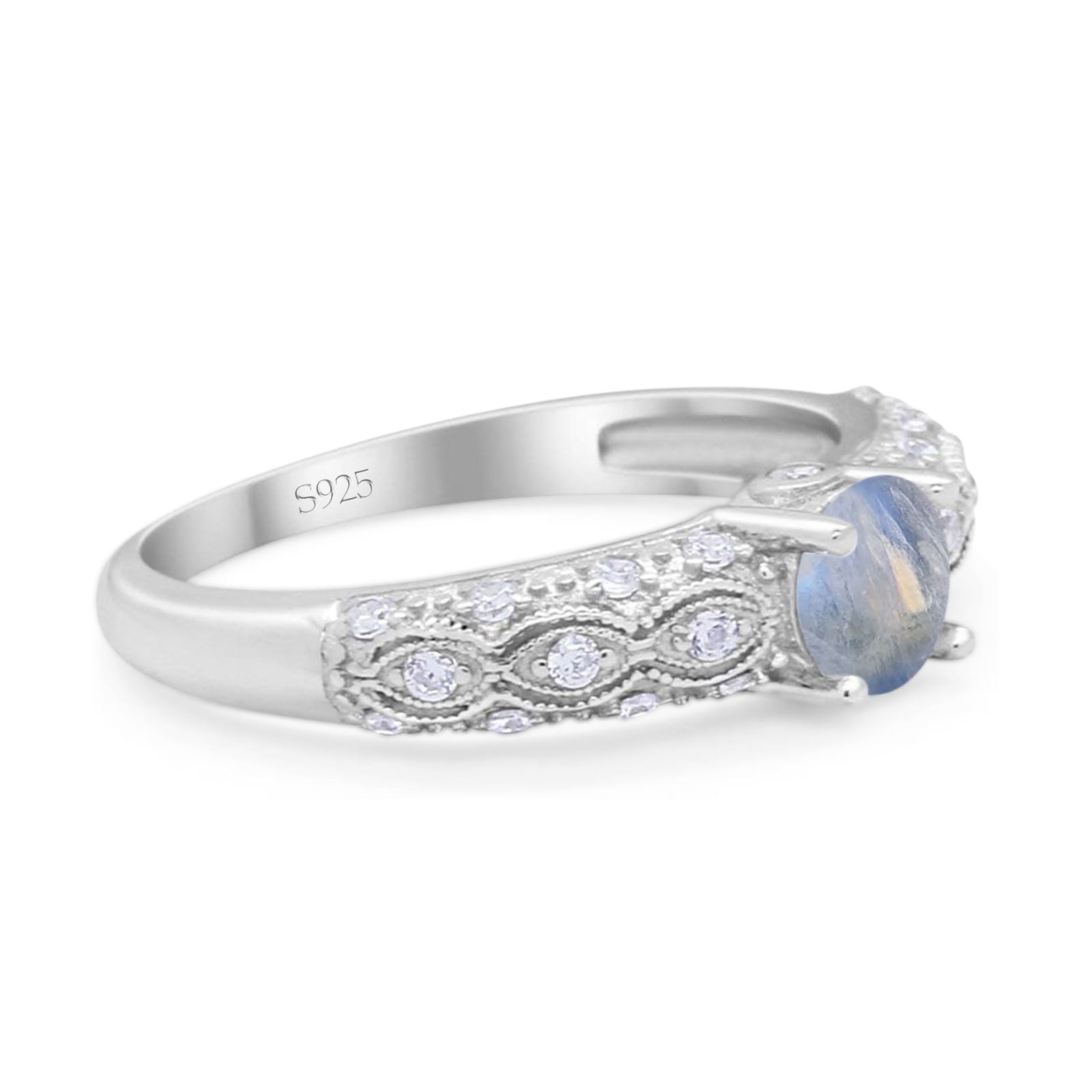 Art Deco Round Natural Moonstone Solitaire Ring 925 Sterling Silver