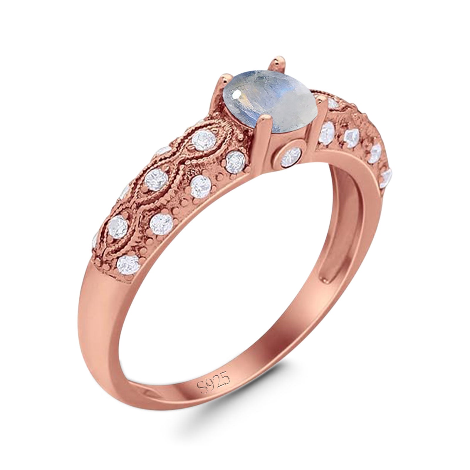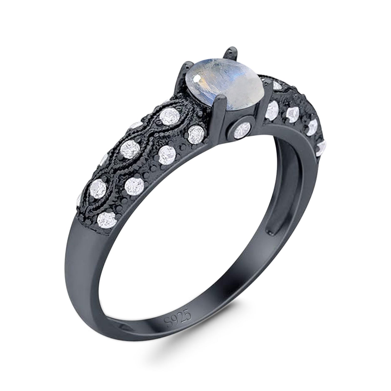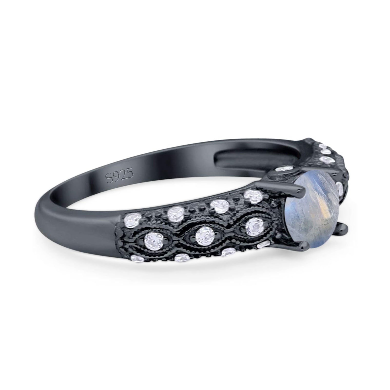 Art Deco Round Natural Moonstone Solitaire Ring 925 Sterling Silver