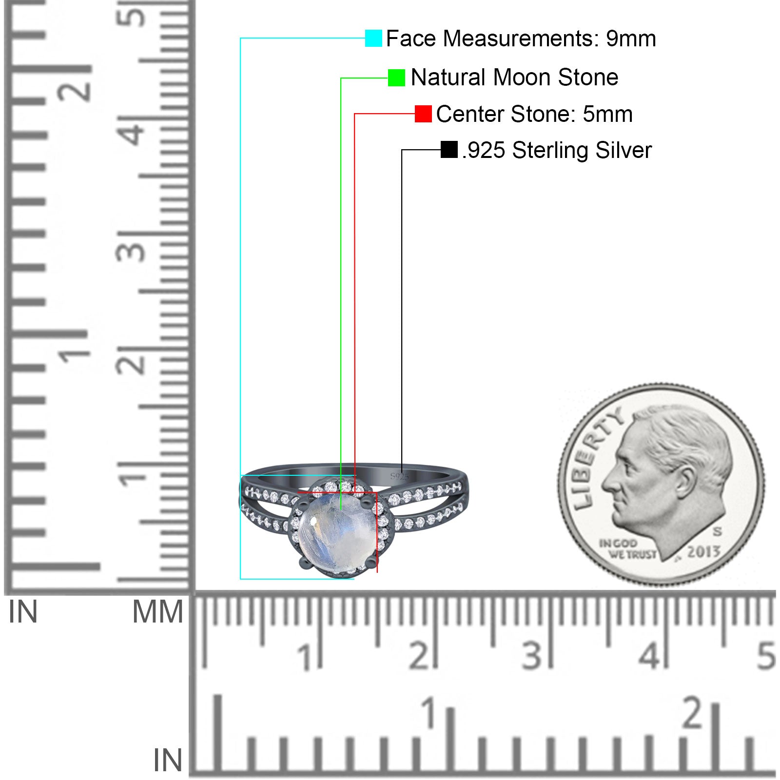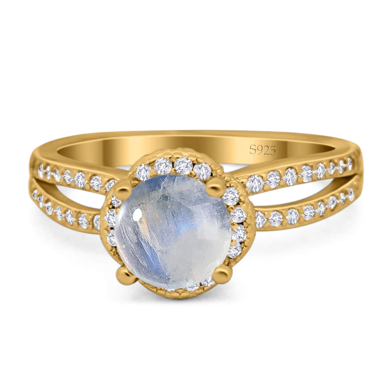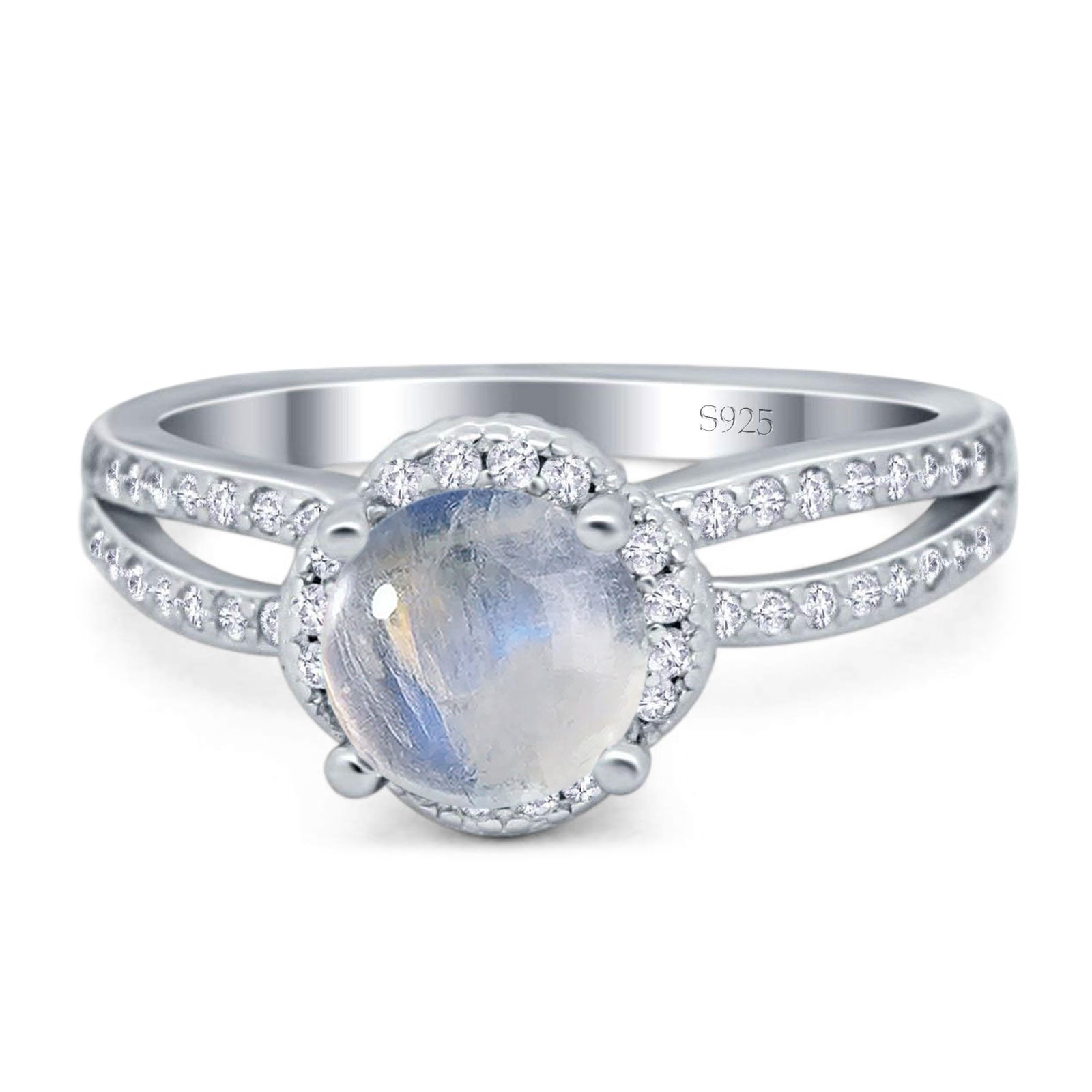 Art Deco Round Natural Moonstone Split Shank Ring 925 Sterling Silver